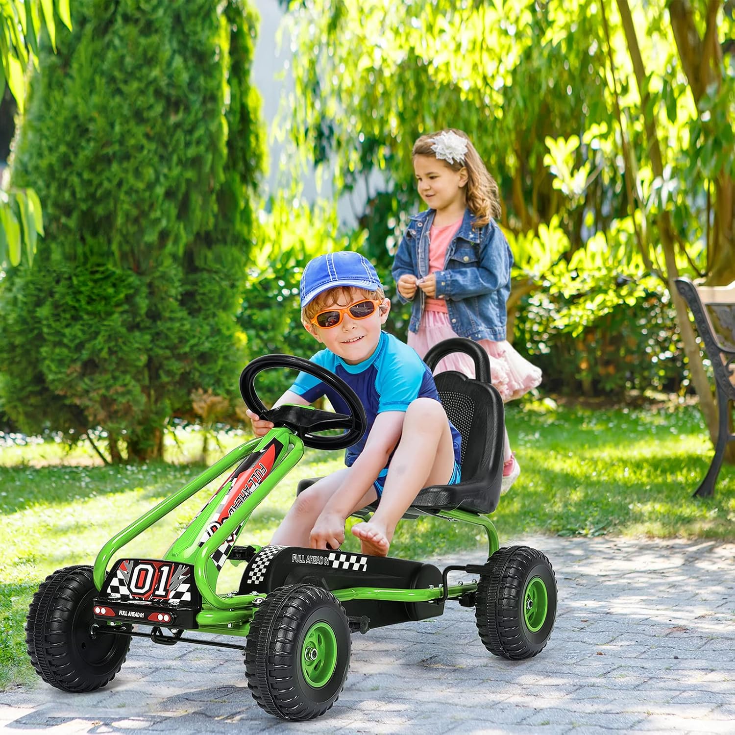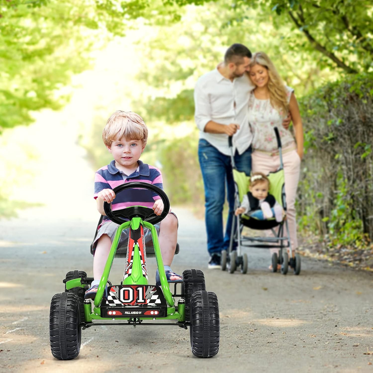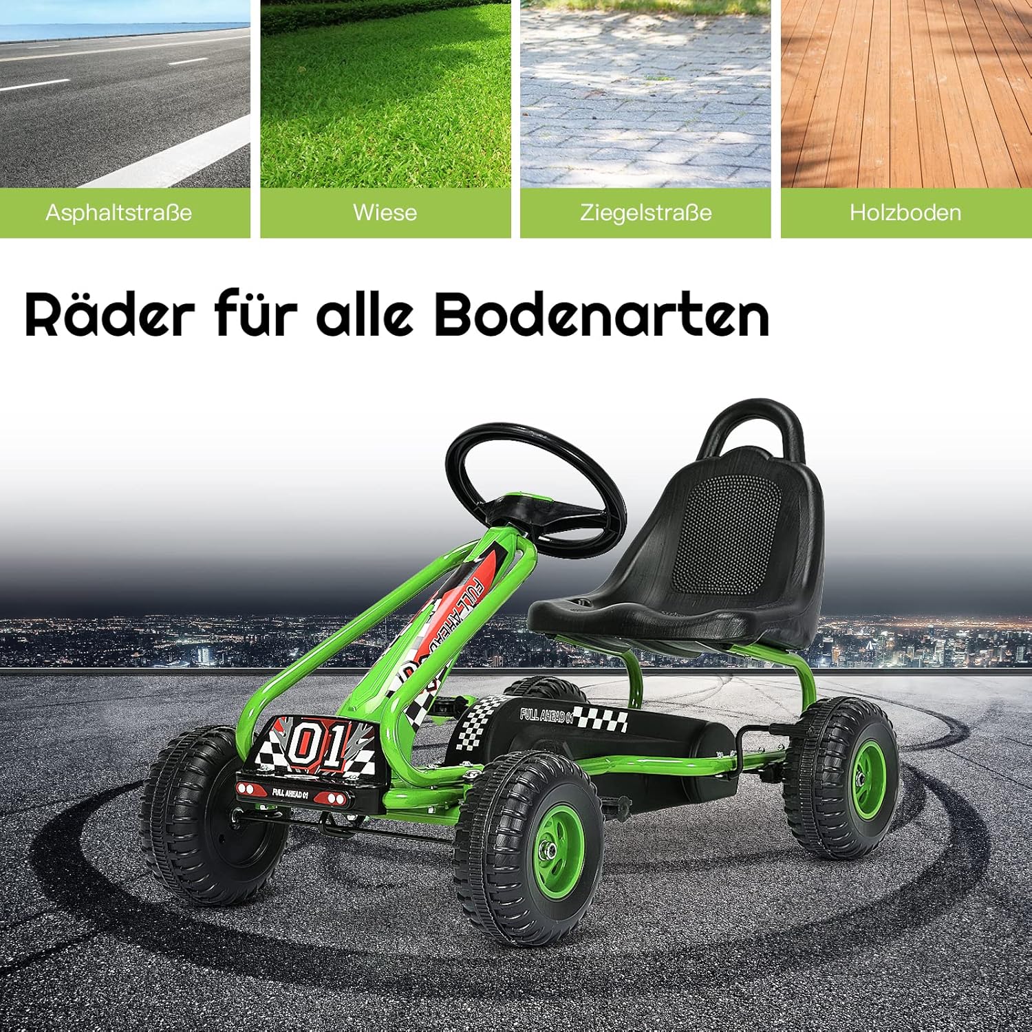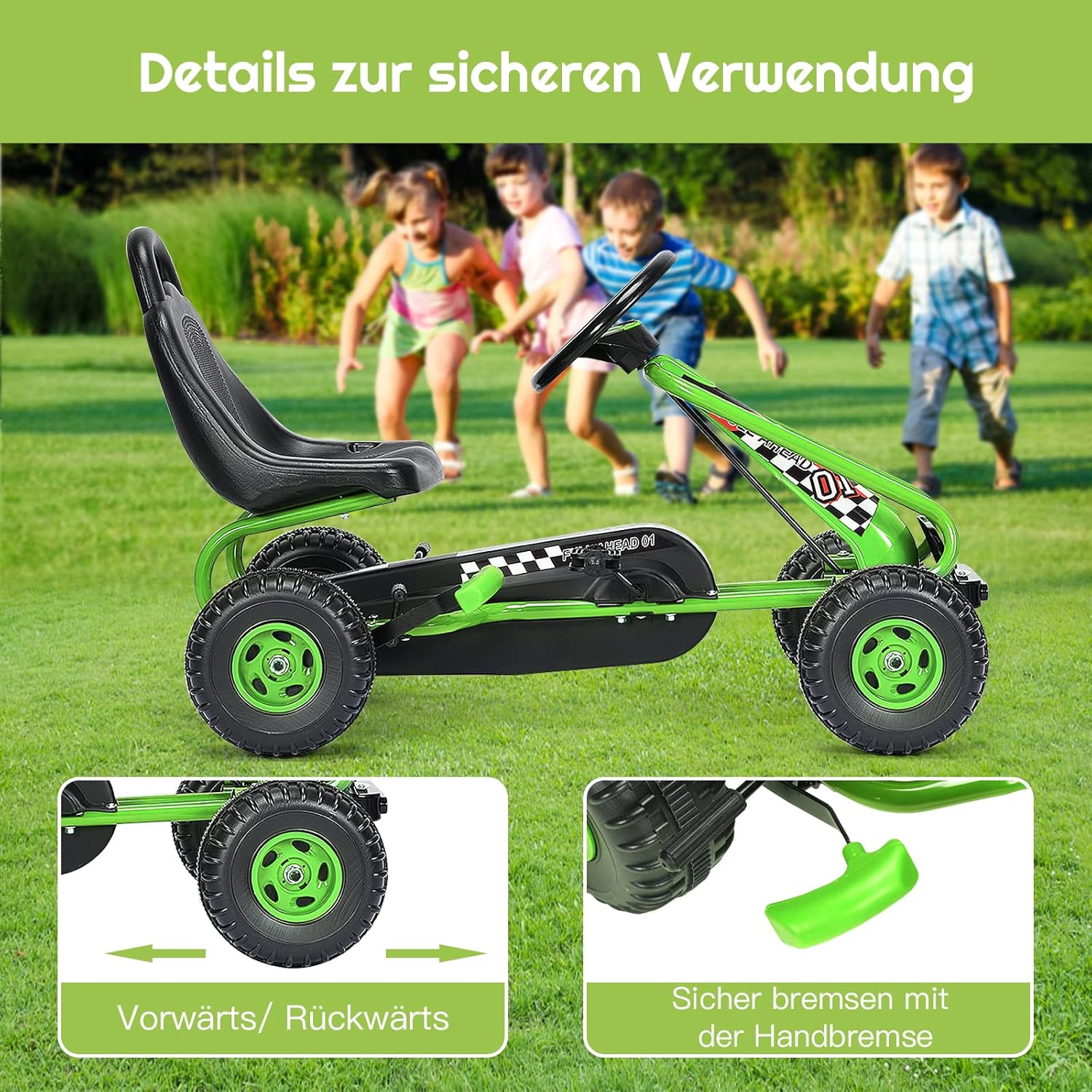 🏁 Divertimento di guida senza fine: basta pedalare e girare il volante per spostare il go-kart in avanti, indietro, a sinistra o a destra. Con il nostro go kart tuo figlio potrà divertirsi moltissimo e rimanere attivo allo stesso tempo. 🏁 Sedile regolabile - Il sedile del nostro go-kart può essere regolato in 2 posizioni per adattarsi a bambini di diverse dimensioni. Il go-kart è adatto a bambini dai 3 ai 6 anni. 【Adatto a bambini di altezza 85-110 cm】 🏁 Gioca in sicurezza - Le ruote della macchina a pedali hanno un profilo antiscivolo per una resistenza allo scivolamento ottimale. L'auto a pedali è inoltre dotata di freno a mano che agisce su entrambe le ruote posteriori e di carter catena chiuso. 🏁 Stabile e durevole - Realizzato in ferro robusto e materiale PP di alta qualità, il nostro go-kart è molto stabile e ha una lunga durata. Grazie al robusto telaio in metallo, il nostro go-kart a pedali può sostenere fino a 30 kg. 🏁 Ottimo regalo: con l'aspetto accattivante, il veicolo a pedali può attirare immediatamente l'attenzione dei bambini. È un regalo ideale per tuo figlio in occasione del suo compleanno o di altre festività per regalargli un'infanzia ancora più meravigliosa.
