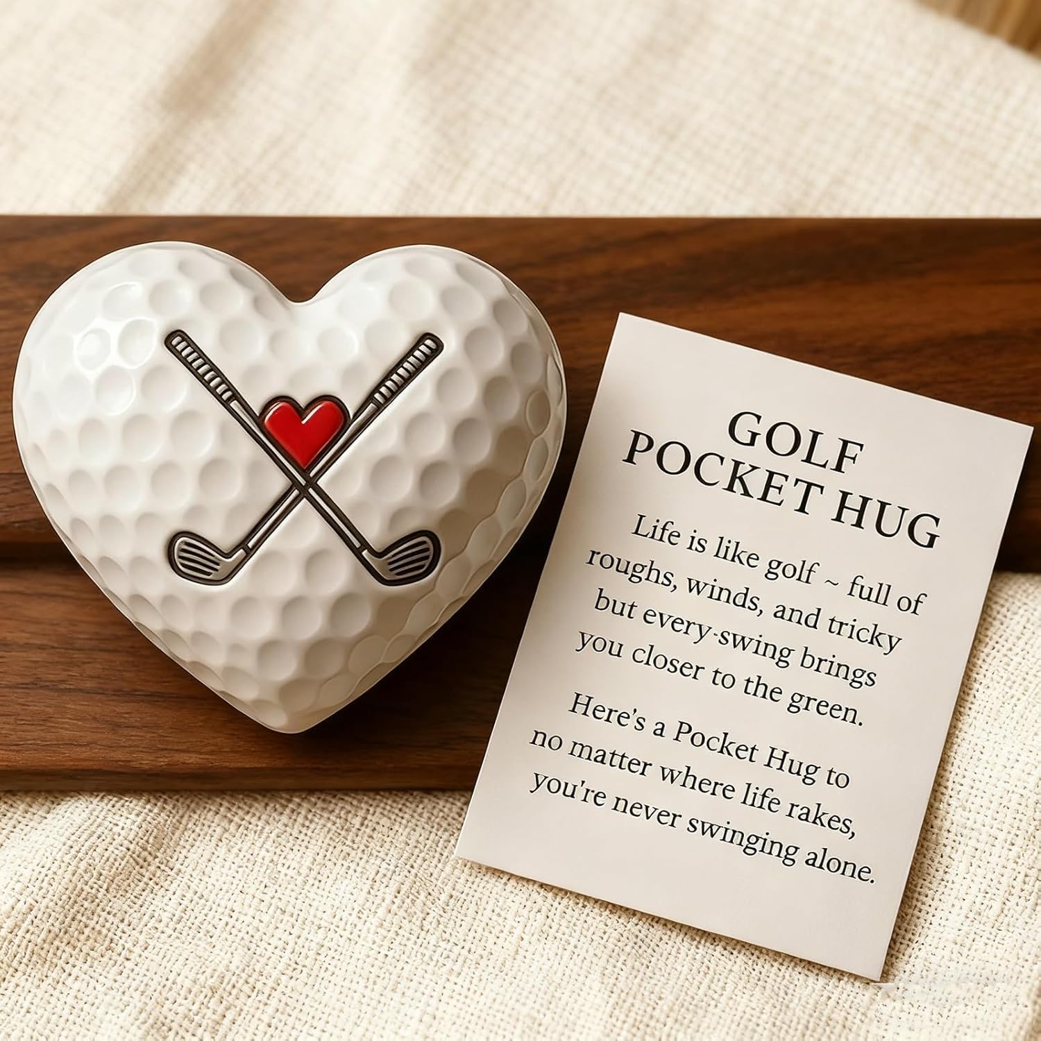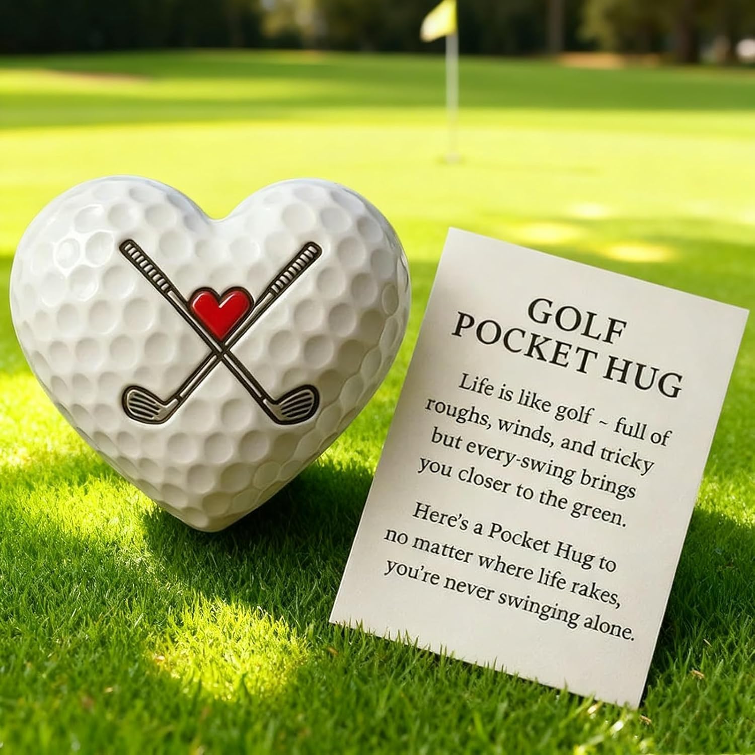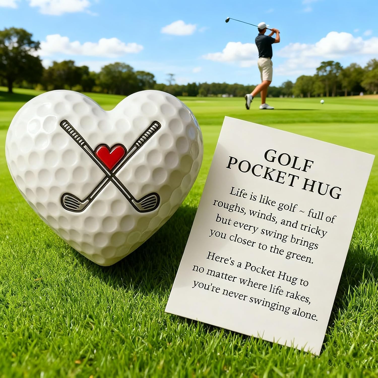 Regalo ricordo Golf Pocket Hug: un regalo ideale per i golfisti di tutti i livelli, perfetto per compleanni, tornei o vacanze. Aggiunge un tocco personale che manca agli accessori da golf standard e dimostra che ci tieni profondamente. Design durevole e compatto: realizzato con materiali di alta qualità per l'uso quotidiano. Dimensioni compatte, si adatta alle tasche, alle sacche da golf o funge da segnapalla: rimane un ricordo prezioso che fornisce un incoraggiamento costante. Versatile dentro e fuori dal campo: può essere utilizzato anche come segnapalla o segnatasche. Ricorda ai golfisti di rimanere positivi nonostante le sfide e le vittorie, sia sul green che nella vita di tutti i giorni. Sincera ispirazione per il golf: viene fornito con una nota ispiratrice: "La vita è come il golf: piena di dossi, vento e momenti difficili... Non si oscilla mai da soli." Serve come fonte tangibile di sostegno e resilienza. Simbolo motivazionale significativo: più che un accessorio: è un booster di fiducia indossabile. Ideale per i golfisti che apprezzano la concentrazione e la positività, rendendolo un regalo premuroso che va oltre la normale attrezzatura da golf