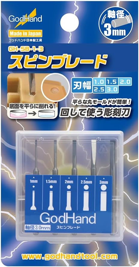 Lama intagliata di precisione che può essere ruotata per la modellazione Materiale: acciaio speciale lama Paese di produzione: Giappone Diametro albero: 3 mm Set da 5 pezzi Larghezza lama: 0,04, 0,06, 0,10, 0,1 pollici (1,0, 1,5, 2,0, 2,5, 3,0 mm)