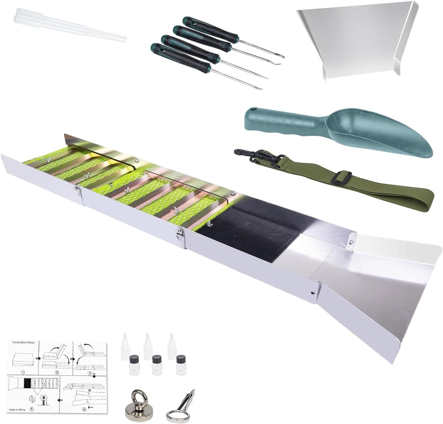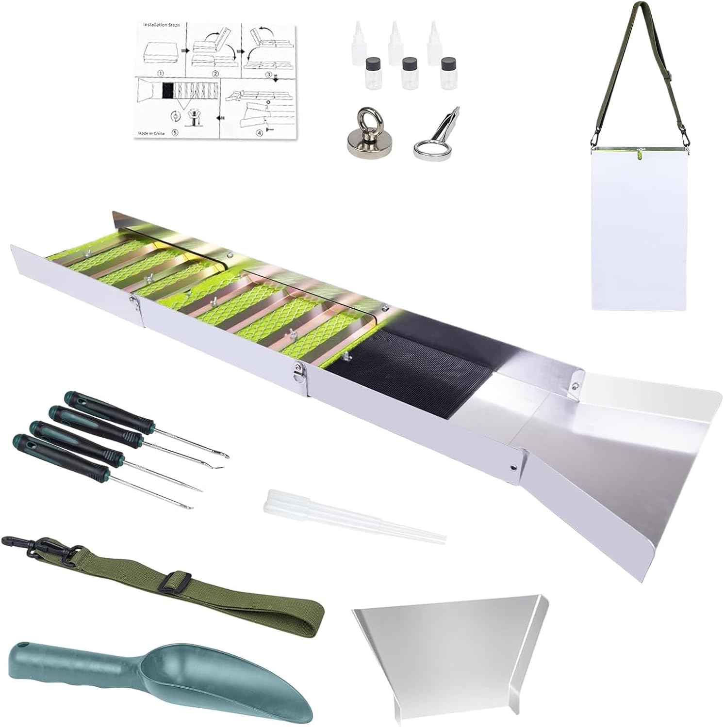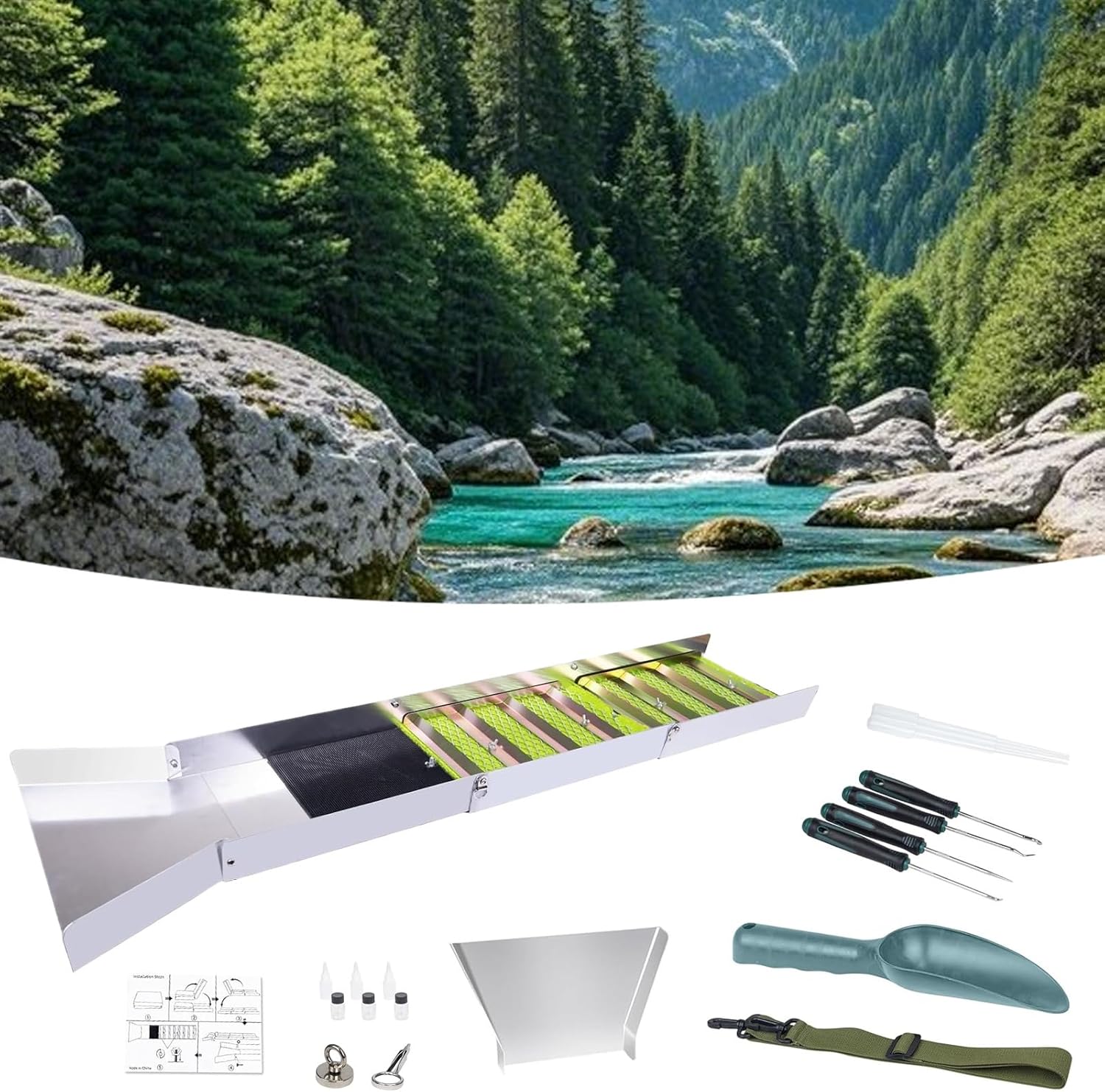 Facile da usare: il kit per l'estrazione dell'oro utilizza scanalature a gradini per ottimizzare il flusso d'acqua, migliorando la separazione dei materiali indesiderati, con conseguente raccolta dell'oro più pura e migliori tassi di recupero durante la panoramica nei fiumi o nei lavaggi a secco Ampia gamma di applicazioni: dotato di parametri regolabili, il kit panning for gold pan si adatta perfettamente a diversi ambienti, garantendo un accurato smistamento delle particelle e migliorando i tassi di recupero sia che tu stia estraendo vicino a fiumi, insenature o altre aree ricche di minerali Design compatto e pieghevole: il kit di panning dorato presenta un design compatto pieghevole che riduce le dimensioni di stoccaggio, garantendo una portabilità adatta allo zaino per gli appassionati di attività all'aperto che esplorano fiumi o campeggi, risparmiando energia e spazio durante il viaggio Robusto dispositivo per l'estrazione della sabbia: realizzata per la resistenza, questa attrezzatura per panning in oro incorpora un rivestimento antigraffio e resistente all'usura per prevenire danni, mantenendo la sua forma e funzionalità anche se esposta ad abrasioni di sabbia durante sessioni di esplorazione prolungate Efficiente strumento di panoramica dell'oro: questa apparecchiatura di panning in oro presenta un design di connessione intuitivo che elimina la necessità di strumenti durante l'assemblaggio, riducendo significativamente la difficoltà operativa e migliorando l'efficienza sul campo per i cercatori che richiedono configurazioni rapide su terreni accidentati riducendo i tempi di installazione per massimizzare la produttività durante le attività di estrazione dell'oro