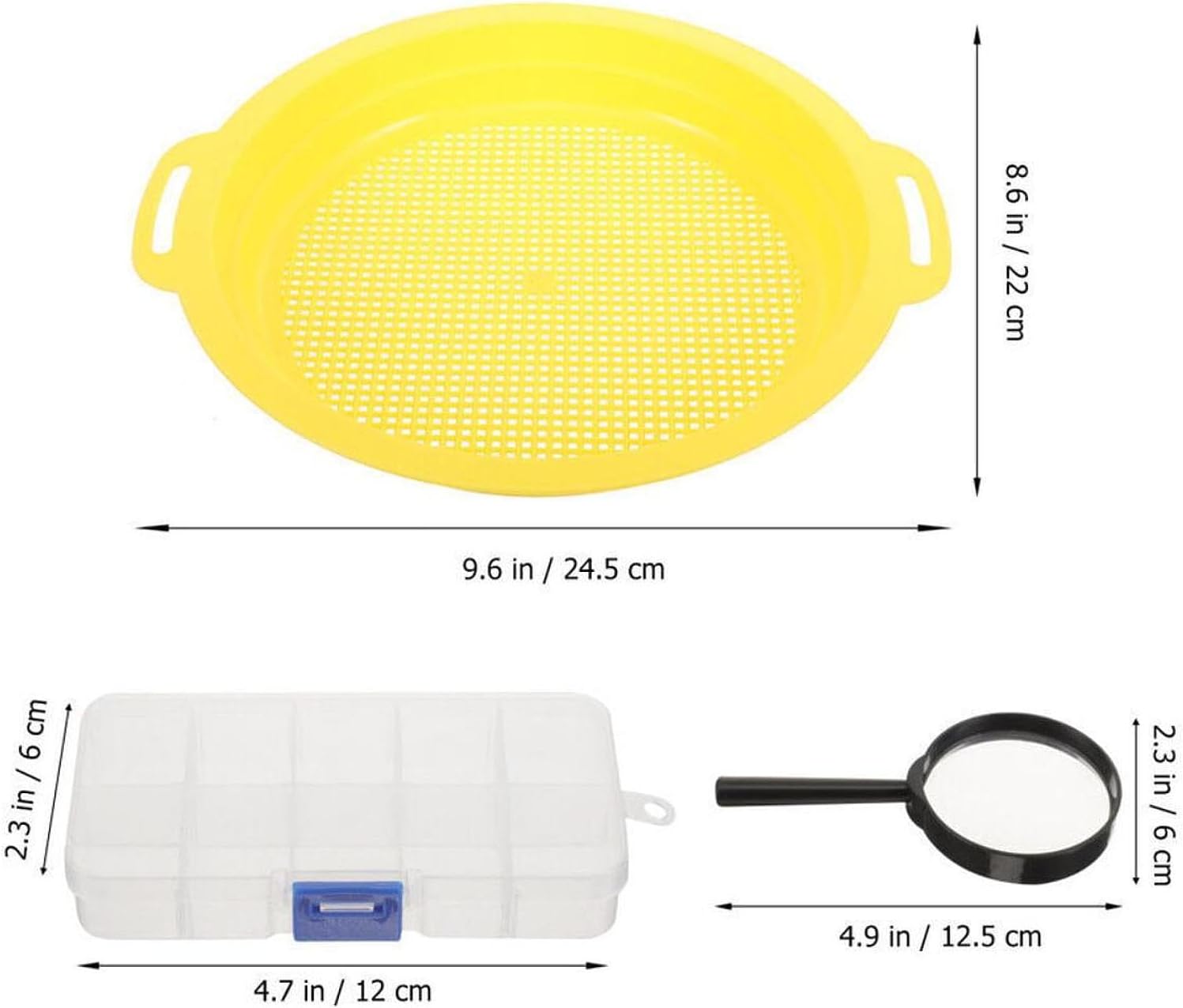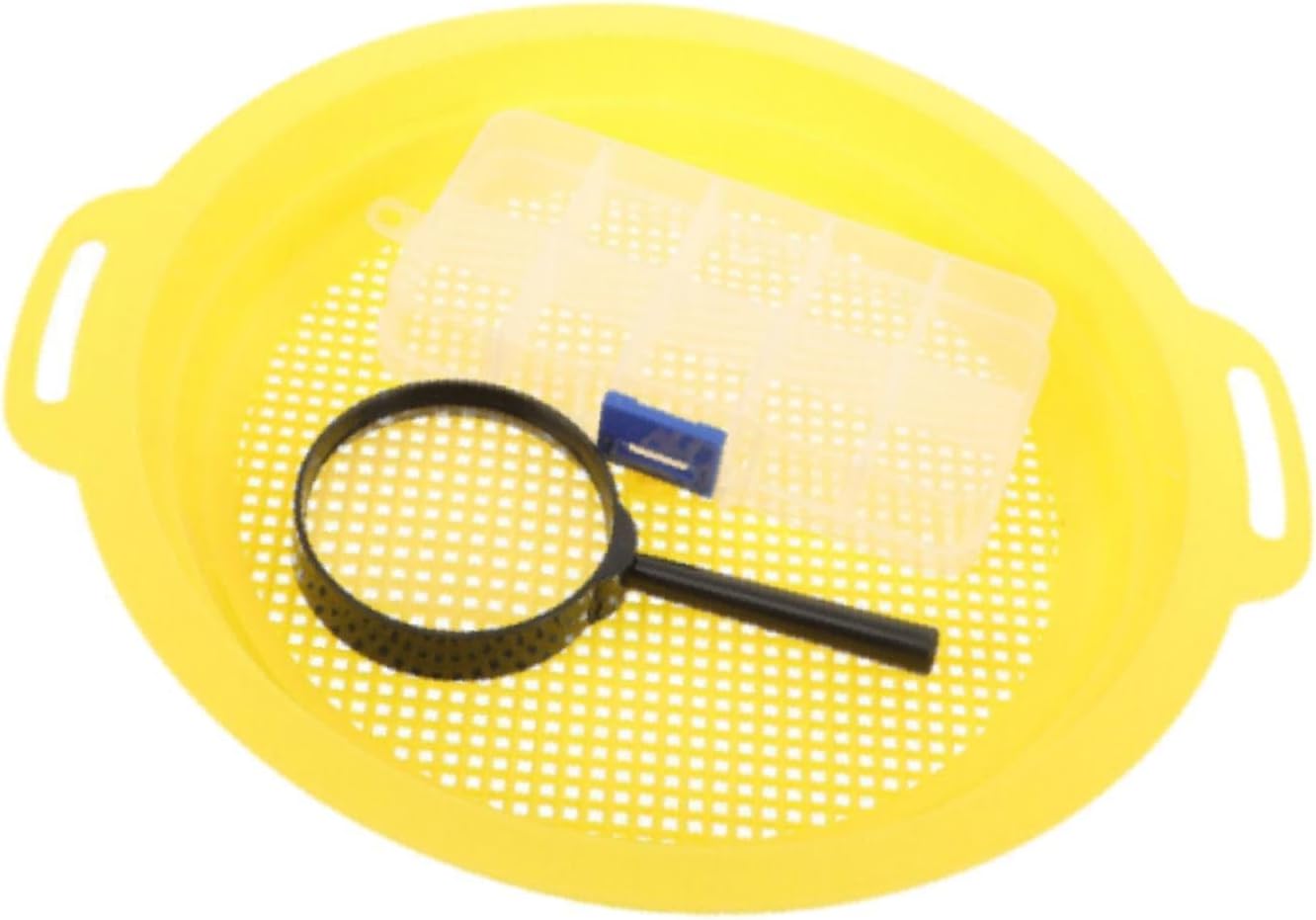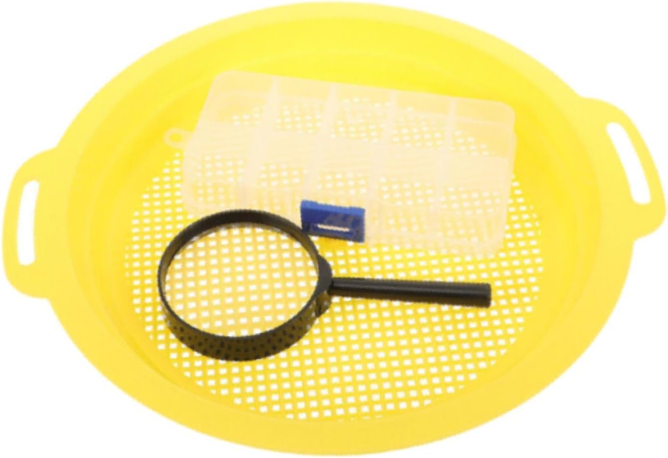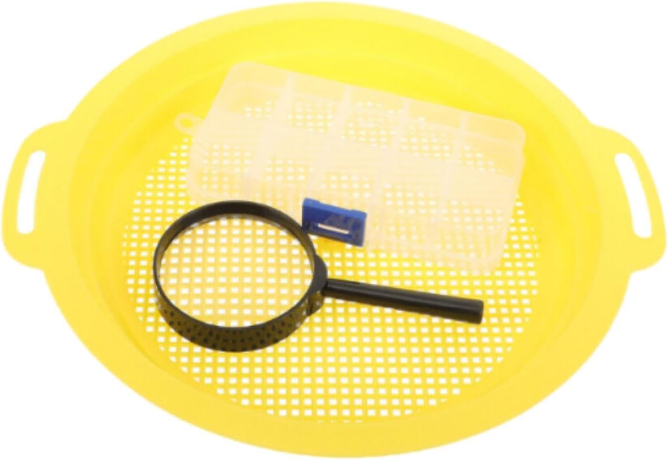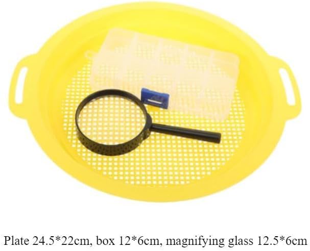 [Funzione] Il kit di prospezione dei minerali può essere utilizzato per molteplici scopi come setacciare i minerali di filtraggio della sabbia, ecc., che migliora l'efficienza del lavoro Informazioni sulle taglie: la padella a rete per oro misura circa 24,5 cm x 22 cm, lente d'ingrandimento 12,5 cm x 6 cm, scatola 12 cm x 6 cm [Facile da usare] Lo strumento di filtraggio della pentola di prospezione rende la panoramica dell'oro più facile, risparmio di manodopera ed efficiente, e le dimensioni compatte consentono di trasportarlo e utilizzarlo in qualsiasi momento [Setaccio Pan Set] 1 pentola a rete potabile, scatola di plastica trasparente con 10 griglie, 1 strumento di ingrandimento [Applicazione] Attrezzatura per panning oro per principianti ideale per rilevare e panning per oro e altri metalli in letti dei fiumi, spiagge fluviali e altri luoghi.