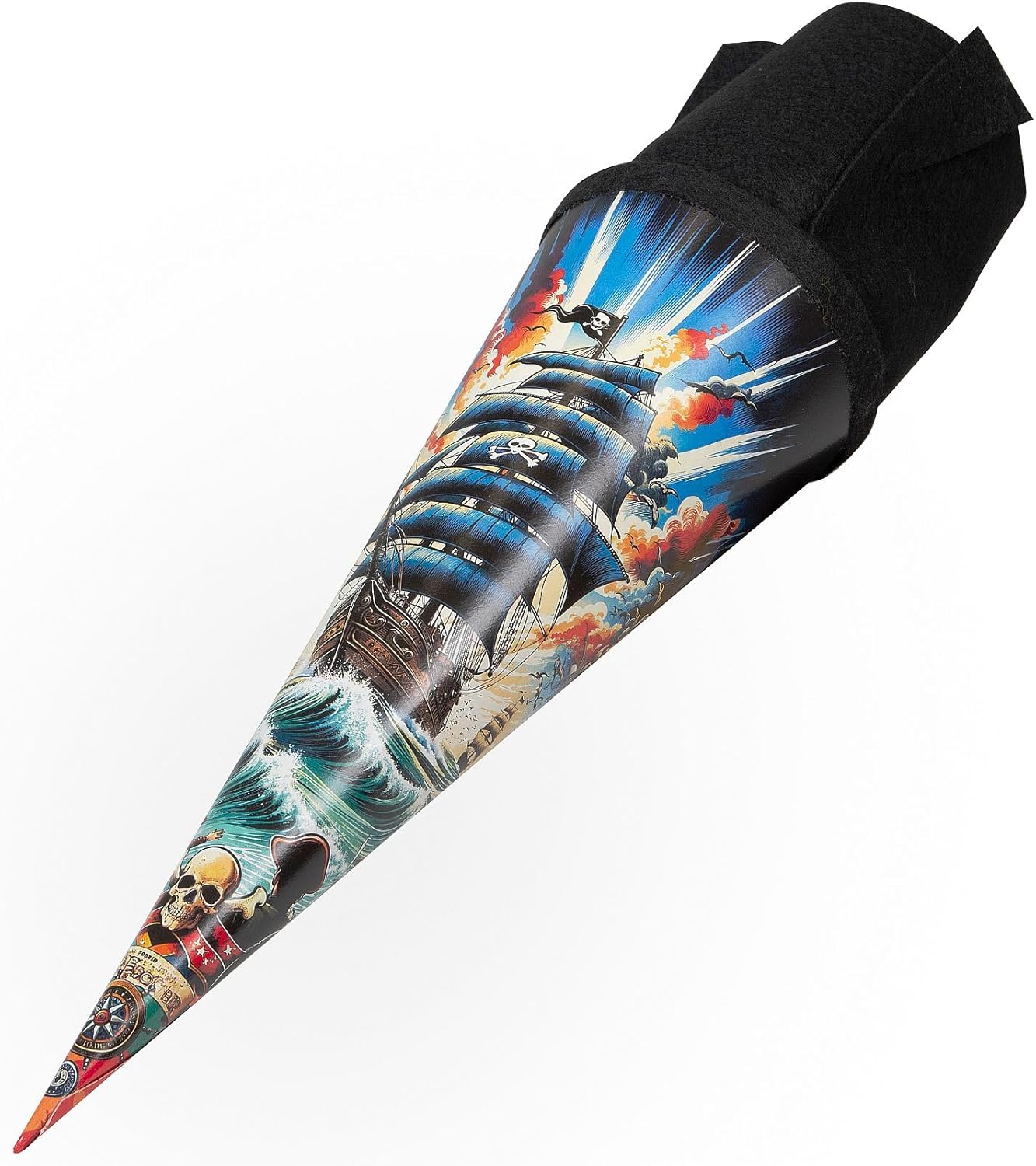 goldbuch Sacchetto fratello Pirata Storm in cartone laccato rinforzato con una nave pirata tempestosa come motivo per l'inizio perfetto della scuola Ideale come regalo per l'inizio della scuola, per lo studio o l'inizio della lezione, per l'inizio del lavoro, per la pensione e ideale come confezione regalo, accessorio per costume o regalo scherzoso Contenuto sicuro grazie alla chiusura in feltro coordinato, facile apertura e chiusura della chiusura in feltro, superficie liscia Il sacchetto di zucchero offre spazio sufficiente per dolcetti e utili accessori scolastici come penne, astucci, utensili per bricolage, piccoli blocchi di scrittura e quaderni per i compiti goldbuch Sacchetto regalo Pirati Tempesta, motivo: nave pirata, lunghezza: 35 cm, diametro: 11,5 cm, con chiusura in feltro nero, art. n. : 93159, EAN: 4009835931592