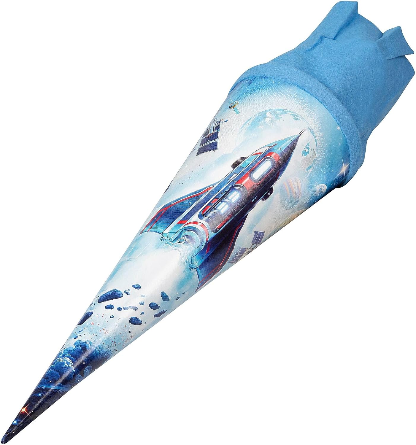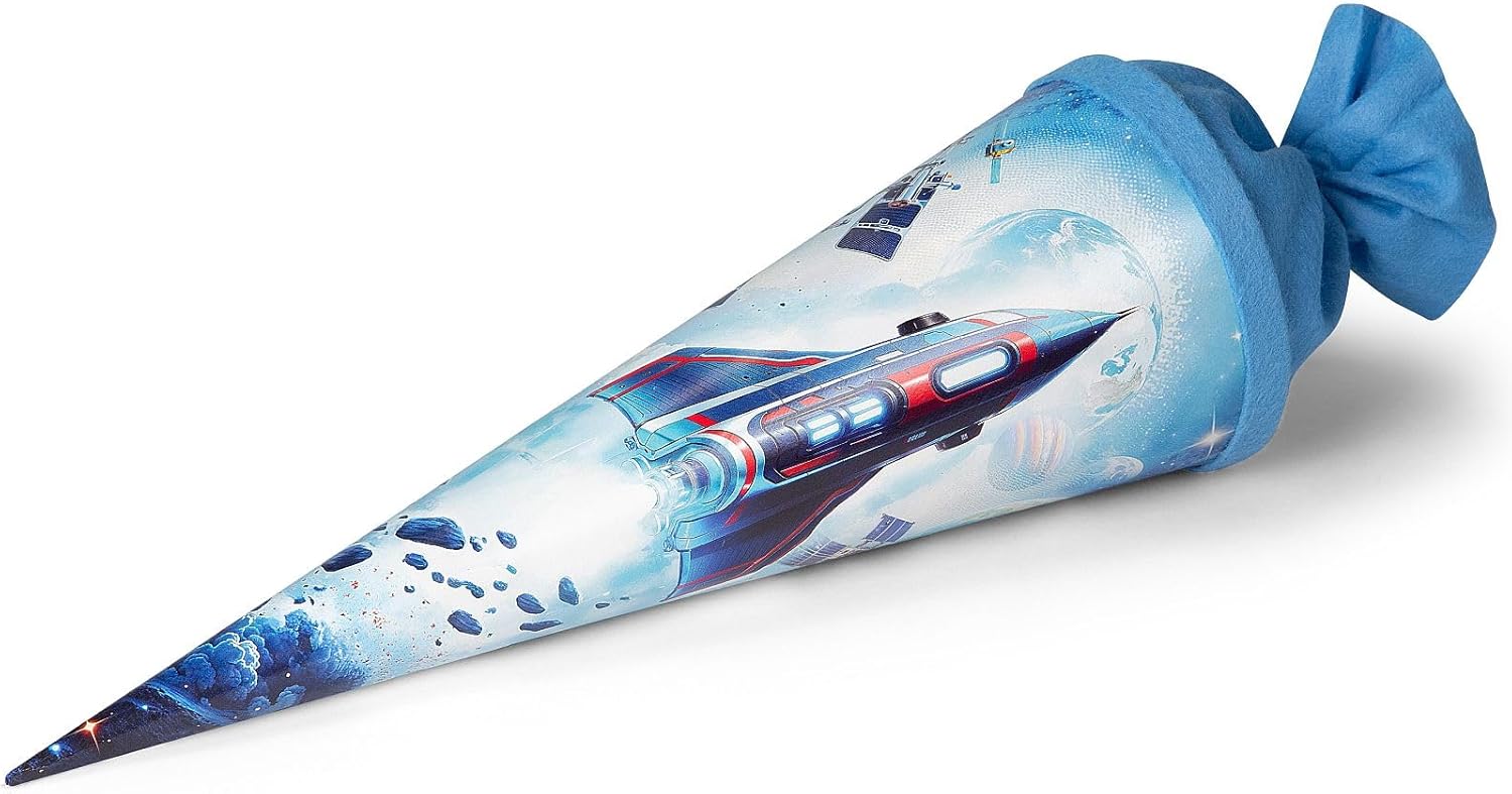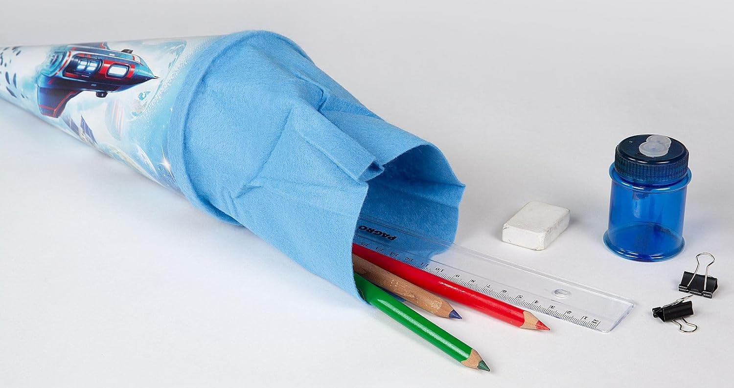 goldbuch Sacchetto per fratelli spaziale in colore blu in cartone laccato rinforzato con un'astronave come motivo per l'inizio perfetto della scuola Ideale come regalo per l'inizio della scuola, per lo studio o l'inizio della lezione, per l'inizio del lavoro, per la pensione e ideale come confezione regalo, accessorio per costume o regalo scherzoso Contenuto sicuro grazie alla chiusura in feltro coordinato, facile apertura e chiusura della chiusura in feltro, superficie liscia Il sacchetto di zucchero offre spazio sufficiente per dolcetti e utili accessori scolastici come penne, astucci, utensili per bricolage, piccoli blocchi di scrittura e quaderni per i compiti goldbuch Sacchetto regalo "WELSPAZIO" motivo: astronave, colore: blu, lunghezza: 35 cm, diametro: 11,5 cm, con chiusura in feltro blu, art. n. : 93161, EAN: 4009835931615