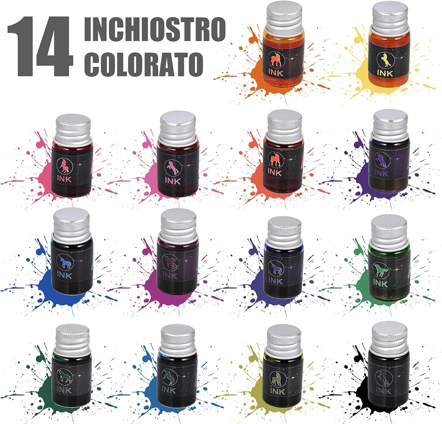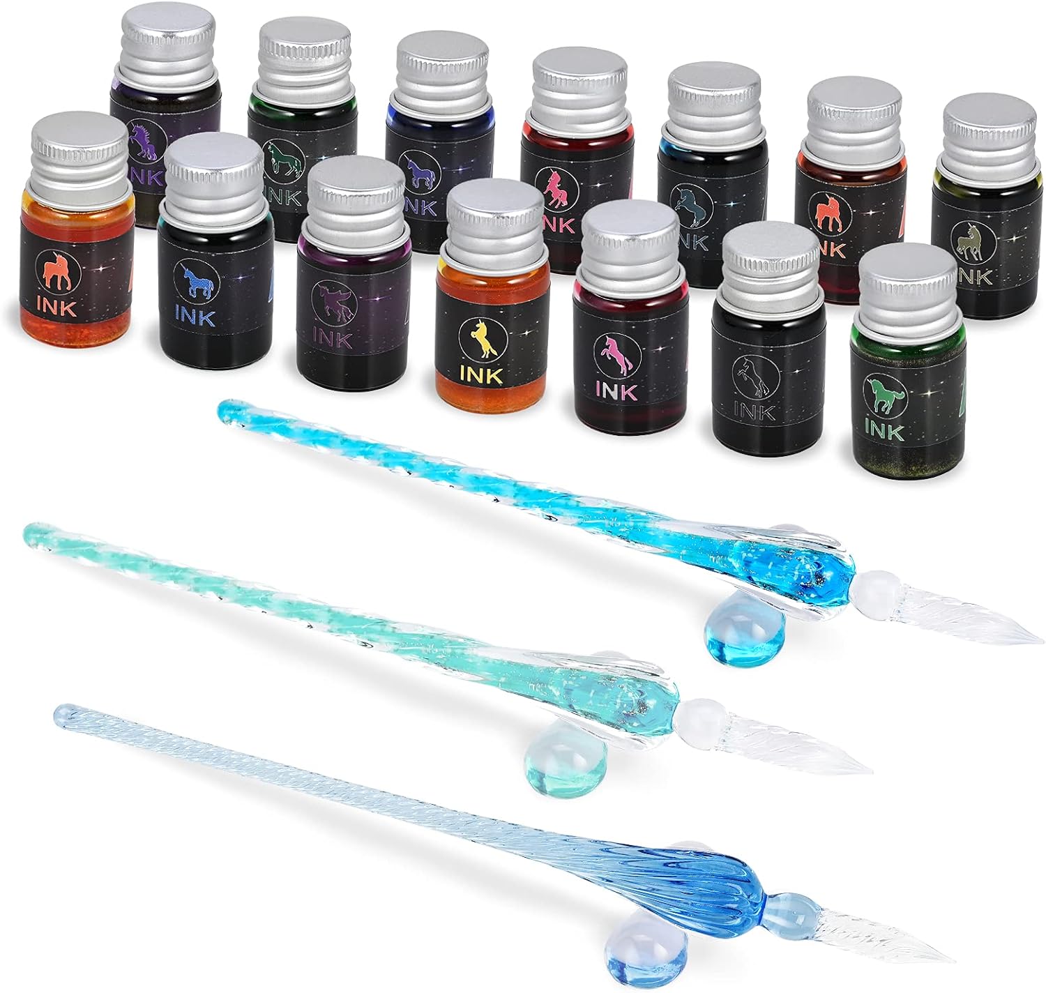 Qualità Premium: Set di penne per immersion realizzata in vetro borosilicato alto, che è Inchiostro ecologico, non inodore, non graffia la carta. Adatto per la scrittura quotidiana, creare carte regalo o biglietti di auguri. Ottima Scelta per Principianti: Durante l'uso, usa la penna di vetro per immergere leggermente l'inchiostro e scrivere bei caratteri o disegnare motivi raffinati dopo aver cancellato l'inchiostro in eccesso. Dedica meno tempo alla pulizia, devi solo mettere la penna in vetro nell'acqua e asciugarla. 14 Colori: Le penne per calligrafia in vetro includono inchiostro colori distinti; ognuno viene fornito con polvere d'oro che avere una consistenza di alto livello. Agitare la bottiglia per mescolare la polvere d'oro e l'inchiostro in modo uniforme se la polvere precipita. Senza Perdite: Progettato con pennino a spirale, rende l'inchiostro distribuito uniformemente, garantisce una scrittura fluida e fluida. Ogni flacone è dotato di una guarnizione a prova di perdite per impedire la fuoriuscita del penne calligrafiche set. Squisito e Attraente: Il penne immersione vetro include 14 inchiostri a colori, 3 penne a immersione in cristallo, pentola penna e portapenne.. Un ottimo regalo per la laurea, compleanni, Natale, Capodanno, ecc.
