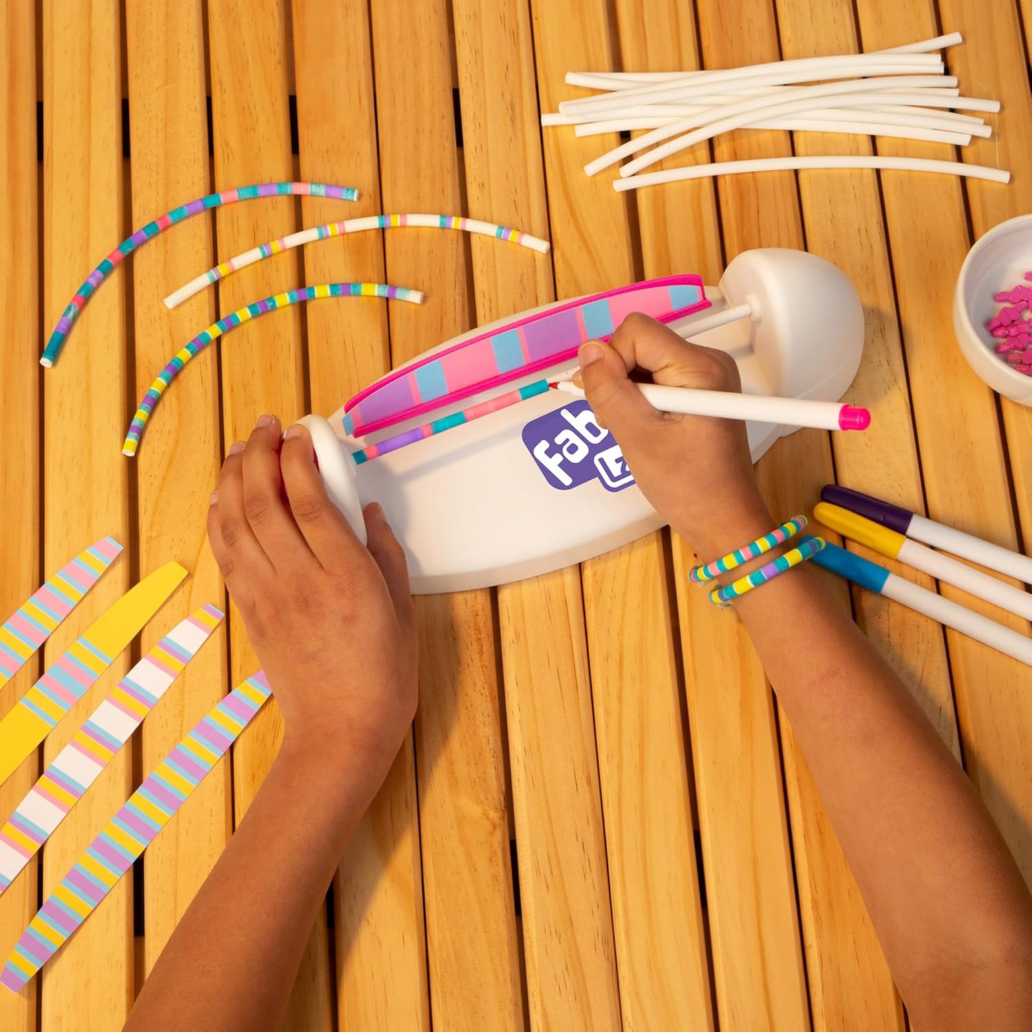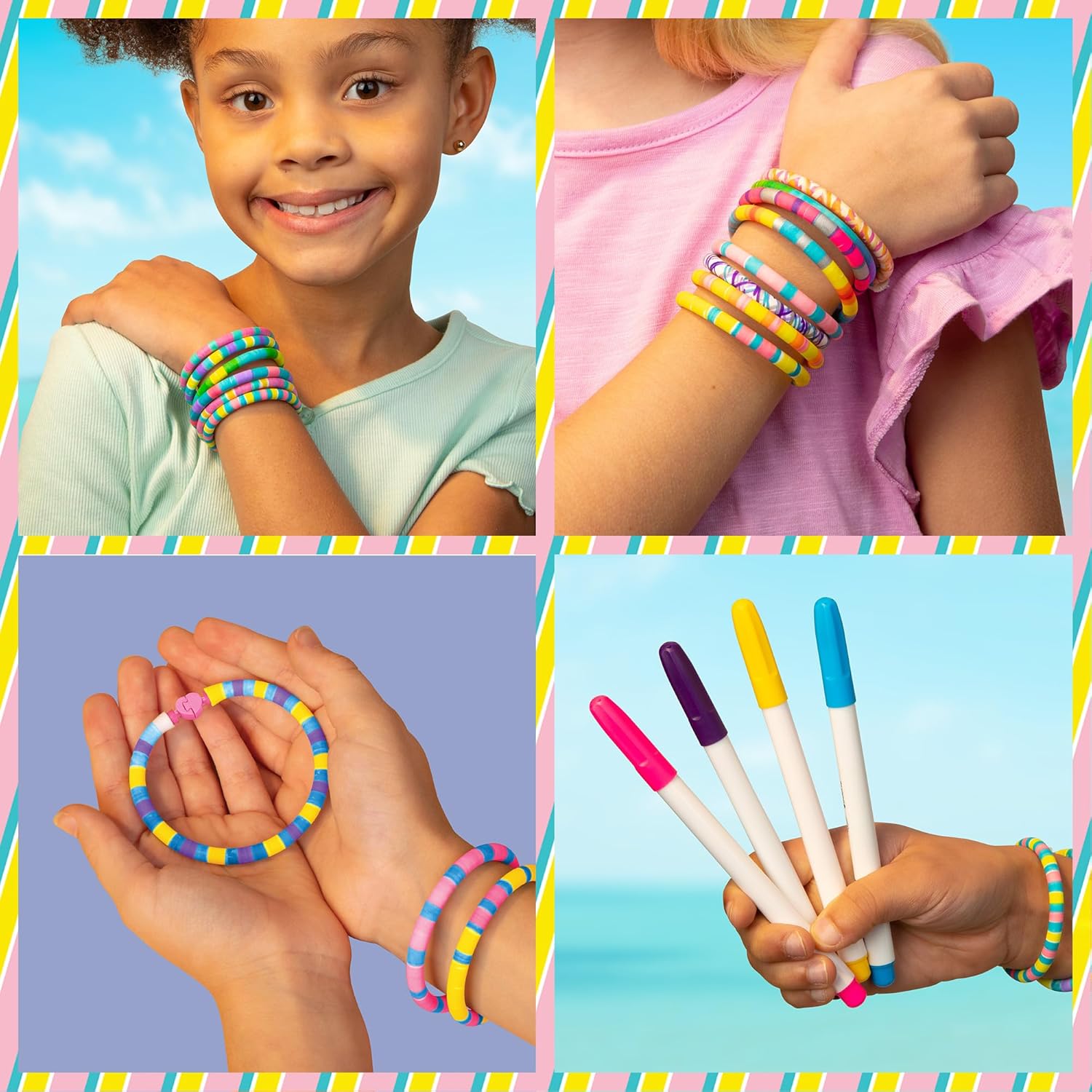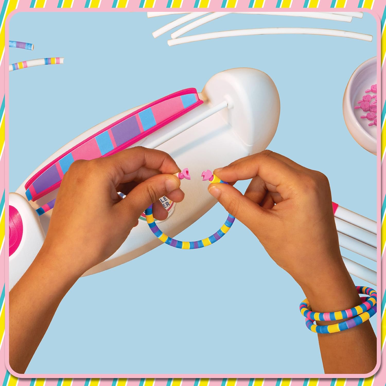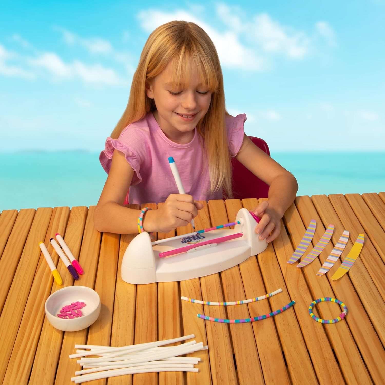 CREA BRACCIALETTI IN MODO FACILE E VELOCE – Inserisci il tubo, premi il pulsante e lascia girare la macchina: decora il tuo bracciale con i pennarelli inclusi e guarda il tuo design prendere vita. Senza fili o perline! KIT COMPLETO PER 15 BRACCIALETTI PERSONALIZZABILI – Con 15 tubi, 15 chiusure e 4 pennarelli permanenti, i bambini possono creare una collezione di braccialetti originali e colorati. Libertà totale di stile e fantasia! PERFETTO PER BAMBINI DAI 6 ANNI IN SU – La macchina per braccialetti funziona con un solo pulsante: semplice da usare e ideale per incoraggiare autonomia, coordinazione e creatività fin dalla prima infanzia. STIMOLA LA CREATIVITÀ SENZA SPORCO E CONFUSIONE – Niente fili da infilare, colla o disordine: il bambino può decorare i braccialetti da solo e in tutta sicurezza. Un gioco creativo rapido e ordinato da fare a casa o con gli amici. IDEA REGALO CREATIVA PER BAMBINE E BAMBINI – Ideale per compleanni, Natale o momenti speciali. Un’attività educativa, alla moda e divertente per bambini che amano creare i propri accessori da indossare o regalare.