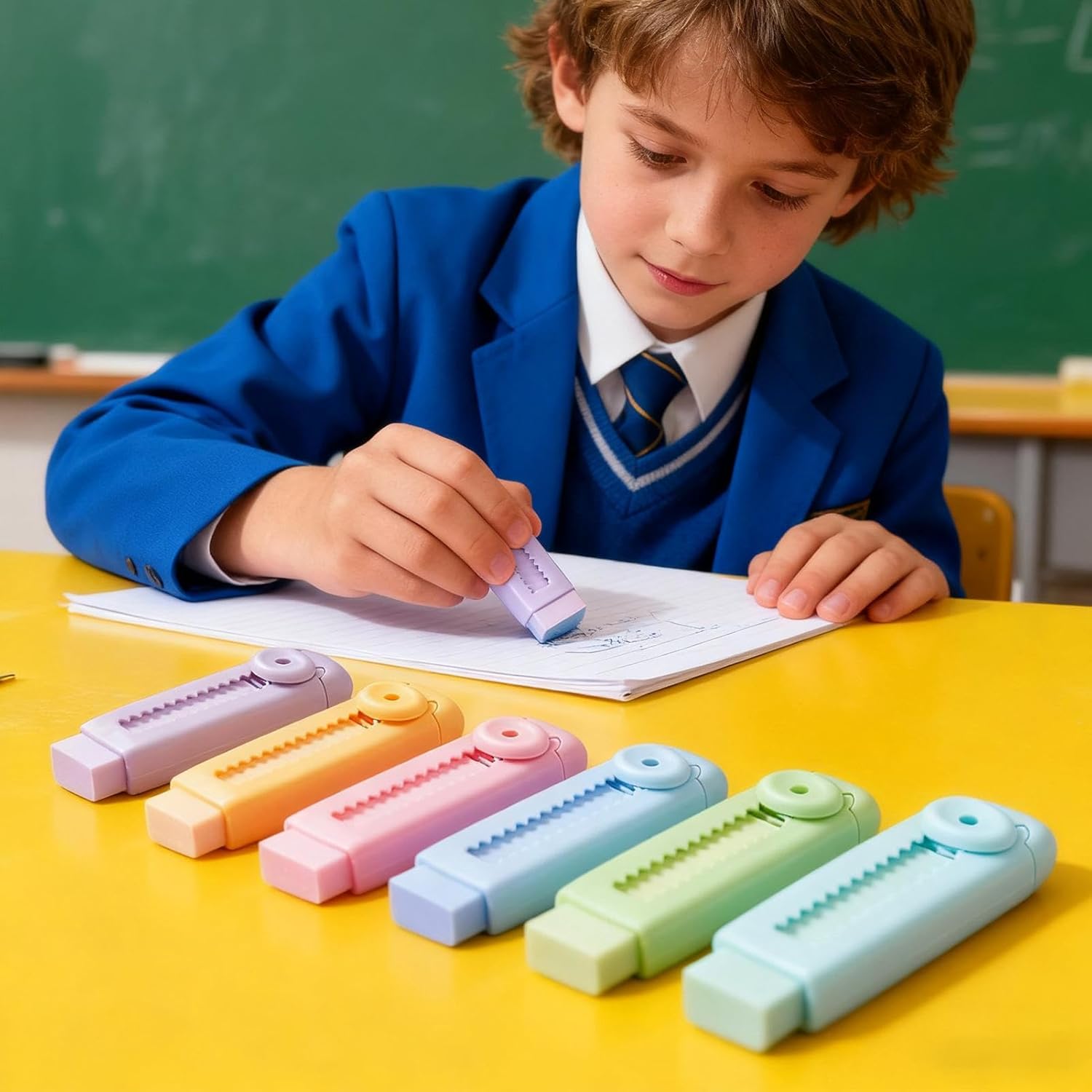Posizione della mano rilassata: grazie al manico ben progettato, questo rasoio retrattile consente di correggere con precisione senza inconvenienti durante le fasi di apprendimento o di lavoro Regalo perfetto: questa gomma estensibile è un regalo pratico per studenti e bambini, che offre un'esperienza di cancellazione coinvolgente ed è ideale come incentivo in classe Ampia gamma di applicazioni: questa gomma a scatto per bambini organizza lo spazio di lavoro riducendo al minimo la formazione di briciole e offre funzioni correttive affidabili per studenti e professionisti in diverse situazioni Design resistente all'usura: la combinazione di superficie di cancellazione di grandi dimensioni e materiale in gomma resistente garantisce una durata stabile per studenti e insegnanti in ambienti di apprendimento vivaci, ideale per l'uso frequente Rapida correzione degli errori: questo eraser retrattile elimina i segni di matita senza sforzo ed efficienza, perfetto per esami, disegni o schizzi dove la correzione rapida è fondamentale