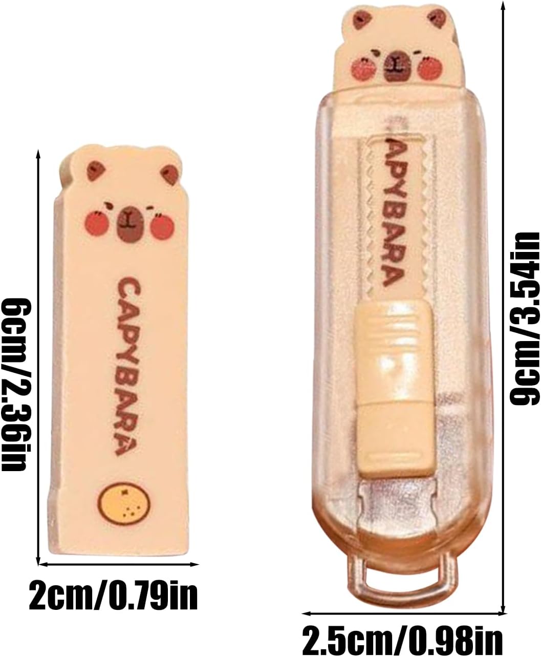 Comodo design della gomma: le dimensioni compatte di questa gomma e la funzione retrattile consentono una facile portabilità, una facile conservazione e una cancellazione istantanea, perfetta per l'uso in qualsiasi momento e ovunque Soluzione di cancellazione facile: la gomma retrattile è dotata di un meccanismo push-pull per una correzione senza sforzo, eliminando il fastidio di una rimozione ripetuta garantendo un facile funzionamento con precisione costante e regolazioni fluide durante l'uso; ideale per attività di cancellazione senza interruzioni Design carino: con il suo affascinante stile capibara dei cartoni animati, questa gomma retrattile si rivolge a collezionisti e appassionati che cercano articoli di cancelleria gioiosi e divertenti per le attività quotidiane Aiuto per cancellare multiuso: gestisce i segni a matita nelle note di classe, schizzi e altre attività, soddisfacendo diverse esigenze di cancellazione in molteplici ambienti di utilizzo Sentimentale e utile: ideale come cancelleria da regalare, questa gomma retrattile combina un design accurato con una funzione pratica, trasmettendo cura attraverso la sua usabilità, assicurandosi che si distingua come un regalo memorabile e utile per familiari, amici o colleghi