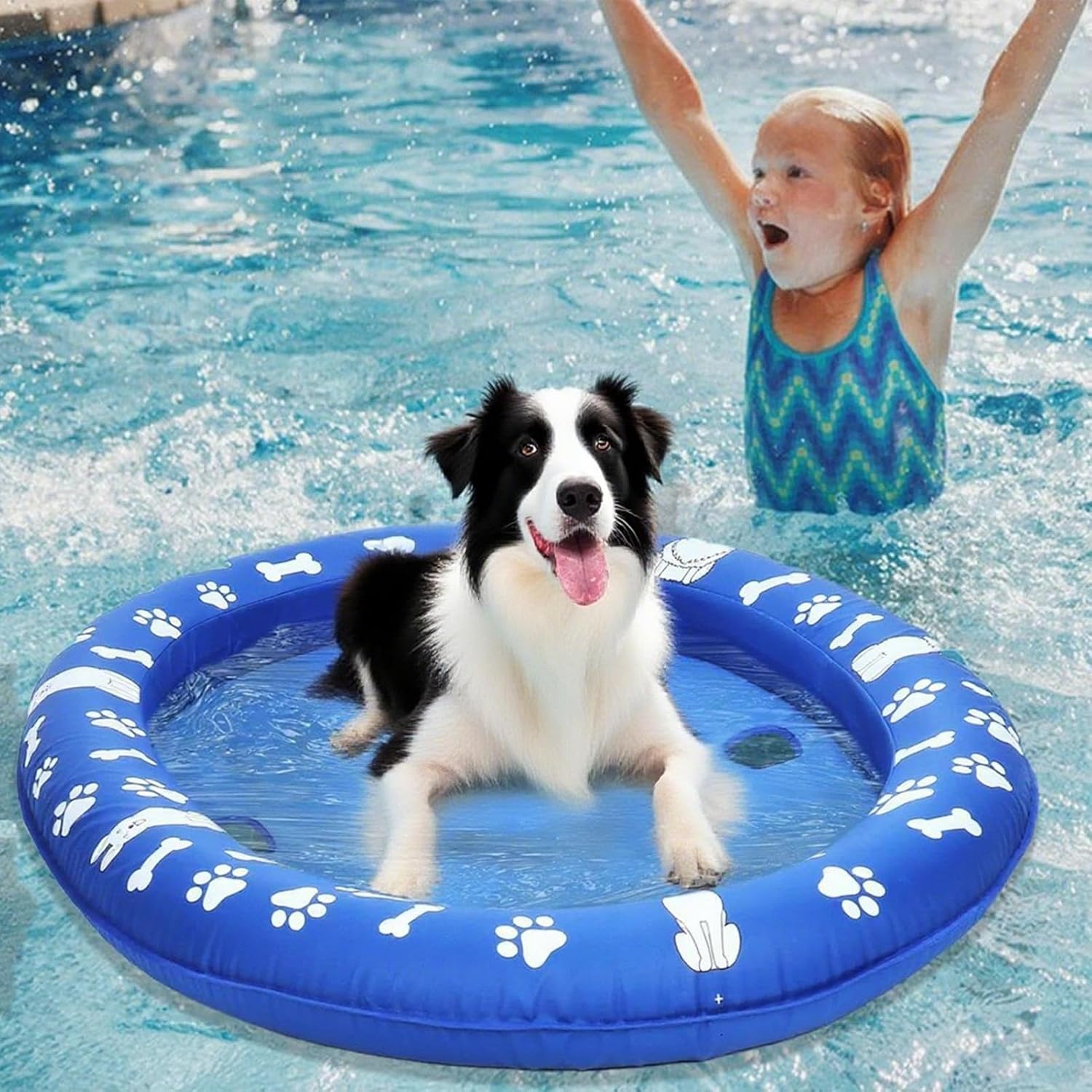 Design amichevole: con il motivo blu e bianco, la grafica delle ossa e le simpatiche stampe di animali, questo aiuto per il nuoto è stato progettato per migliorare il divertimento dell'acqua all'esterno e fornire un aspetto accattivante per e i loro proprietari. e Materiali: il rivestimento in PVC rinforzato combinato con tessuto Oxford ad alta densità garantisce una lunga durata. Resiste ai graffi per un uso multiplo durante le attività acquatiche all'aperto. Comfort del cane: il sistema idrico con quattro fori di drenaggio mantiene la posizione galleggiante. Rilassamento migliore in acqua e rinfrescante rinfrescante per il vostro durante l'uso Ampia superficie: ampia superficie galleggiante con ampio bordo di rinforzo. Tenuta sicura per due cani fino a 30 kg, progettato per il divertimento in acqua e per cani di taglia media. Design portatile: galleggiante per cani gonfiabile e sgonfiabile rapidamente con dimensioni compatte pieghevoli per un facile trasporto. Si integra facilmente con pompe ad aria per un uso immediato in acqua.