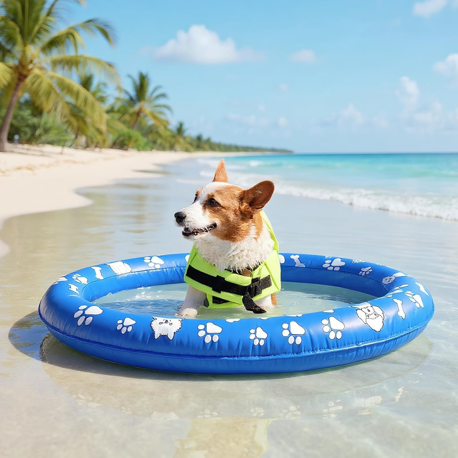 Stabilità e Freschezza: Grazie ai 4 fori di drenaggio combinati con il design studiato, il cane mantiene una posizione stabile e una piacevole sensazione di fresco per un divertimento acquatico ideale. Portatile: Design gonfiabile per cani con tecnologia rapida gonfiaggio/sgonfiaggio, si ripiega in modo compatto per il trasporto e funziona con pompa d'aria per un utilizzo semplice e immediato Stabilità Migliorata: Combinando materiale PVC rinforzato e tessuto Oxford ad alta densità, questo galleggiante sicuro per cani resiste all'usura, offrendo una soluzione riutilizzabile per il divertimento in acqua del tuo animale domestico Stile Accattivante: Un mix accattivante di tonalità bianco-blu, motivi di ossa e zampe e stampe carine assicura che questo gonfiabile si distingua visivamente, scelta eccellente per attività acquatiche all'aperto e interazioni gioiose con il tuo animale domestico in acqua. Design spazioso: Galleggiante grande con bordi larghi affidabili, ospita in sicurezza 2 cani fino a 30 kg, realizzato per razze piccole e medie che amano il gioco acquatico.