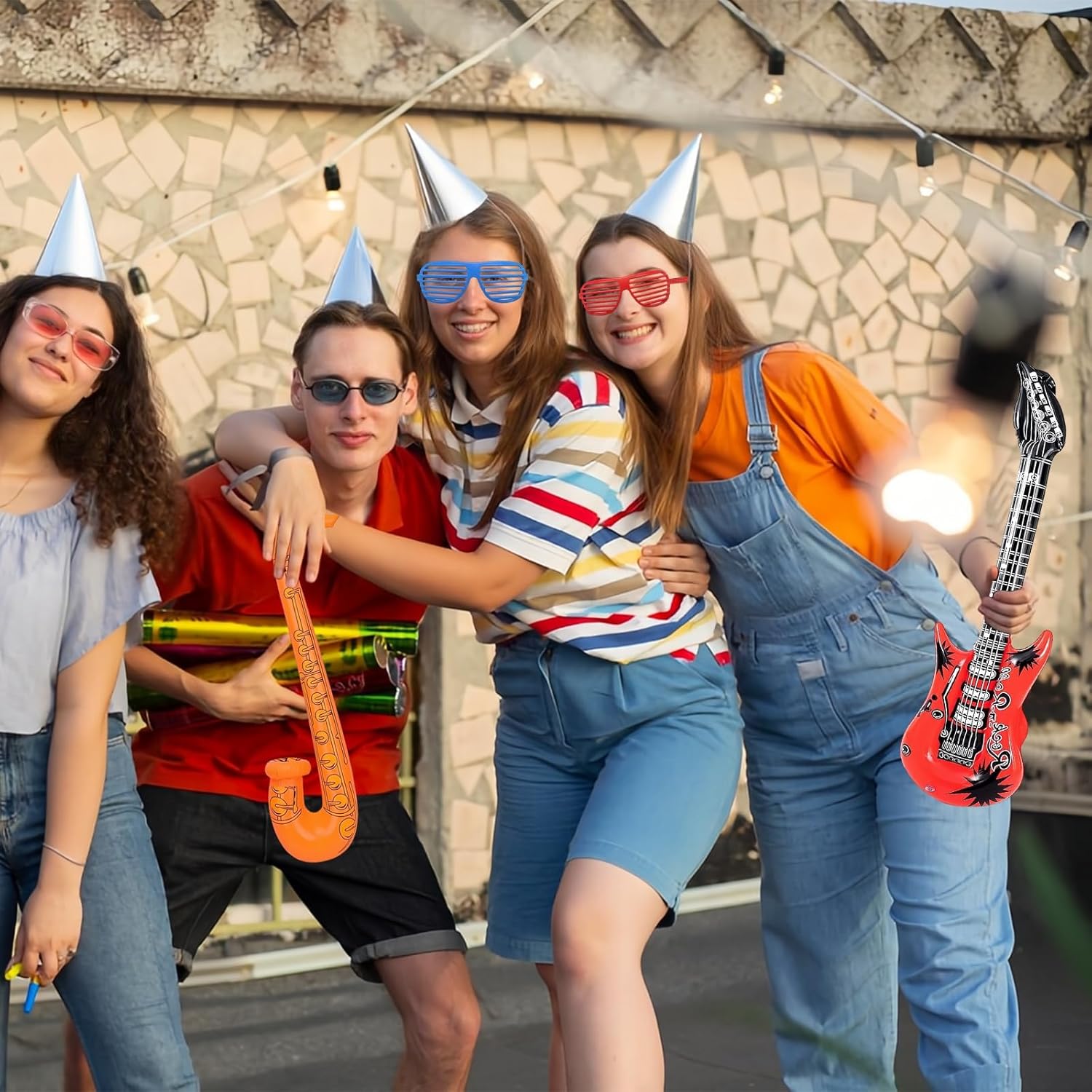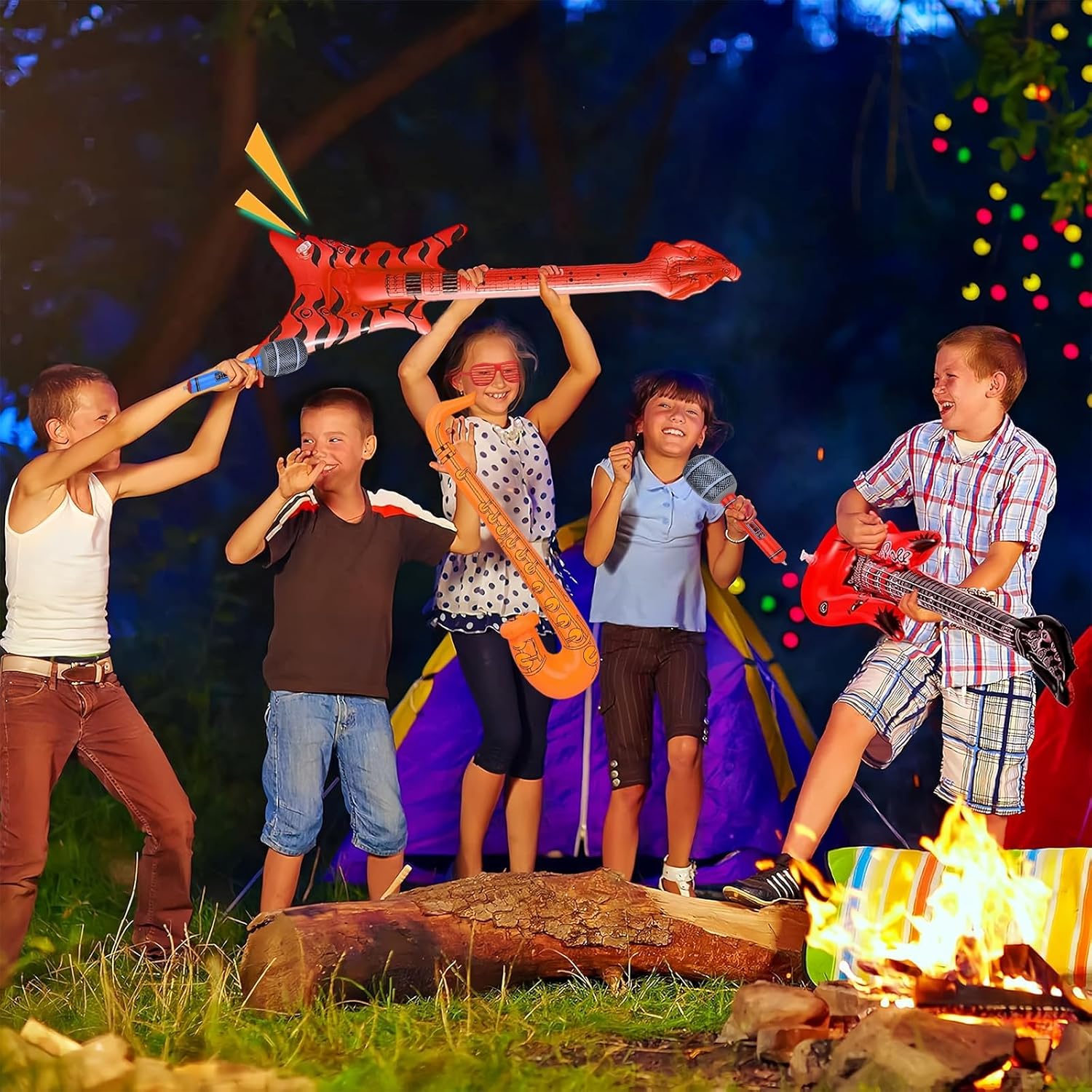 Accessori Gonfiabili per Feste: Riceverai 9 giocattoli gonfiabili, tra cui 1 chitarra gonfiabile (60 cm), 1 chitarra gonfiabile da 90 cm (90 cm), 3 occhiali da sole con otturatore (15 cm), 1 sassofono gonfiabile (66 cm), 2 microfoni gonfiabili (33 cm) e 1 pompa manuale (17,5 cm). Giochiamo con questi chitarra per bambini colorati in modo casuale e iniziamo una divertente esperienza di apprendimento. Materiale Affidabile e di Qualità: Realizzato in materiale PVC di alta qualità chitarra elettrica bambini, che riduce il rischio di perdite, liscio e robusto, sicuro e può trattenere l'aria per molti anni, durevole e riutilizzabile. strumenti musicali gonfiabili è leggero e facile da trasportare. Si caratterizza per il bel design, i colori piacevoli e la luminosità. Super Divertenti: I design microfono bambini e chitarra giocattolo per le feste sono realistici, colorati, vivaci e luminosi, e rappresentano l'ambientazione perfetta per una festa a tema rock per gli appassionati di musica. I graziosi strumenti musicali gonfiabili sono gli accessori migliori per la riuscita delle attività a tema musicale e possono essere utilizzati come oggetti di scena per feste di compleanno, per concerti, per feste in classe, per spettacoli, ecc. Riutilizzabile e Durevole: Questo chitarra bambini è morbido, liscio, elastico e confortevole. È facile da gonfiare, è molto resistente e può essere utilizzato più volte. Se non vuoi utilizzarlo, puoi sgonfiarlo per far uscire l'aria e tenerlo fermo. La prossima volta lascia che i tuoi bambini ci giochino chitarra giocattolo. Ampia Applicazione: Questo è il posto perfetto per una festa a tema rock per gli appassionati di musica. L'adorabile canzoniere chitarra è il miglior oggetto di scena per un evento di successo a tema musicale, può essere utilizzato per feste di compleanno, feste di Natale, feste di Capodanno, feste di Carnevale, costumi, premi per la classe, oggetti di scena per concerti, oggetti di scena per spettacoli per bambini, oggetti di scena per servizi fotografici.