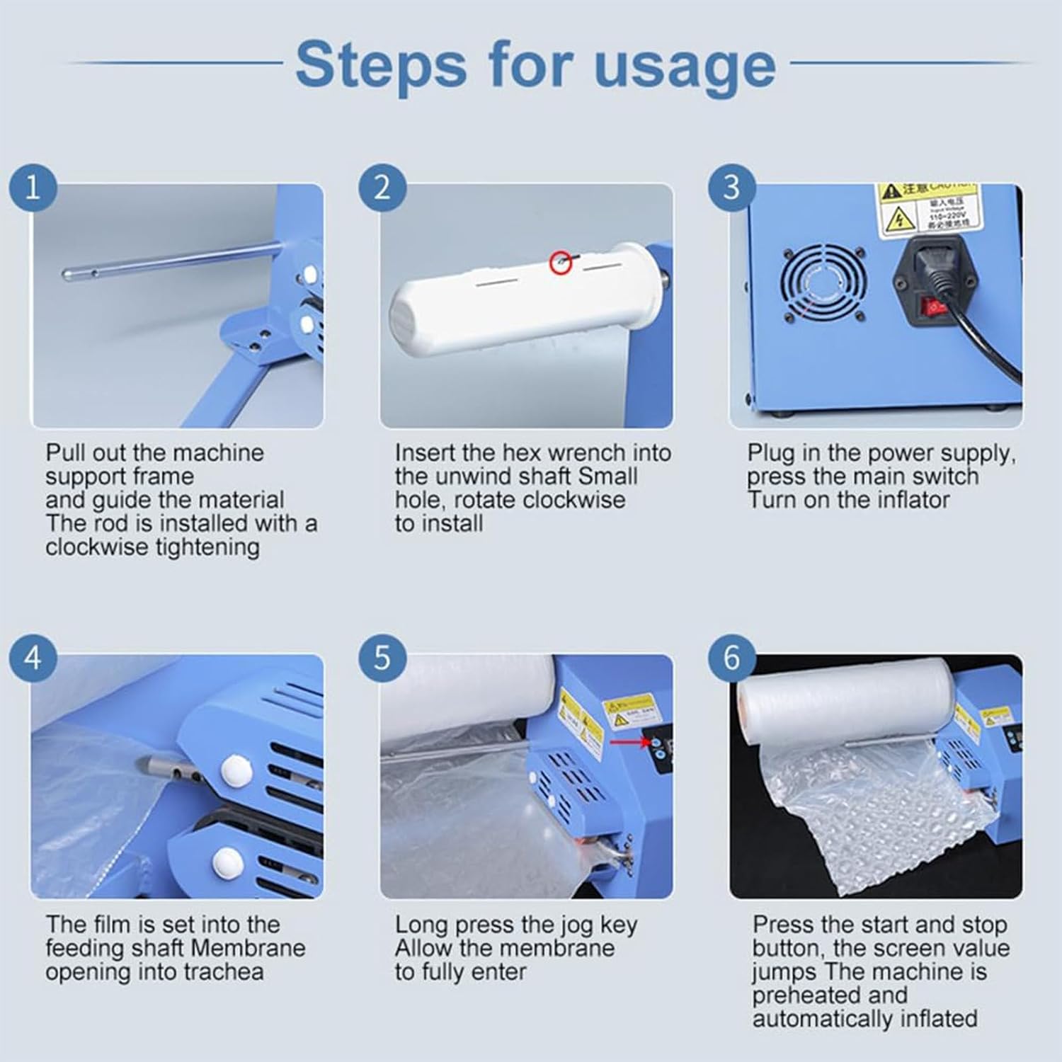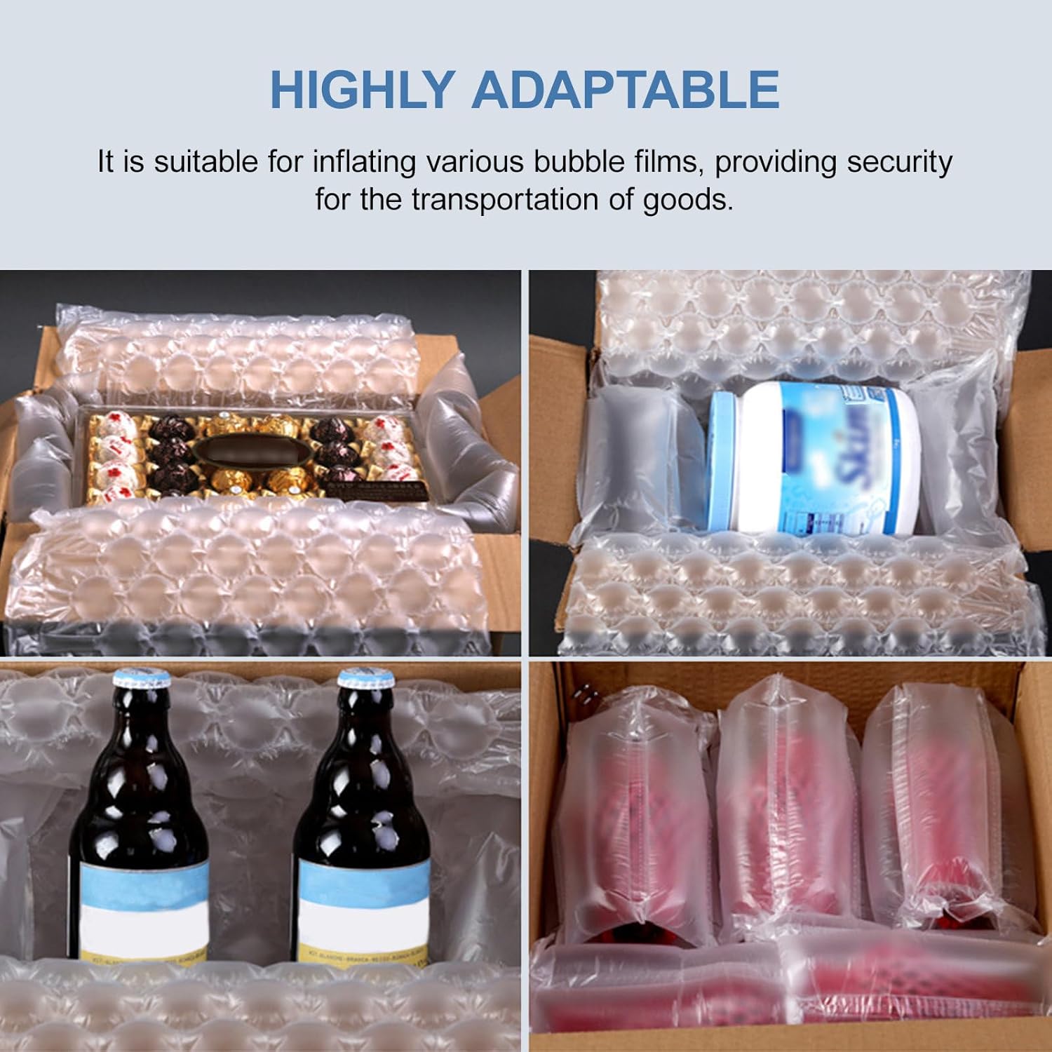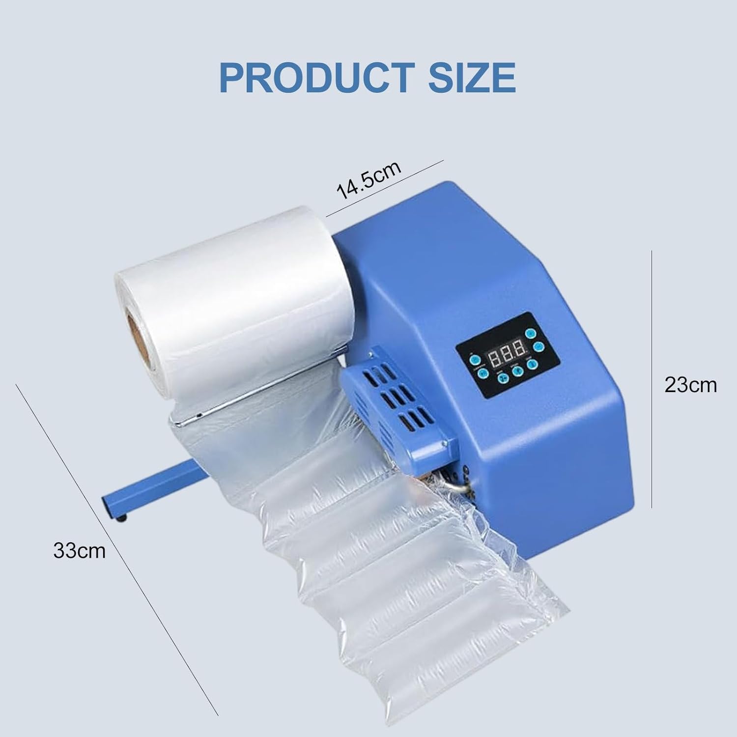 Questo gonfiatore automatico a colonna d'aria per imballaggi ha una velocità di gonfiaggio di 16 m/min. Ha una velocità di gonfiaggio elevata ed è adatto a diversi tipi di airbag, aiutandoti a proteggere i tuoi oggetti fragili durante il trasporto e lo stoccaggio. Il gonfiatore per pluriball è dotato di un pannello di controllo con tasti, che consente di regolare il volume d'aria, la velocità e la temperatura della macchina in base alle diverse esigenze di gonfiaggio. Diversi dati sono chiari a colpo d'occhio. Supporta l'avvio e l'arresto con un solo pulsante. Questa macchina per imballaggio a cuscino d'aria è progettata per soddisfare le esigenze di imballaggio protettivo, utilizzando cuscini a bolle gonfiati per riempire spazi vuoti, avvolgere articoli, ecc. per proteggere efficacemente i prodotti da eventuali danni. La nostra macchina gonfiabile a cuscino d'aria può adattarsi a una varietà di materiali di imballaggio a cuscino d'aria non gonfiati, aiutandoti a ridurre i costi di manodopera e di stoccaggio. La mini confezionatrice a cuscino (corpo: 33*23*14,5 cm/13*9*5,7 pollici) richiede uno spazio minimo per funzionare. L'albero di scarico regolabile e il telaio di supporto girevole facilitano il processo di gonfiaggio del film. Il pannello visivo consente di lavorare con maggiore tranquillità.