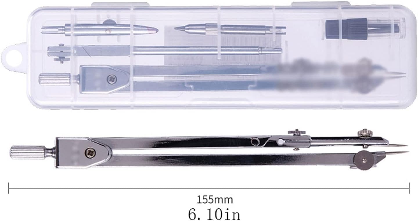 Molto adatto per disegnare cerchi o archi, adatto a studenti, insegnanti, designer, artisti, ecc. Realizzata in materiali metallici, la bussola non si deformerà o si deformerà durante l'uso ed è progettata ergonomicamente per renderla comoda da tenere. Dimensioni del prodotto: l'intera dimensione è lunga 155 mm/6,10 pollici. Il kit bussola è confezionato in una piccola scatola, facile da riporre, facile da riporre e la dimensione è perfetta. La bussola da disegno è adatta per equazioni matematiche, geometria di oggetti, design artistico, schizzi, disegni e altri campi. È anche un regalo perfetto per la famiglia e gli amici, facile da usare in classe e da riporre in classe e a casa.