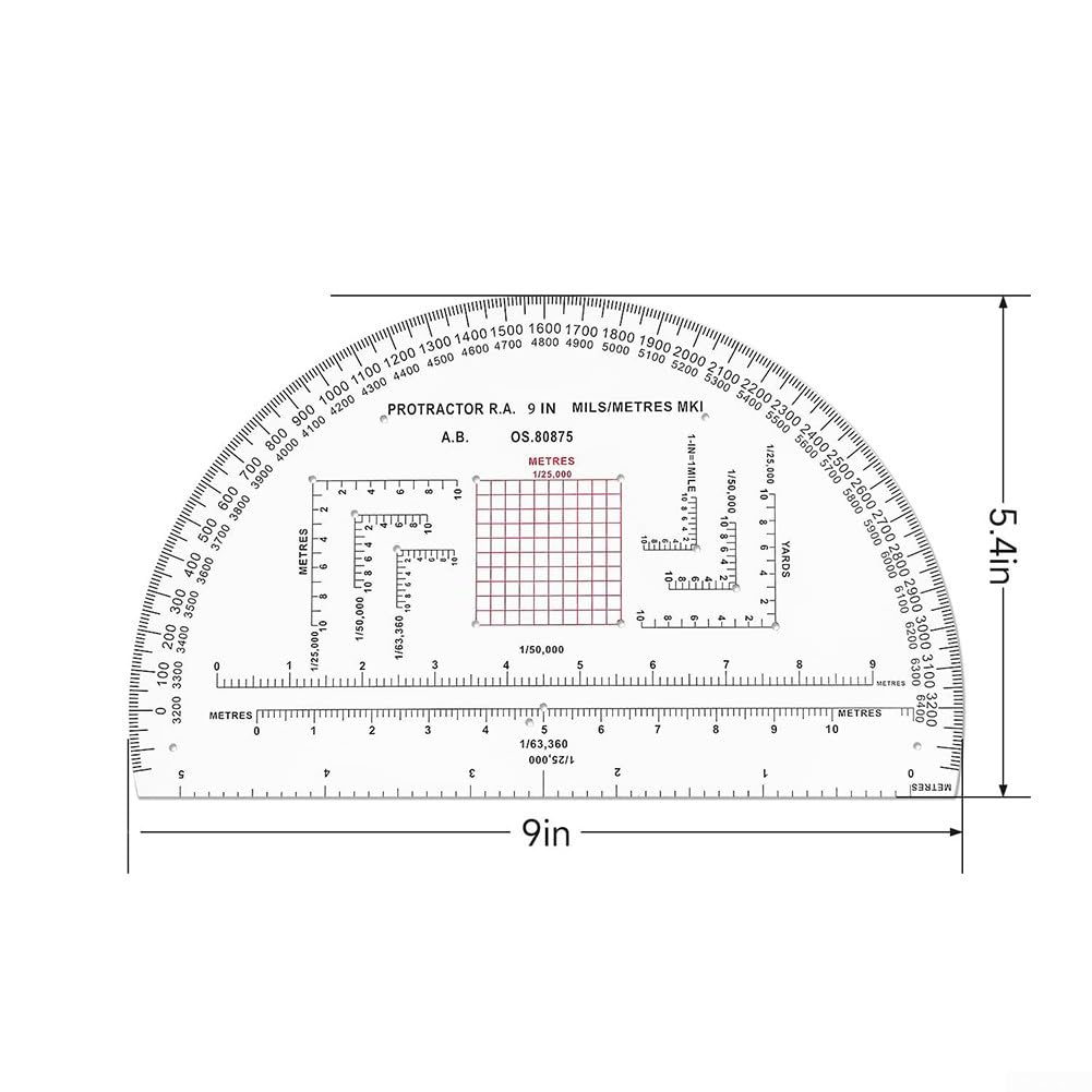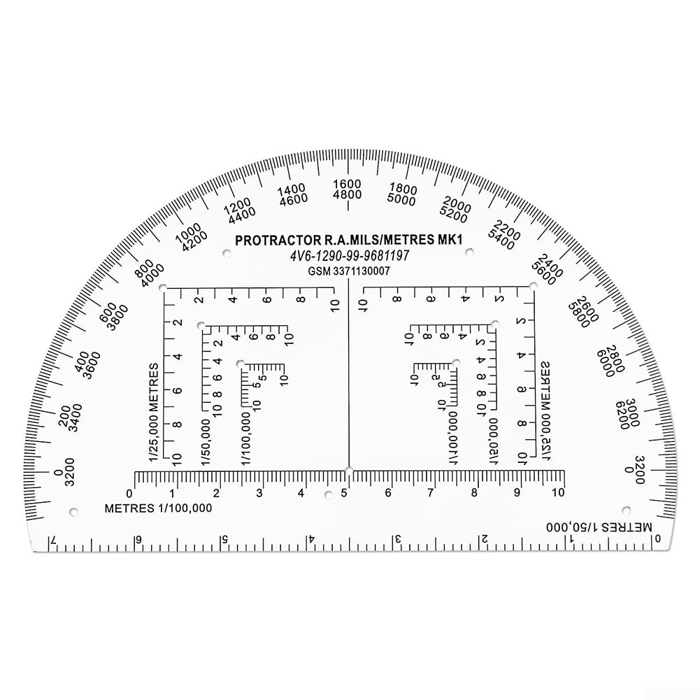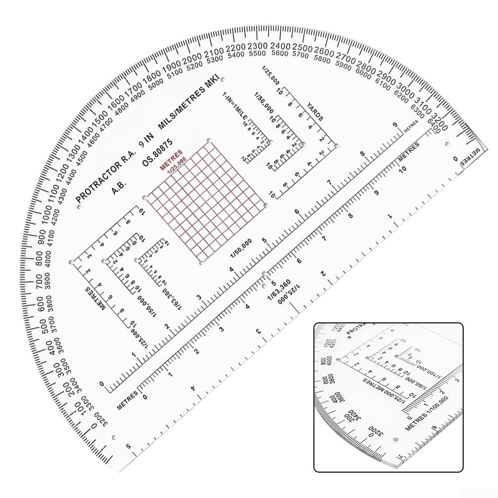 Goniometro trasparente per coordinate, scala da 1 25000 e 3 km, design semicircolare per una facile navigazione su mappe, per allenamento (MP-1)