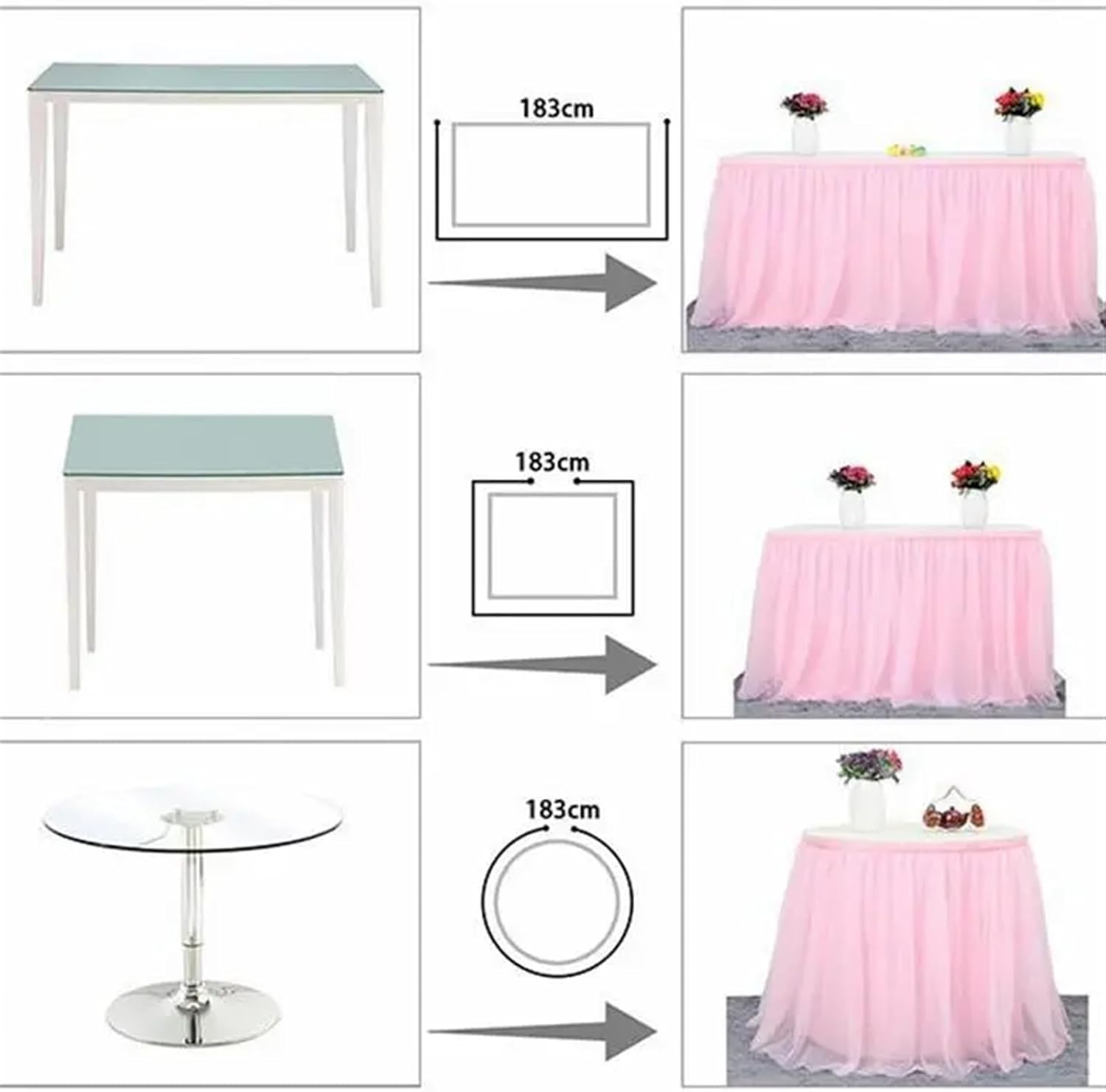 DESIGN ONE PIECE: Questa gonna da tavolo è realizzata con un unico pezzo di tessuto che copre perfettamente il piano e i lati del tavolo. Un look uniforme ed elegante senza la necessità di aggiungere altri accessori TESSUTO MORBIDO E AVVOLGENTE: La gonna da tavolo è realizzata in un materiale liscio e flessibile che si adatta facilmente alla forma del tavolo, creando un effetto ordinato FACILE DA INDOSSARE SUL TAVOLO: Non sono necessari fermagli o strumenti complicati, è sufficiente appoggiare il tavolo in tulle sul tavolo e regolarlo per ottenere immediatamente il look perfetto DESIGN SEMPLICE ED ELEGANTE: Il nostro tavolo in tulle ha un design semplice ma sofisticato, con un'eleganza che non passa inosservata, senza fronzoli o dettagli superflui ADATTO A DIVERSI AMBIENTI: Questo tavolo compleanno in tulle è progettato per adattarsi alla maggior parte dei tavoli rettangolari standard ed è adatto sia per ambienti domestici che professionali. Che stiate preparando una cena in famiglia o una riunione di lavoro, manterrà sempre lo stesso ordine ed eleganza
