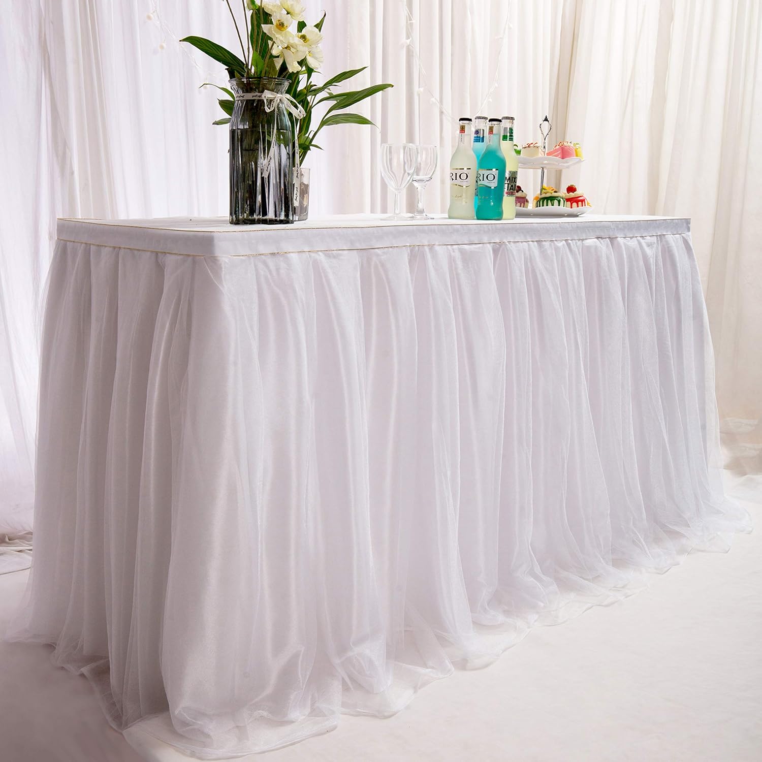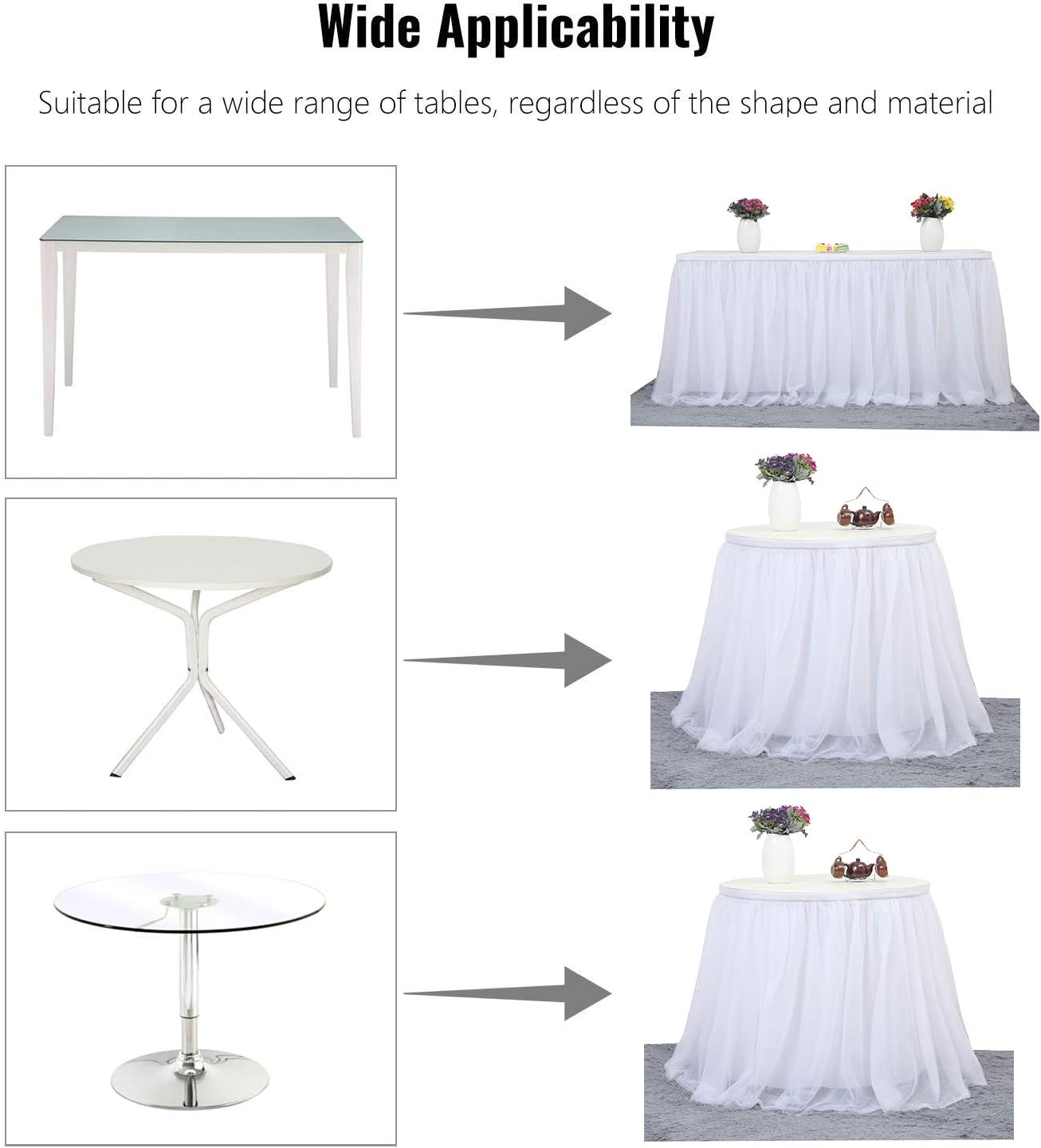 Decorazioni perfette: la gonna da tavolo MYMM Tutu & Wave è la scelta migliore per baby shower, matrimoni, feste di compleanno, riunioni di famiglia, festa della mamma, cerimonie, lauree e così via. Aggiungi ulteriore eleganza al tuo matrimonio o festa. Può essere collegato: decidi il numero di acquisti in base alla lunghezza del tuo tavolo. È così facile collegarli da soli. Basta incollare il bordo della gonna del tavolo allo stesso velcro. Facile da usare e non solo puoi usare il velcro biadesivo per fissarlo al tavolo. Puoi anche allacciarlo direttamente alla vita come una gonna. Economia e bellezza: riutilizzabile, porta uno stato d'animo più aperto e gioioso alle tue prossime occasioni speciali o semplicemente divertiti, aggiungi il tocco perfetto alla tua speciale occasione dannosa. Una piccola piega è normale perché il materiale e il modo di imballaggio lo rendono adatto alla tua mano. Se lo vuoi più morbido e soffice, immergilo semplicemente in acqua, appendilo ad asciugare e poi usalo. Ampiamente usato: Pasqua, Natale o altre occasioni speciali o eventi di festival in casa, interni ed esterni, matrimoni, ristoranti, hotel, tavoli da pranzo, bar, ecc.