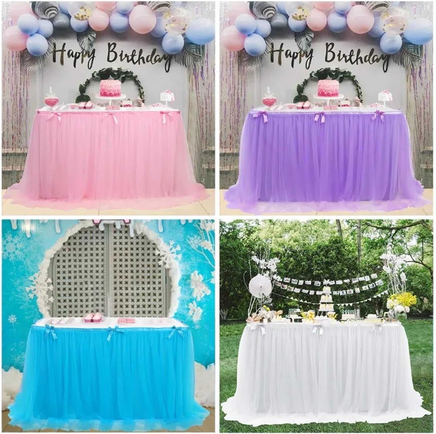 Gonna da tavolo Gonna da tavolo popolare in garza Festa di compleanno Tavolo da dessert di Halloween Gonna da tavolo a pieghe in garza di rete (Rosa,280 cm)