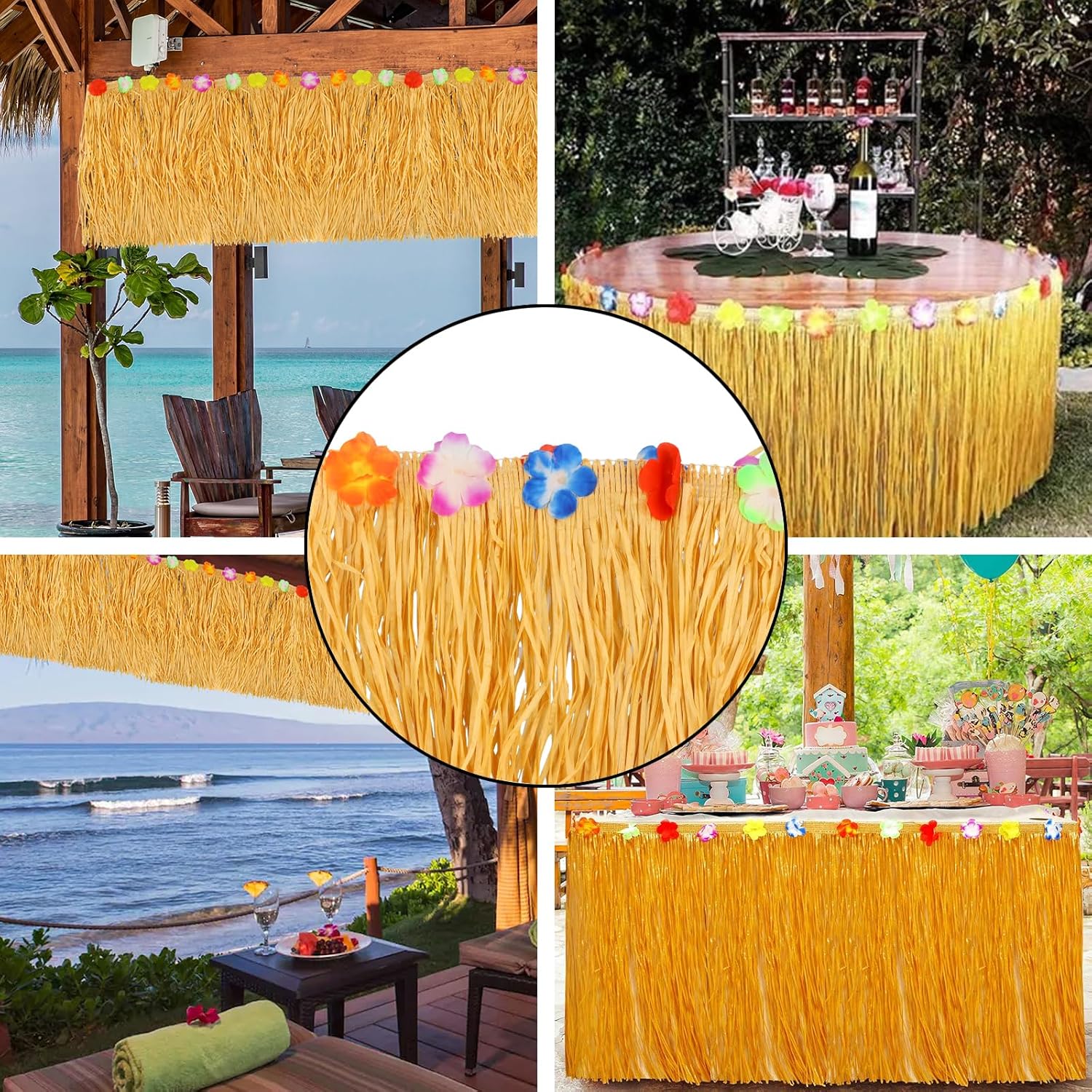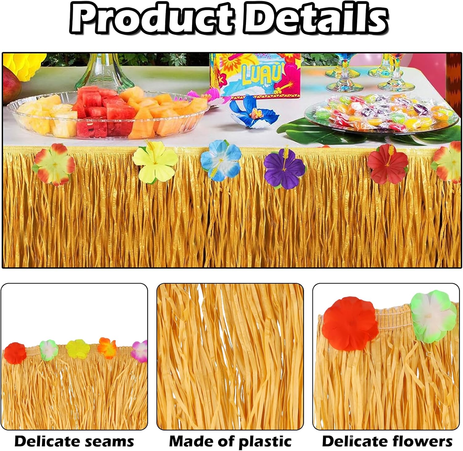 【Universale】Le nostre gonne da tavolo hawaiane misurano 275 x 60 cm, si adattano facilmente a tavoli di tutte le forme e dimensioni. 【Pratico】Le nostre gonne da tavolo hawaiane sono facili da installare. Basta attaccarle attorno al tavolo per ottenere facilmente un abbellimento istantaneo del luogo della festa. 【Qualità Premium】 Queste gonne da tavolo sono realizzate in plastica di alta qualità, garantendo resistenza, impermeabilità e leggerezza, consentendo un uso ripetuto. feste di compleanno