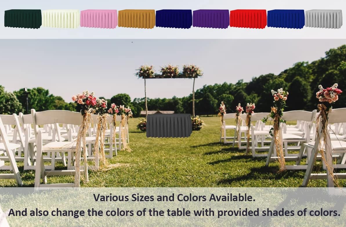 Elegante gonna da tavolo in poliestere: le gonne da tavolo in poliestere sono una scelta popolare per vari eventi e occasioni. Che tu voglia ospitare un evento formale o un evento informale, le gonne da tavolo in poliestere offrono un look elegante e raffinato per i tuoi tavoli. Con la loro versatilità, resistenza e facilità di manutenzione, sono una scelta popolare per aggiungere un tocco di stile e raffinatezza ad ogni occasione. Versatilità: le gonne da tavolo in poliestere sono disponibili in una varietà di colori, così puoi scegliere quella che meglio si adatta al tuo tema o arredamento. Che tu abbia bisogno di una gonna da tavolo vivace e accattivante o di una tonalità discreta e classica, il poliestere offre una varietà di opzioni. Materiale: il poliestere è un tessuto sintetico noto per la sua durata, resistenza alle pieghe e solidità del colore. È una scelta popolare per le gonne da tavolo perché è facile da mantenere e curare. Le gonne da tavolo in poliestere hanno spesso pieghe o volant che aggiungono un tocco elegante e decorativo. MULTIUSO: Le gonne da tavolo in poliestere sono comunemente utilizzate per matrimoni, banchetti, fiere, conferenze, feste e altre occasioni speciali. Possono trasformare tavoli semplici in eleganti punti focali, nascondere gambe o ripiani antiestetici sottostanti e conferire al tavolo un aspetto coeso. Facile da pulire: le gonne da tavolo in poliestere sono generalmente lavabili in lavatrice, il che le rende facili da pulire dopo l'uso. Sono anche resistenti alle rughe, facendoti risparmiare tempo e fatica nel mantenerne l'aspetto. Il poliestere è noto per la sua resistenza e durata, rendendo le gonne da tavolo in poliestere un'opzione di lunga durata.