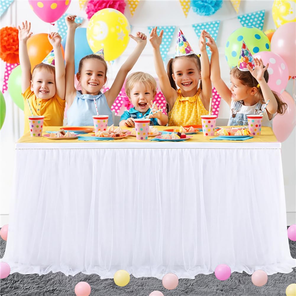 Gonna da tavolo in tulle - Decorazione da tavola per matrimonio, compleanno, San Valentino, Natale, festa, bar Materiale: nylon di alta qualità, senza rughe, più morbido al tatto, facile da maneggiare, con fodera antirughe e sembra più elegante e bello. Dimensioni: gonna da tavolo in tulle 183 x 77 cm, 9 gambe = 275 x 77 cm, 14 gambe = 4,27 m × 0,77 m a scelta. Si prega di misurare le dimensioni della tavola prima dell'acquisto e scegliere la dimensione e la quantità corrette. Elegante e romantica: la gonna da tavolo crea un'atmosfera nobile e lussuosa per la tua occasione speciale, dona un'atmosfera illuminante e più gioiosa alle tue prossime occasioni speciali o semplicemente all'intrattenimento quotidiano. Facile da usare: quando ricevi il grembiule da tavolo, ti bastano pochi minuti per installarlo, strappa il velcro e attacca il lato adesivo al bordo del tavolo, un altro lato per fissare il grembiule da tavolo, il grembiule da tavolo sarà saldamente attaccato al tavolo.