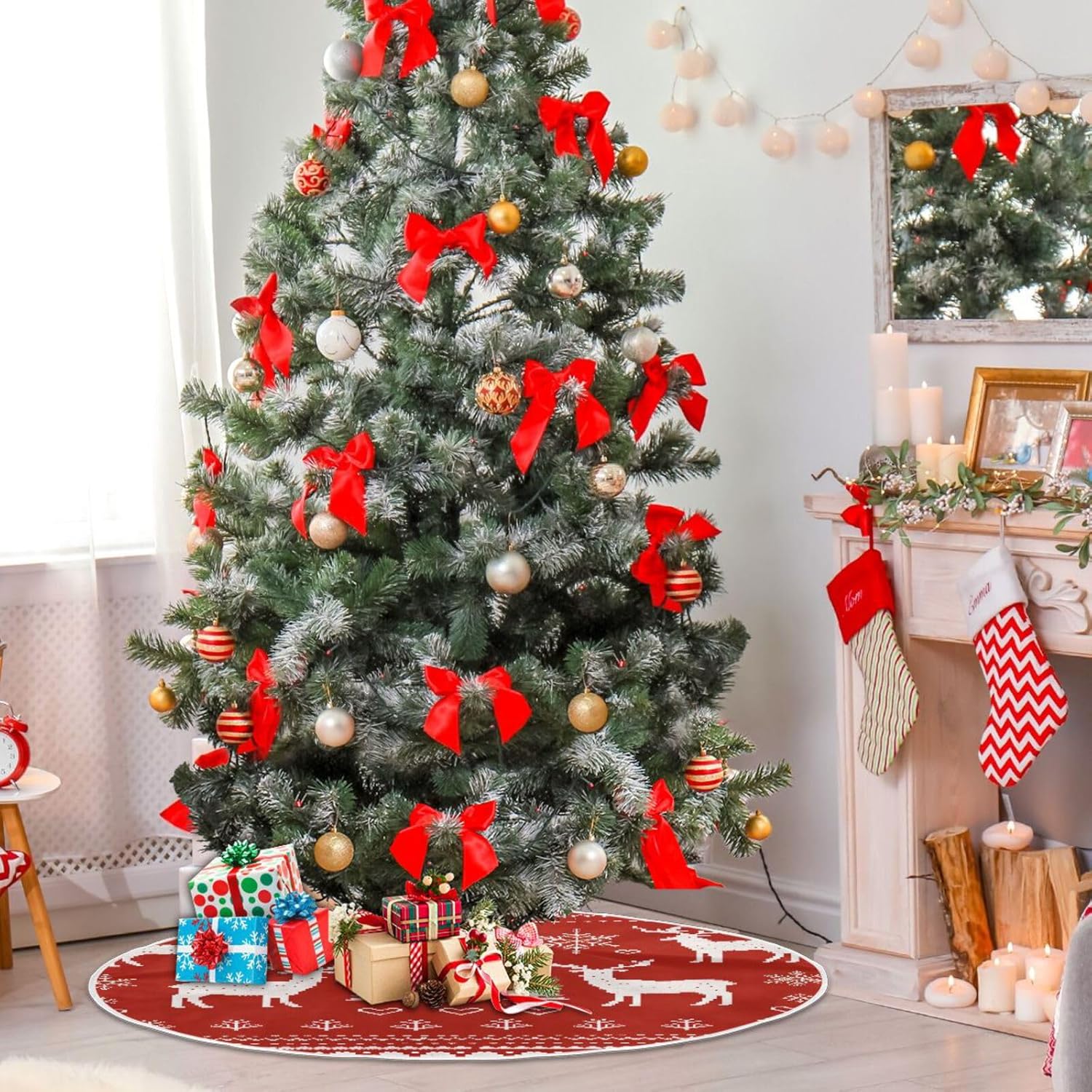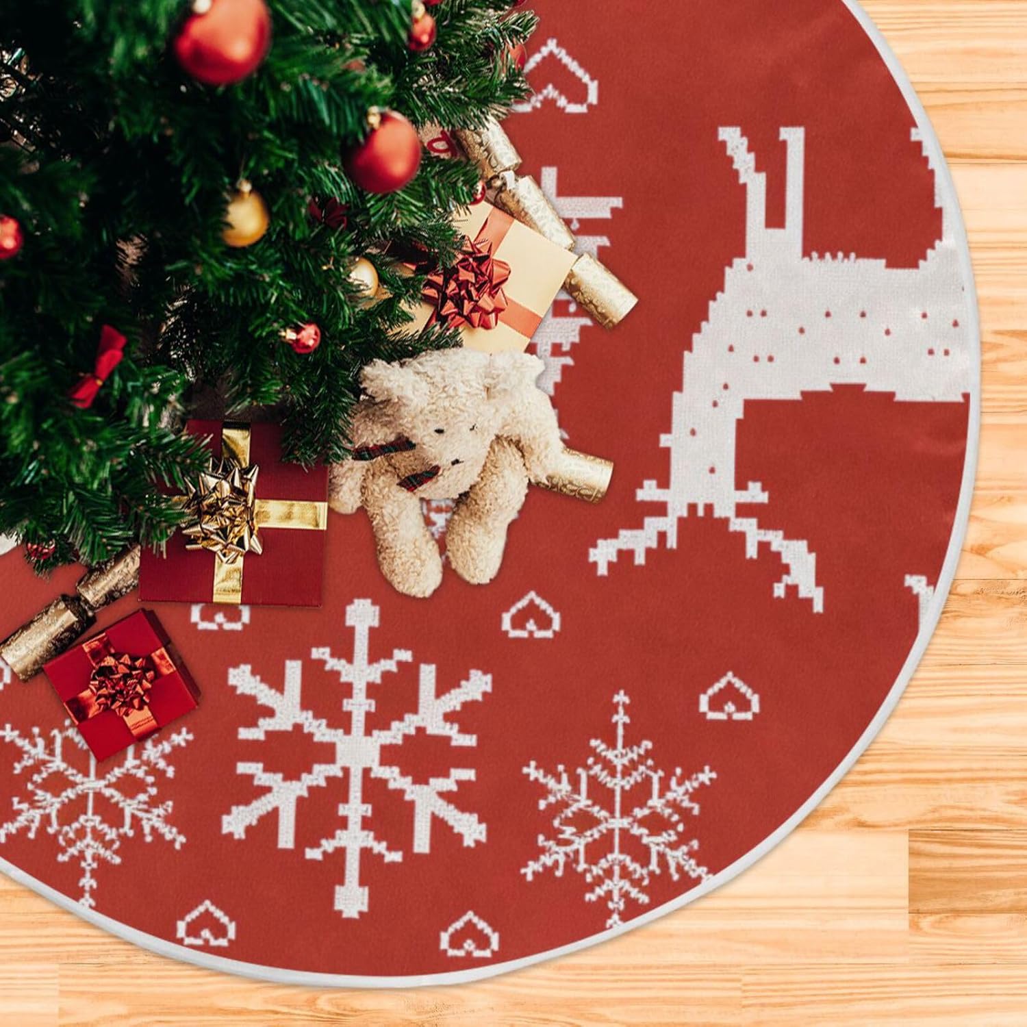 Dimensioni: 36", 48" Se le gonne per alberi sottili presentano problemi di qualità con la gonna per albero di Natale, contattaci immediatamente. 【Materiale】Le gonne per alberi sottili sono realizzate in tessuto di poliestere, che non fa pieghe e facile da riporre. Queste gonne per alberi sono squisitamente realizzate con bordi delicati che non si staccano facilmente. Protegge la tua casa: aggiunge decorazioni nascondendo i supporti degli alberi poco attraenti. Le decorazioni dell'albero di Natale proteggono anche il tappeto dagli aghi degli alberi. Una gonna per albero può aiutarti a mantenere pulita la tua casa raccogliendo gli aghi che cadono da un vero albero di pino, che saranno invariabilmente sparsi per tutta la casa se non catturati e raccolti correttamente. Facile da installare: design aperto, facile da installare, gonna per albero decorazione natalizia con 3 cinturini. Le chiusure in velcro sono orlate sul bordo della gonna dell'albero, facili da fissare. Puoi mettere gli ornamenti che ti piacciono sulla gonna dell'albero per ottenere più decorazioni natalizie. Ottimo regalo di Natale: questa bellissima decorazione rustica per l'albero di Natale è un bel regalo di Natale per la tua famiglia e i tuoi amici. Aggiungi un forte fascino natalizio al tuo albero di Natale, porta una calda atmosfera vacanziera a casa tua.