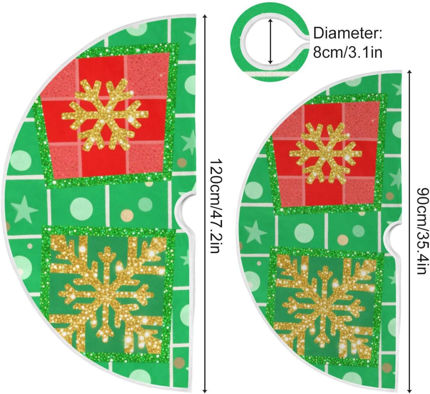 Dimensioni: 36", 48" Se la decorazione natalizia della gonna per albero di Natale è un problema di qualità con la gonna per albero di Natale, contattaci immediatamente. Materiale: la gonna dell'albero di Natale è realizzata in pregiato materiale di poliestere, decorata con una varietà di motivi di diverse dimensioni e leggera, puoi posizionarla in qualsiasi posizione, il design di diverse dimensioni rende la gonna dell'albero di Natale più colorata e unica. MANTIENI IL PAVIMENTO PULITO E ORDINATO - Questa decorazione natalizia per la gonna dell'albero funge da raccoglitore per gli aghi di pino o gli ornamenti caduti, protegge anche il tappeto dagli aghi degli alberi. Facile da usare: il design di apertura è facile da installare, le decorazioni natalizie della gonna dell'albero possono essere aperte o chiuse grazie a tre fasce magiche invisibili che ne facilitano l'uso. La coperta si fissa facilmente senza doversi piegare per legare più cavi. Facile da usare, facile da attaccare, facile da pulire, lavabile in lavatrice. Occasione della gonna dell'albero: perfetta per casa, ufficio, festa, scuola, negozio, all'aperto, ecc. Decorazione natalizia della gonna dell'albero. Una meravigliosa decorazione per Natale, compleanno, vacanze, anniversario o matrimonio. Tutti li adorano.