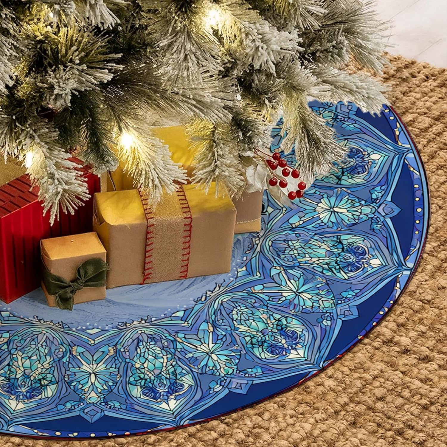 Materiale e struttura: realizzato in tessuto dalla consistenza morbida che completerà le decorazioni delle tue vacanze fornendo allo stesso tempo un'atmosfera accogliente sotto l'albero. Facile da pulire: questa gonna per albero è lavabile in lavatrice per una pulizia senza problemi. Basta metterlo in lavatrice ed evitare la candeggina per mantenerlo fresco. 【Decorazione e atmosfera natalizia】 Infondi la tua casa con lo spirito natalizio, crea un'atmosfera festosa che accoglie la famiglia e gli amici durante il periodo natalizio. 【Pratico e facile da usare】 Dispone di tre punti di attacco per la cinghia per un posizionamento sicuro attorno all'albero, rendendo l'installazione semplice e veloce durante la raccolta dei rami caduti. 【Versatilità e regalo】Perfetta per vari scenari di vacanza, questa gonna per albero è anche un regalo meraviglioso che aggiungerà fascino a qualsiasi festa di Natale.