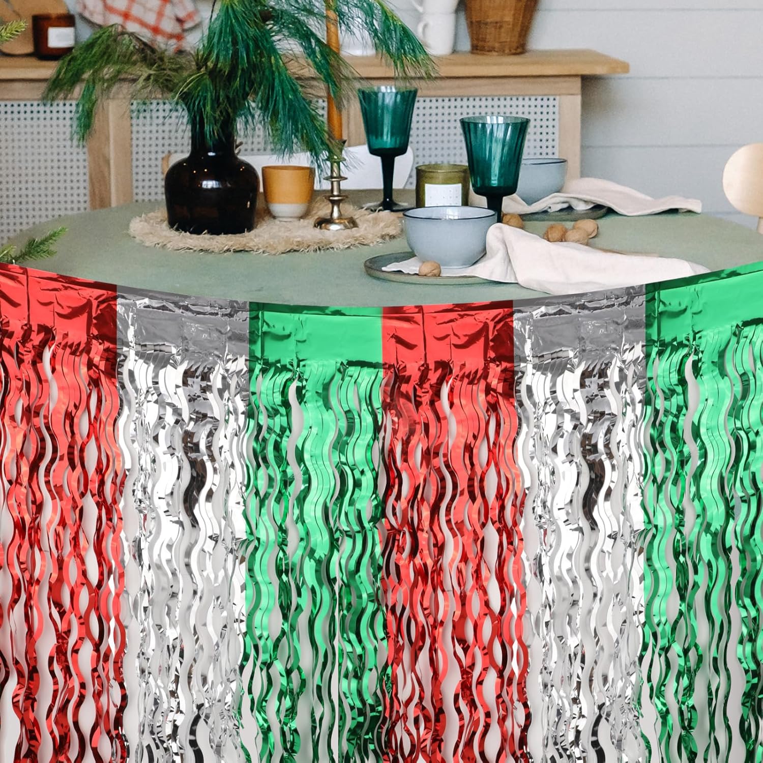Contenuto della confezione: riceverai 2 pezzi di gonna da tavolo natalizia. Ogni pezzo viene fornito con 3 colori, tra cui rosso, verde e argento. Una quantità sufficiente soddisferà le tue esigenze di decorazione della tavola di Natale. Materiale premium: le nostre decorazioni per gonne da tavolo sono realizzate in un foglio di alluminio, che è luminoso, affidabile, durevole e non facile da sbiadire. Aggiungere un'atmosfera forte alla tua vacanza. Materiale del prodotto: la dimensione di ciascuna gonna da tavolo con frange è di circa 275x75 cm. È abbastanza grande per decorare i vostri tavoli rettangolari o rotondi. Si prega di controllare attentamente questa dimensione prima dell'acquisto. Facile da usare: queste gonne da tavolo ghirlanda sono progettate con strisce autoadesive, quindi puoi attaccarle facilmente sui tuoi tavoli. Questo processo di installazione non richiederà molto tempo. Ampia applicazione: queste gonne da tavolo sono molto festive. Sono molto adatti per la tua festa di Natale, festa di compleanno, festa di Capodanno, addio al celibato, festa di laurea, ecc. Creando una scena indimenticabile per te.