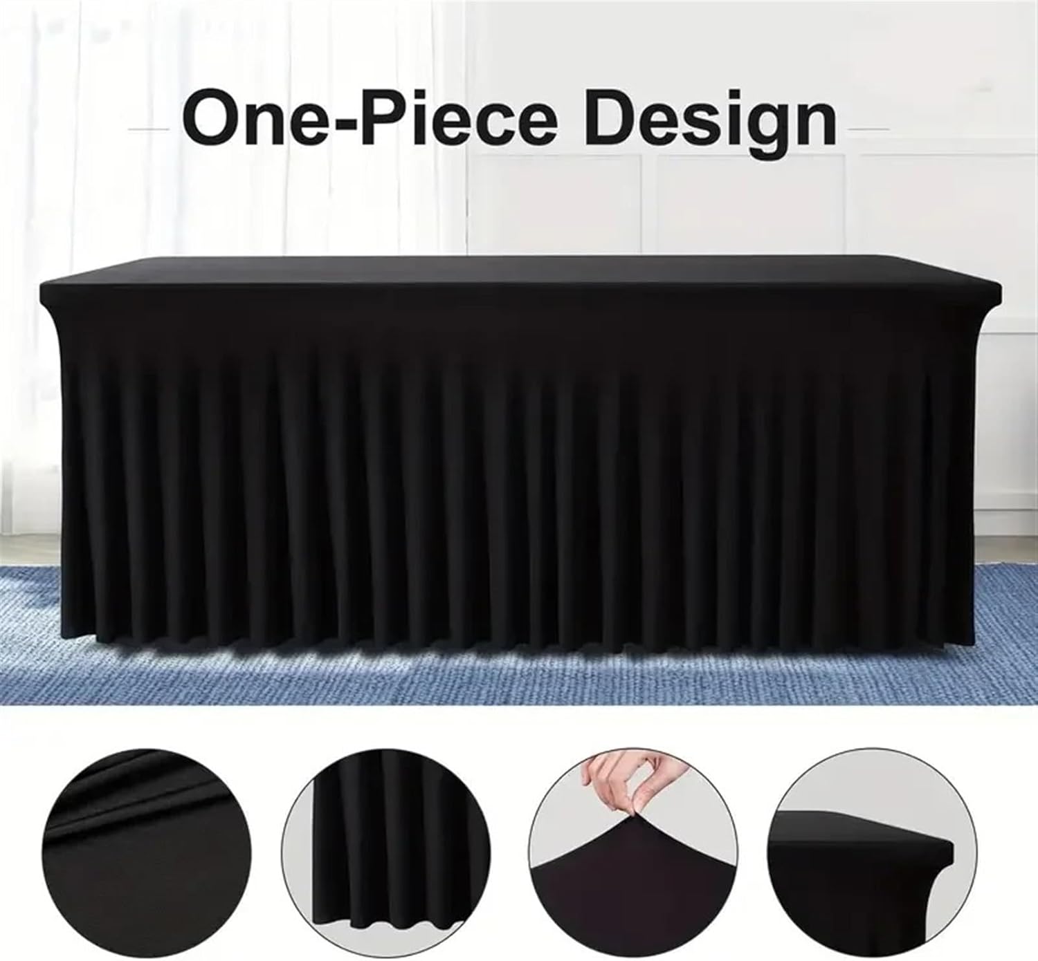 Gonne da Tavolo rettangolari, copritavoli in Poliestere, tovaglia Nera for Tavolo da 6 Piedi con Gonna, copritavolo in Spandex per la Festa(Black)