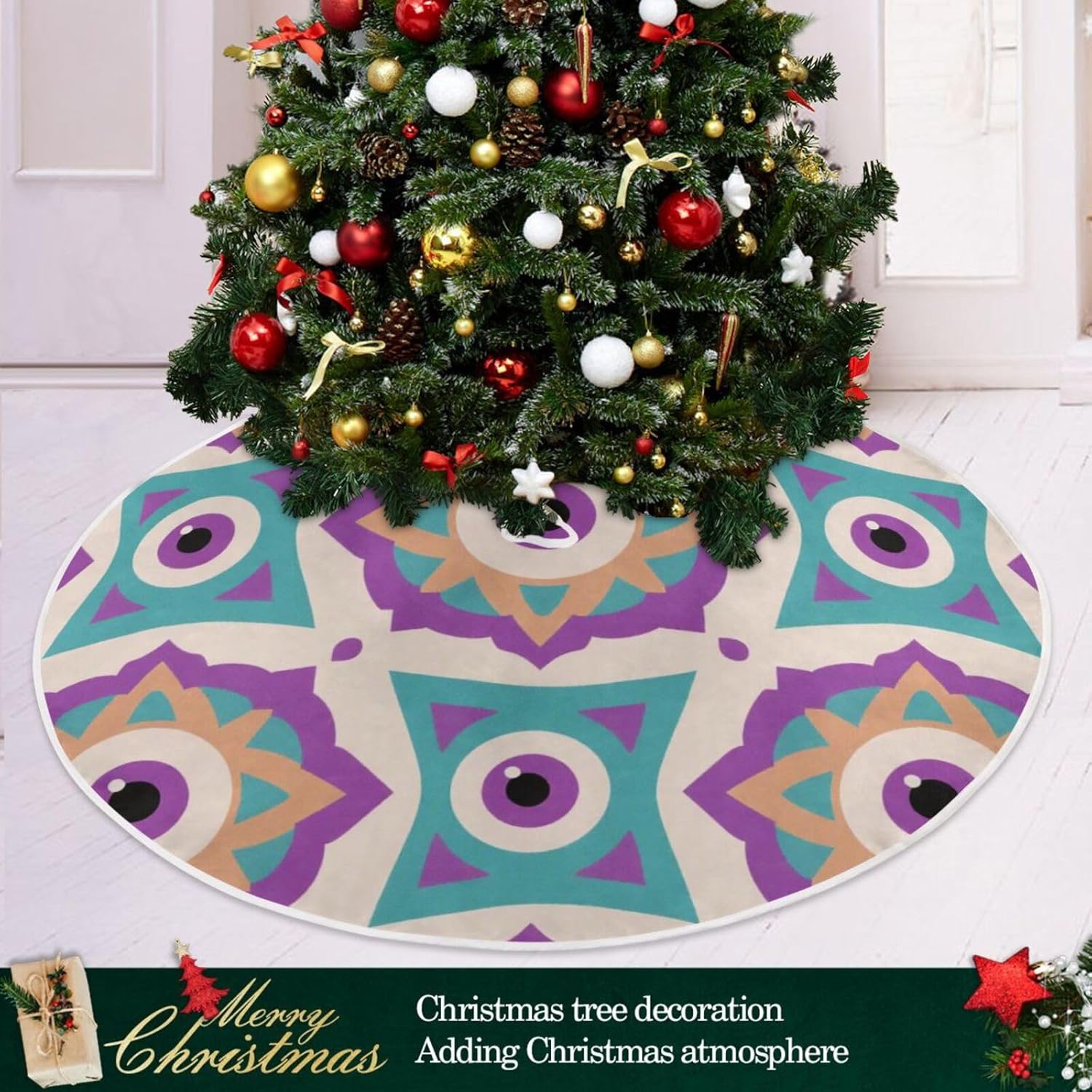 Due misure tra cui scegliere: la gonna grande per albero di Natale è di 120 cm, la gonna piccola per albero di Natale è di 90 cm. Materiale: la gonna dell'albero di Natale è realizzata in pregiato materiale di poliestere, decorata con una varietà di motivi di diverse dimensioni e leggera, puoi posizionarla in qualsiasi posizione. Il design di diverse dimensioni rende la gonna dell'albero di Natale più colorata e unica. Il design elegante con un design minimalista rende la decorazione natalizia della gonna dell'albero e la tua casa più elegante ed estetica. Aggiungi più atmosfera vacanziera alla tua casa. Facile da installare: design aperto, facile da installare, gonna per albero di Natale con 3 cinturini. Le chiusure in velcro sono orlate sul bordo della gonna dell'albero, facili da fissare. Puoi mettere gli ornamenti che ti piacciono sulla gonna dell'albero per ottenere più decorazioni natalizie. MULTIUSO: per le decorazioni dell'albero di Natale a casa, a scuola, in negozio, in ufficio, in hotel, al supermercato, ecc. Puoi acquistare gonne per alberi sottili come regalo perfetto per la tua famiglia o usarle per decorare il tuo Natale.