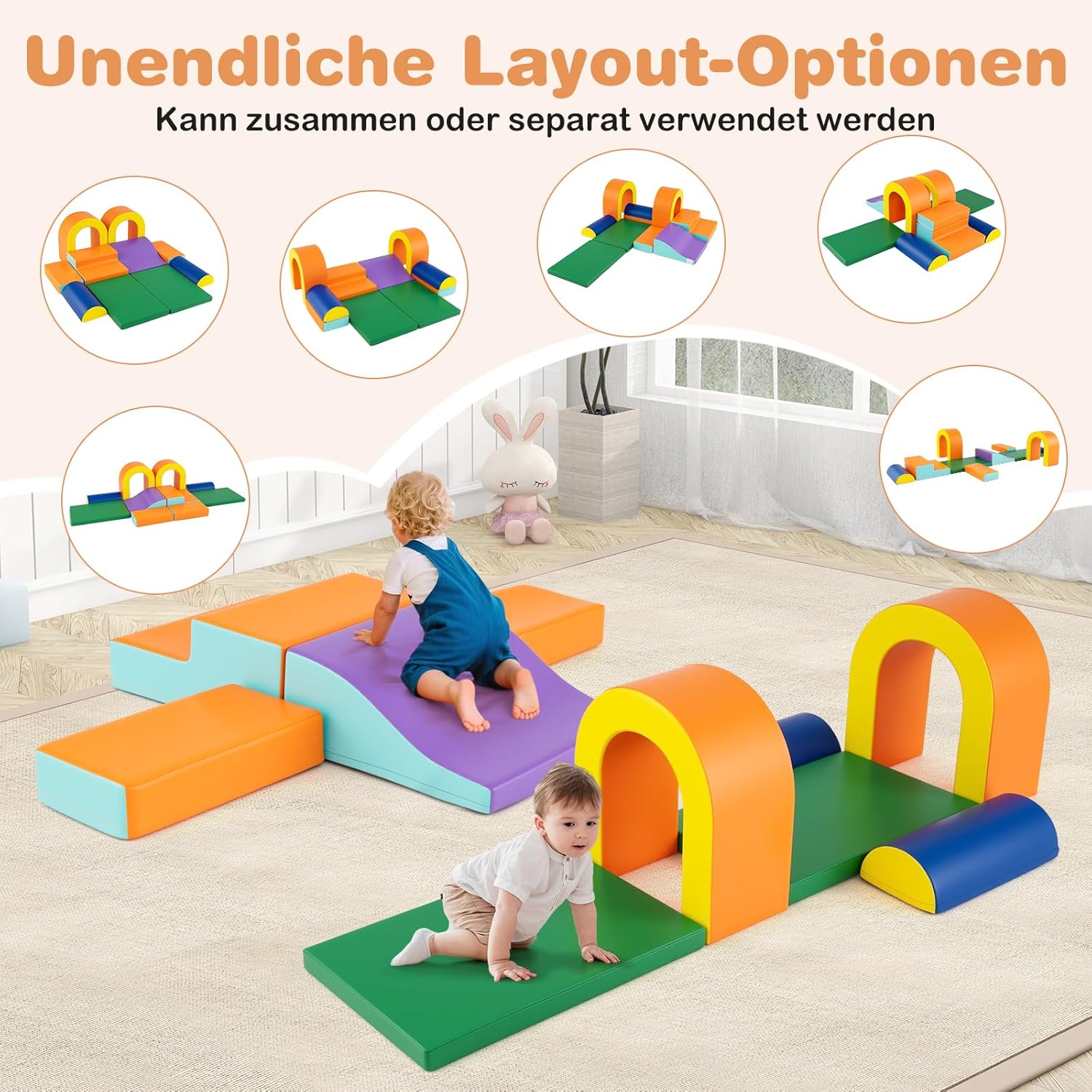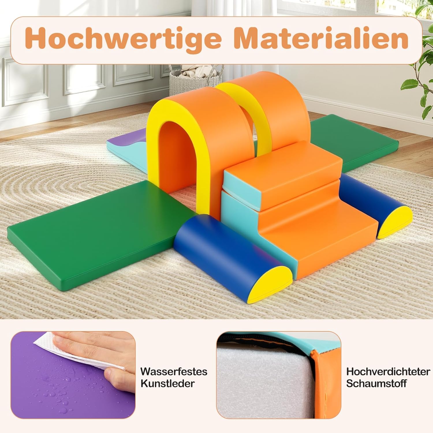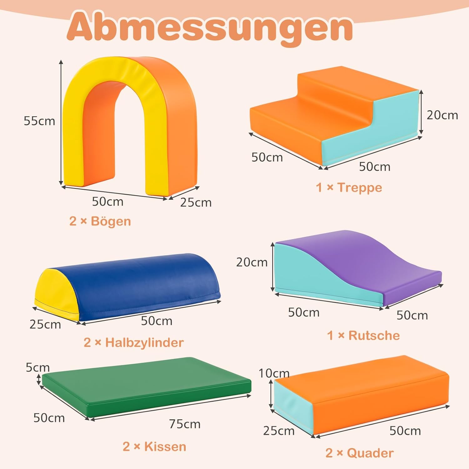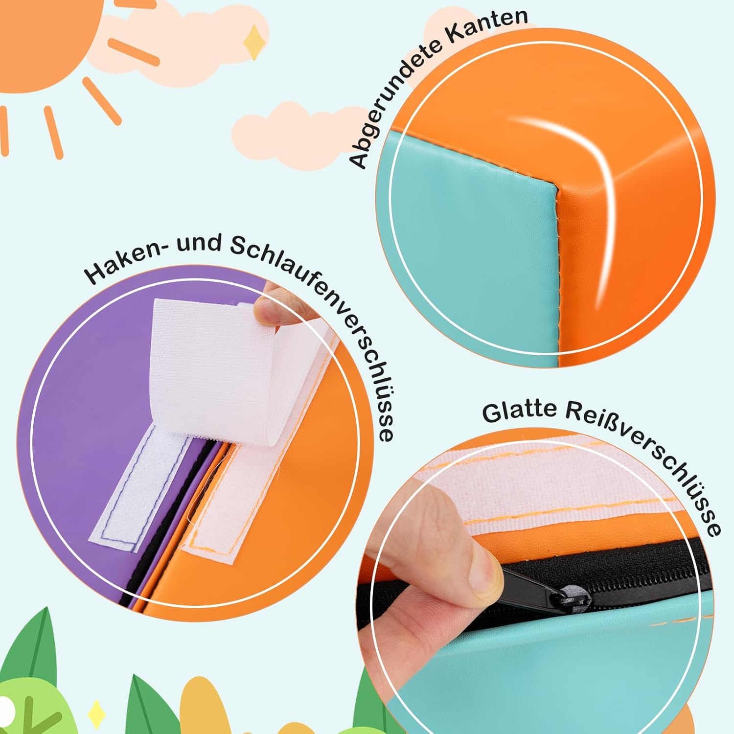 Divertenti giocattoli per i più piccoli: questo set di blocchi da arrampicata funge da giocattolo da compagnia per i bambini da 1 anno in su per aiutarli a gattonare e arrampicarsi. È progettato per sviluppare le capacità motorie, l'immaginazione, la creatività, il riconoscimento dei colori e la coordinazione fisica dei bambini. COMBINAZIONI GRATUITE: I nostri mattoncini in schiuma includono 10 pezzi, inclusi 2 archi, 2 rettangoli grandi, 2 rettangoli piccoli, 2 blocchi mezzo cilindro, 1 blocco scala e 1 blocco inclinato ondulato, che forniscono combinazioni diverse per un divertimento ancora maggiore. Sicurezza garantita: questi morbidi elementi costitutivi sono imbottiti con schiuma EPE ad alta densità, che fornisce un supporto eccellente e riduce l'impatto durante i salti. Gli angoli arrotondati prevengono lesioni accidentali e le cuciture rinforzate garantiscono la massima sicurezza per il tuo bambino. Aspetto accattivante: caratterizzato da colori vivaci, questo gigantesco set di mattoncini può attirare immediatamente l'attenzione ed è un'aggiunta perfetta ai parchi giochi per bambini. È adatto a vari interni come soggiorno, camera dei bambini, sala giochi, asilo nido, ecc. Facile da riporre: questi mattoncini pesano solo 7 kg in totale, quindi i bambini possono trasformarli senza sforzo. Grazie al design impilabile, i blocchi possono essere facilmente riposti nell'armadio quando non vengono utilizzati.