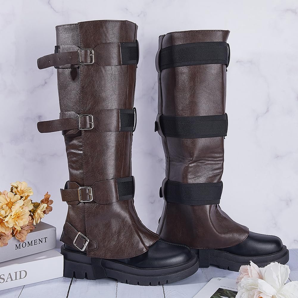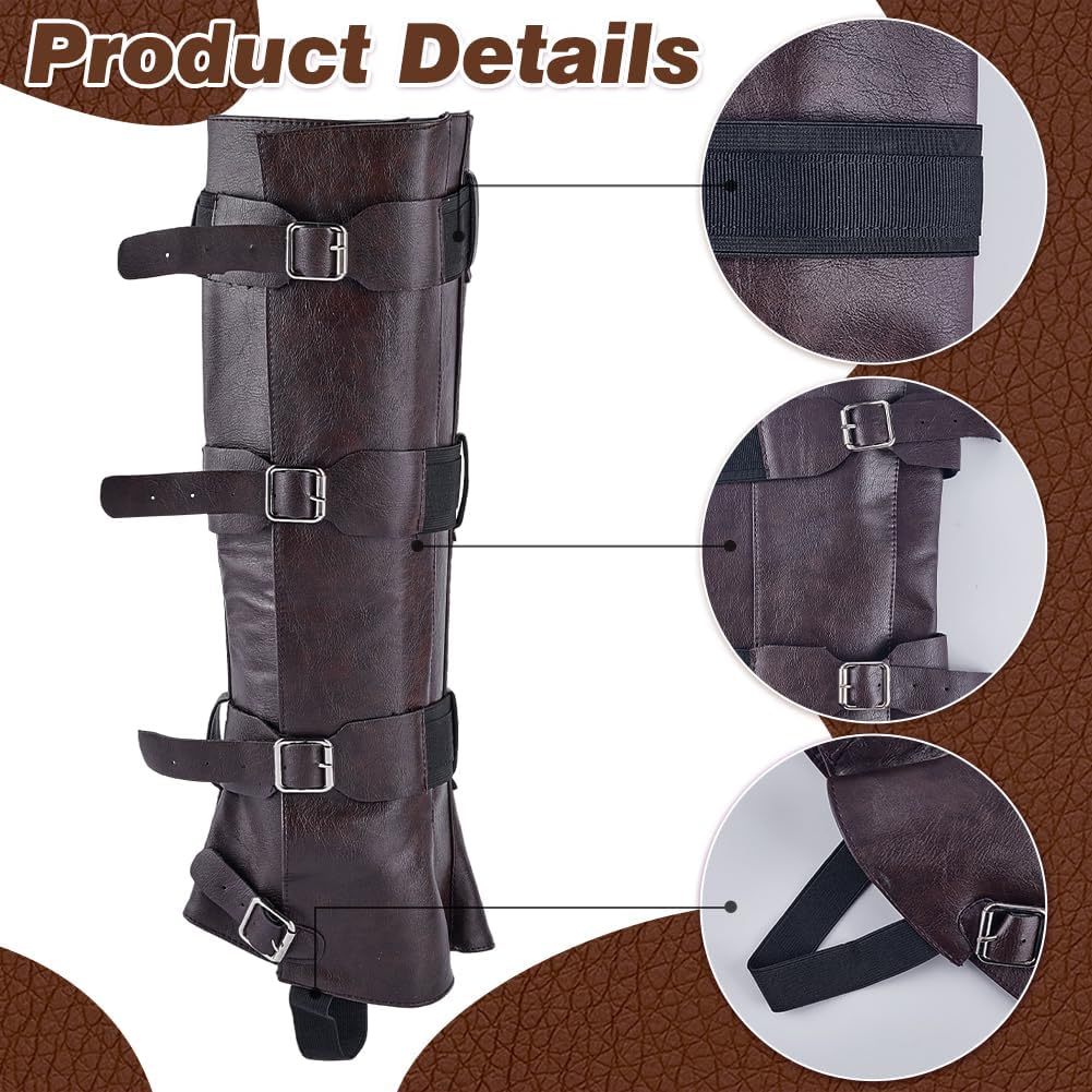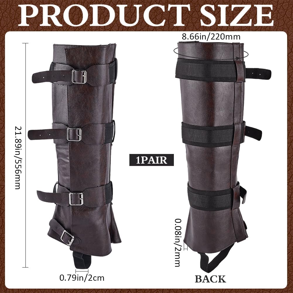 2 COPRISTIVALI MEDIEVALI:include 2 copristivali in similpelle, dimensioni circa 21.89x8.66x0.08 pollice/55.6x22cmx2mm, adatto alla maggior parte delle gambe degli uomini e delle donne. PELLE FINTA DI ALTA QUALITÀ:la protezione per le gambe medievale color cocco è realizzata in similpelle di qualità, forte e durevole, comodo e leggero, può fornire la migliore protezione per la parte inferiore della gamba, non fornisce impatti esterni e abrasioni durante le attività. TAGLIA REGOLABILE:le fibbie regolabili sulle protezioni degli stivali consentono una vestibilità personalizzata, assicurando una presa sicura attorno alle gambe, offrendo flessibilità e facilità di movimento. C'è una cinghia con fibbia sotto le scarpe per aiutare a mantenere l'accessorio in posizione. DESIGN RETRO:i copristivali in similpelle hanno un forte aspetto medievale o rinascimentale, l'aspetto punk aggiunge un tocco molto accattivante e sembra più un cavaliere, cacciatore, soldato o guerriero, rendi i tuoi costumi più attraenti AMPIA APPLICAZIONE:i copriscarpe medievali sono unisex e possono essere abbinati a qualsiasi abbigliamento retrò, adatto per feste in maschera, feste di Halloween, clubwear, bar, fiera rinascimentale, evento cosplay, oggetti di scena teatrali, produzione teatrale, eventi di fantasia, fiera rinascimentale, riunioni di famiglia e vita quotidiana, ti aiuta a diventare una stella splendente nel gioco di ruolo dal vivo.