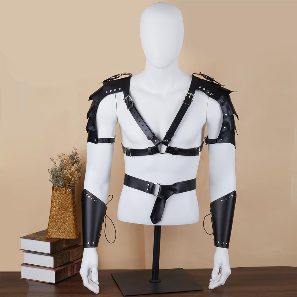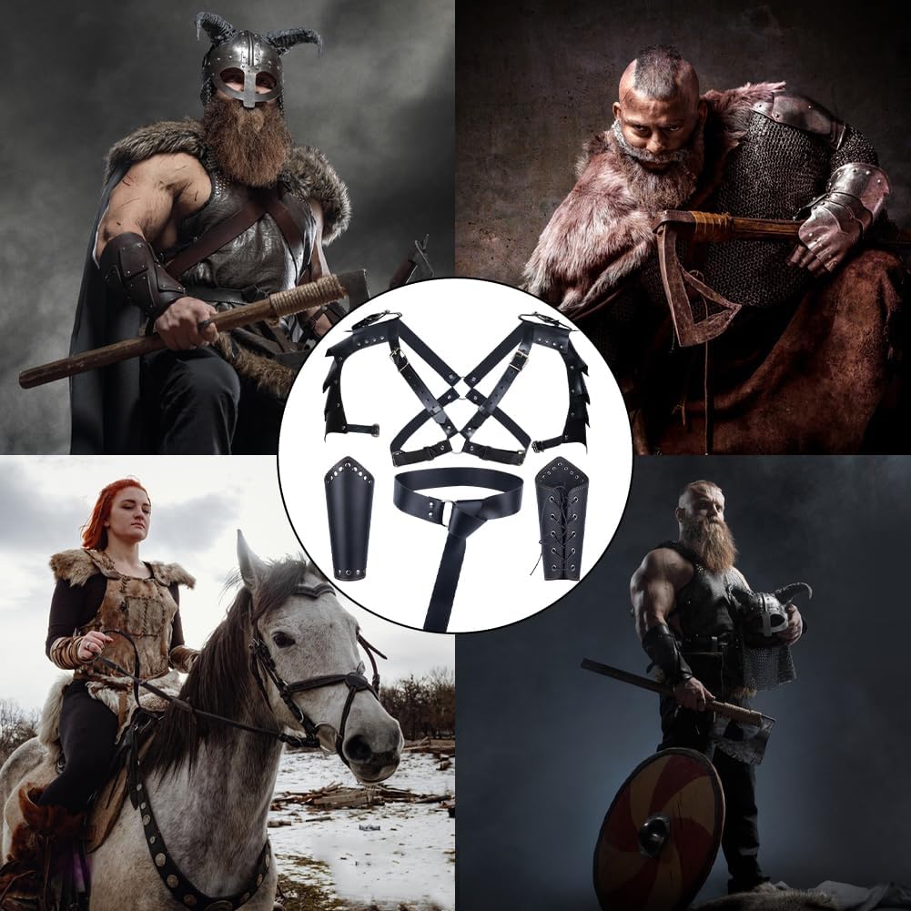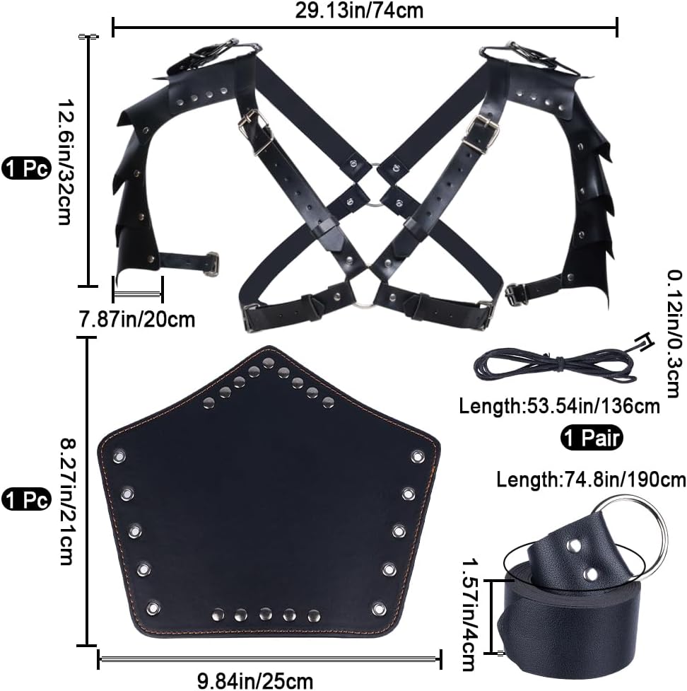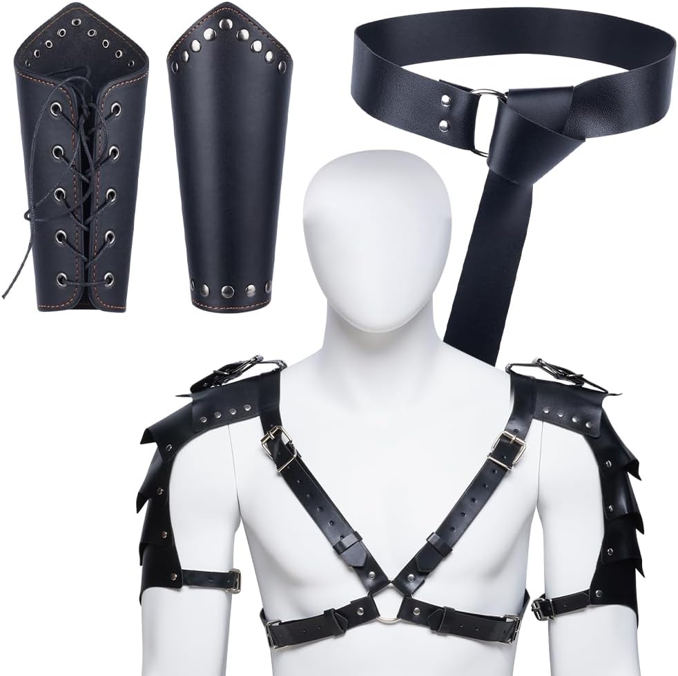 IL PACCHETTO INCLUDE: 2 tutore per il braccio in pelle + armatura per la spalla 1 pezzi + cintura regolabile 1 pezzi, totale 4 pezzo in nero, perfetto set di accessori per vestire steampunk. COSTUME COSPLAY MEDIEVALE: il kit di protezione per il braccio medievale e cintura per armatura punk per le spalle hanno un design retrò, sembra chic e bello. Aggiunge un senso di eroismo, facendoti sembrare un gladiatore, soldato o guerriero, abbina diversi stili di vestiti, compresi i costumi, costume medievale, o come oggetti di scena teatrali. DIMENSIONE REGOLABILE: il cinturino in pelle progettato con 5 foro in metallo su ciascun lato del bordo, con cordoncino abbinato per regolare la taglia fino a adattarla al braccio. L'armatura per le spalle con imbracatura toracica con cinturini con fibbia regolabili, la dimensione della schiena e delle spalle può essere regolata, e la tenuta può essere regolata in base alla forma del tuo corpo per adattarsi al tuo corpo. Dimensioni universali per adattarsi a uomini e donne MATERIALI DI QUALITÀ: realizzati in pelle PU e lega di alta qualità, morbido e comodo da indossare. Materiale resistente e non facile da staccare, inossidabile, può essere riutilizzato per il prossimo Halloween o una festa di cosplay AMPIE APPLICAZIONI: gli oggetti di scena in costume rinascimentale medievale possono abbinarsi al set di costumi medievali in molte occasioni. Può essere utilizzato per eventi fantasy, feste di matrimonio medievali, Feste a tema vichingo, mostre di animazione, e feste di ruolo di Halloween, vestito operato, spettacoli, dramma, mascherate, eccetera.