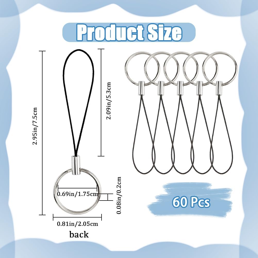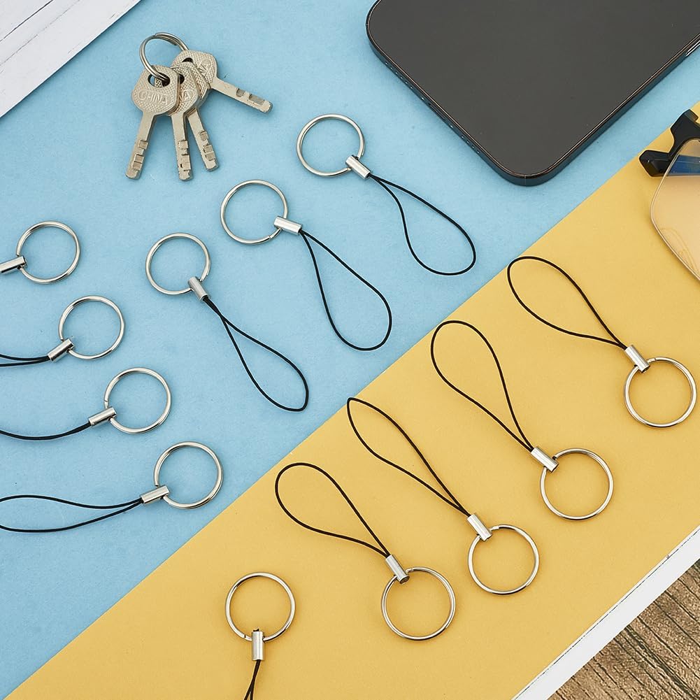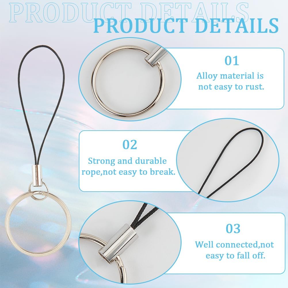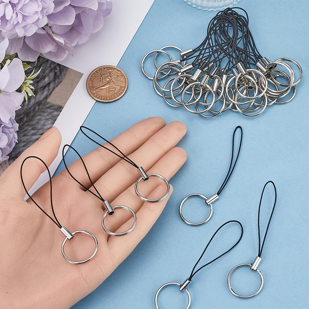 Cinturini per telefono da 60 pezzo: viene fornito con cinturino per ciondolo per telefono da 60 pezzi, anelli d'argento, cinghie nere, puoi mettere i tuoi ciondoli preferiti, decorare i tuoi telefoni. Riferimento alle dimensioni: il cinturino del portachiavi del telefono è lungo circa 2.95" (7.5 cm)., anello: 0.69" (1.75 cm) diametro interno, lunghezza del filo: 2.09" (5.3 cm). Alta qualità: il cinturino portachiavi in corda è realizzato in poliestere di qualità, durevole e robusto, lavabile e facile da pulire, con anelli di ferro, difficile da arrugginire, può sostenere l'uso a lungo termine. Facile da usare: la stringa di ciondoli del telefono può connettersi facilmente al telefono, mantieni il tuo telefono al sicuro e a portata di mano, applicato con anelli di scorrimento, evitare di perdere il telefono, chiavi, o altri ciondoli. Uso multiplo: gli anelli divisi possono essere utilizzati per contenere accessori elettronici leggeri, come chiavetta USB, giocatore, telefono cellulare, Carta d'identità, macchina fotografica, luci flash, cinturini con charm per cellulare, portachiavi, cartellino del nome, decorazione per gioielli fatti a mano.