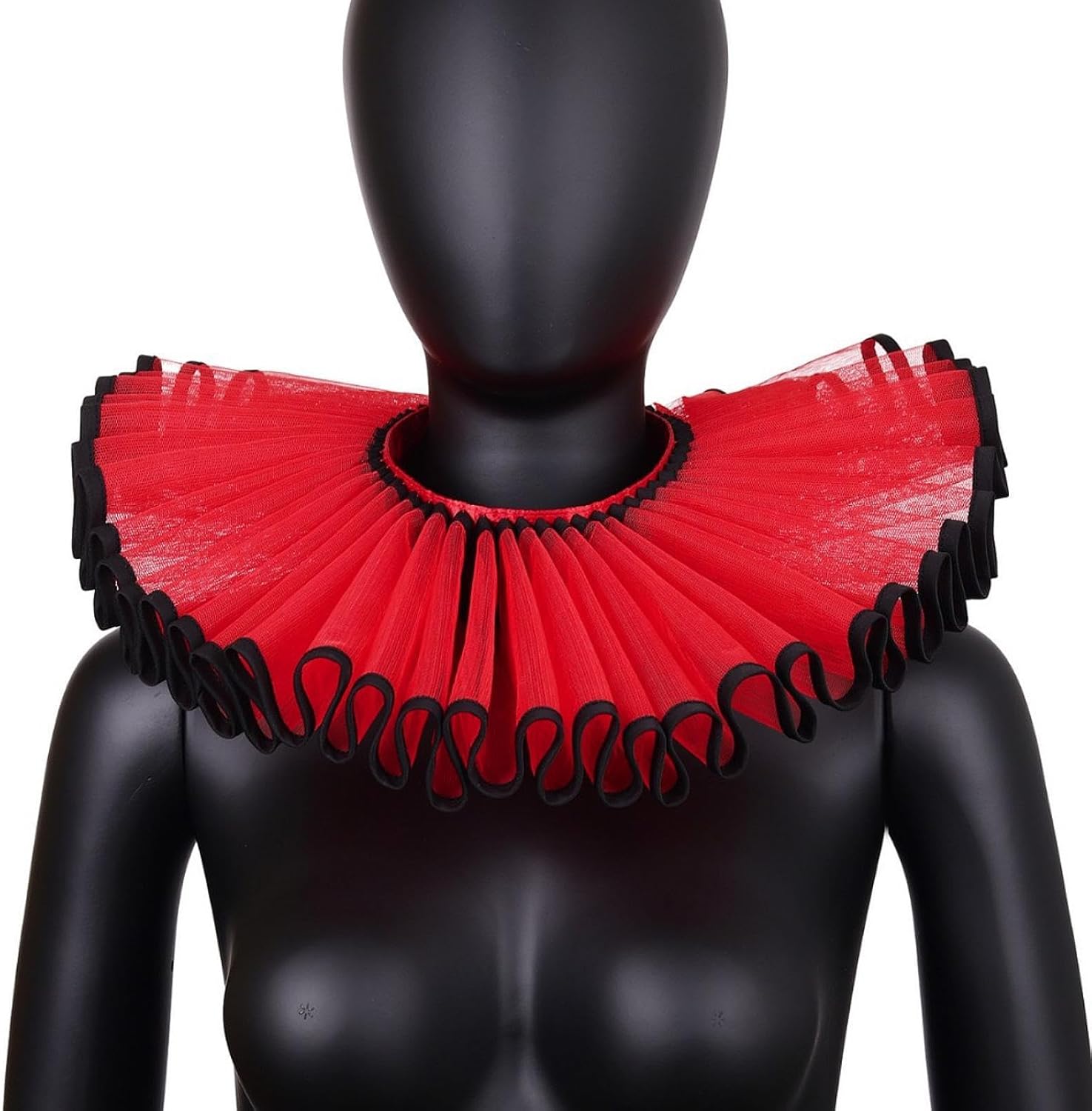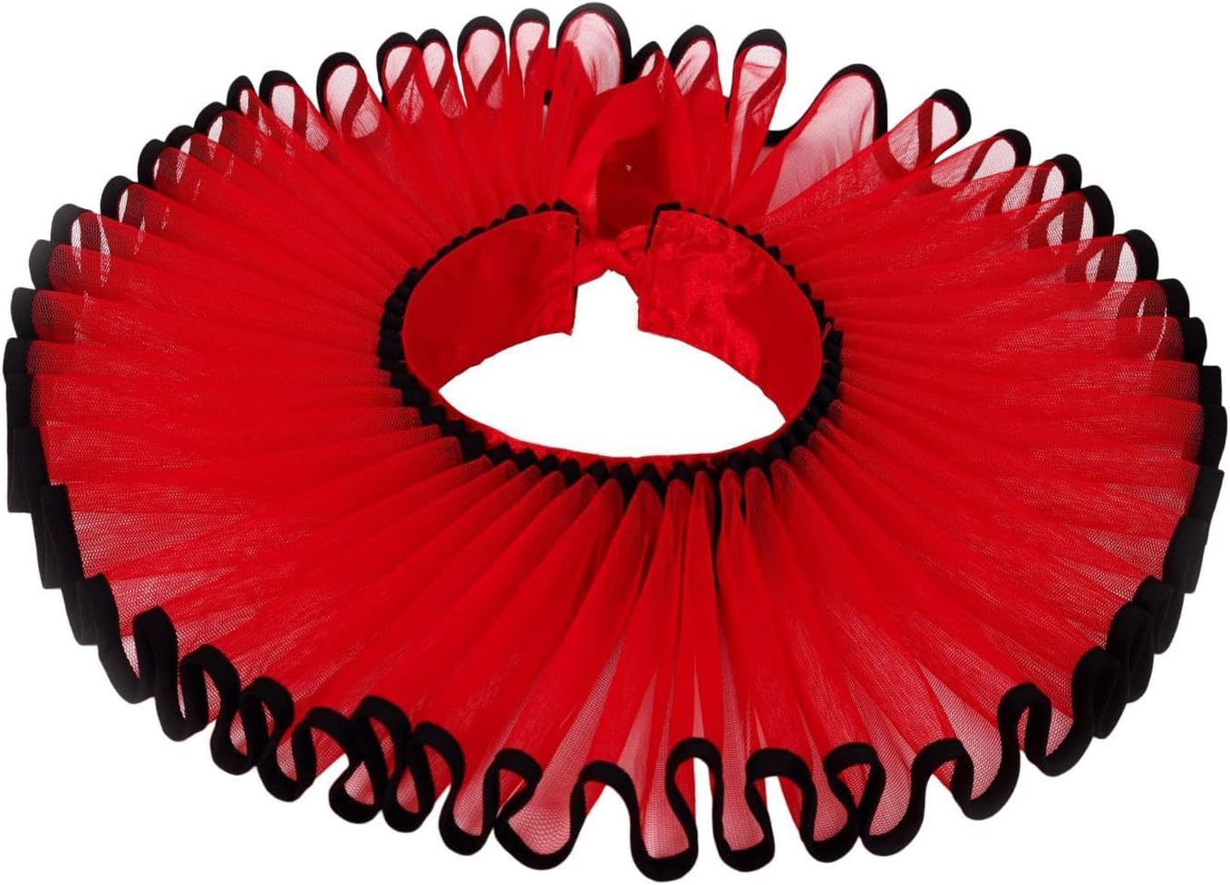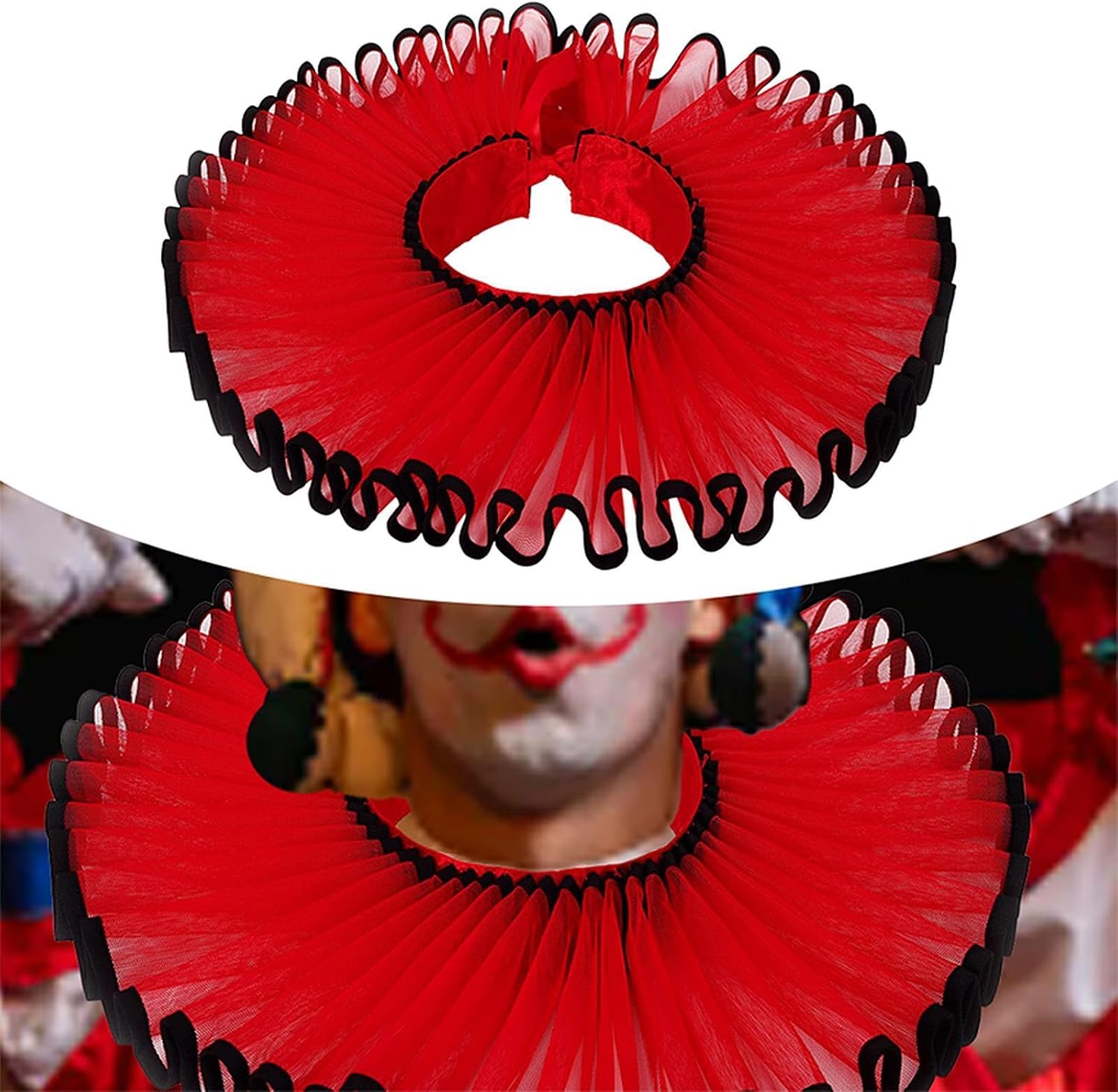 Accessorio versatile per costumi: questo colletto arricciato staccabile aggiunge un tocco di stile vintage e raffinato al tuo costume. Ideale per abiti , ruoli da clown da o spettacoli teatrali. Ampia applicazione: i collari da clown con collo a balza sono ideali per valorizzare costumi elisabettiani, abiti, abiti rococò, abiti , costumi teatrali, abiti gotici Facile da usare: staccabile Ruffle Clown Neck consente un'applicazione e una rimozione rapide, rendendo comodo passare da un look o costume all'altro senza sforzo Materiale: realizzato in tessuto, questo collare per il collo garantisce comfort e longevità, rendendolo un'aggiunta affidabile al tuo guardaroba di costumi Dimensioni: con volant è progettato con una circonferenza del collo di 38 cm e un'altezza di 5 cm, questo collare elisabettiano offre una vestibilità aderente ma comoda per la maggior parte delle persone che lo indossano.