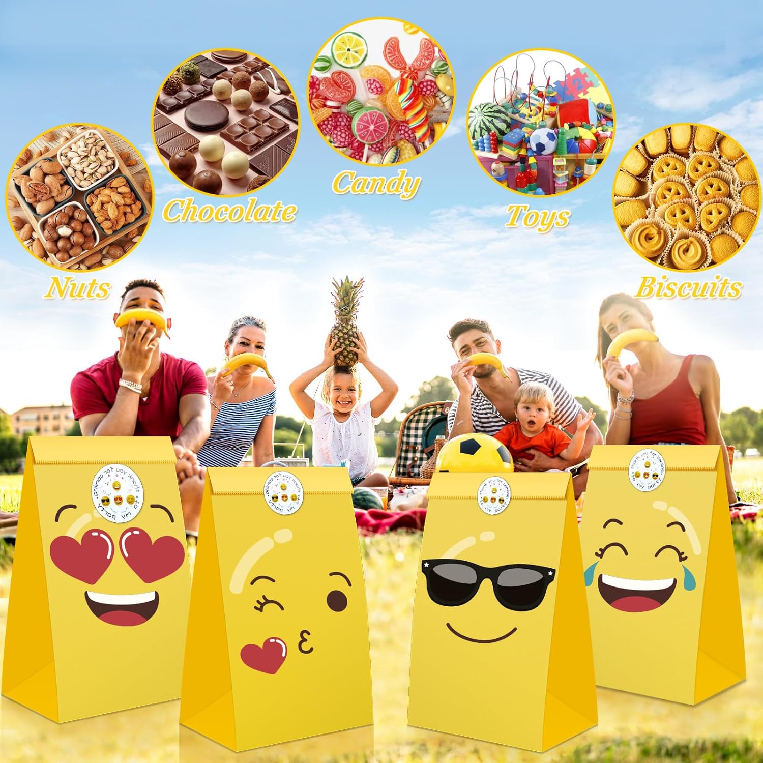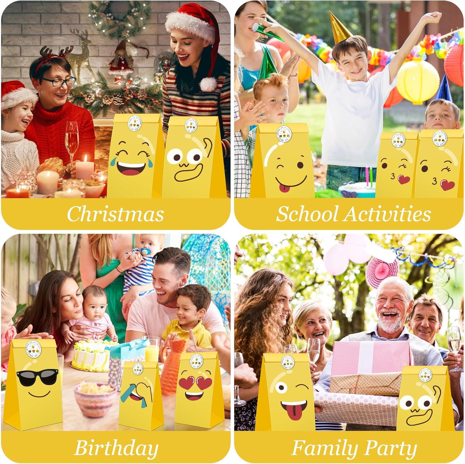 Sacchetto regalo con espressioni dei cartoni animati: riceverai 16 sacchetti regalo con 8 diverse espressioni dei cartoni animati, abbinati a 16 adesivi con espressioni dei cartoni animati, che misurano 22 x 12 x 8 cm. Questi graziosi sacchetti di carta aggiungono una personalità vibrante al tuo regalo. Design multipli di emoticon: il nostro sacchetto di carta per emoticon combina vari disegni di emoticon carini e interessanti, abbinati a adesivi carini unici che misurano 3,5 cm e misurano con capacità adesiva e aggiungi vitalità e personalità ai tuoi regali e attività Materiale di alta qualità: i nostri sacchetti di carta per emoticon sono realizzati in carta kraft ecologica e sostenibile, progettati e realizzati con cura per garantire qualità e durata del prodotto. Il fondo del sacchetto di carta è piatto, può stare in posizione verticale, ha uno spessore moderato e non è facile da rompere. Design raffinato: prestiamo attenzione ad ogni dettaglio per garantire gli standard di progettazione dei sacchetti di carta dei cartoni animati e ogni emoticon è luminosa e chiara, non facile da sbiadire o usurarsi. Il design rinforzato sul fondo e sui lati rende il sacchetto di carta più stabile e può trasportare i tuoi oggetti in sicurezza. Applicazione multi scenario: i nostri sacchetti di carta a fumetti sono adatti a diverse occasioni. Non solo può essere utilizzato per confezioni regalo, ma può anche svolgere un ruolo intelligente nella pubblicità commerciale. Perfetto come regalo di compleanno, regalo di laurea, baby shower, borsa della spesa, ecc.