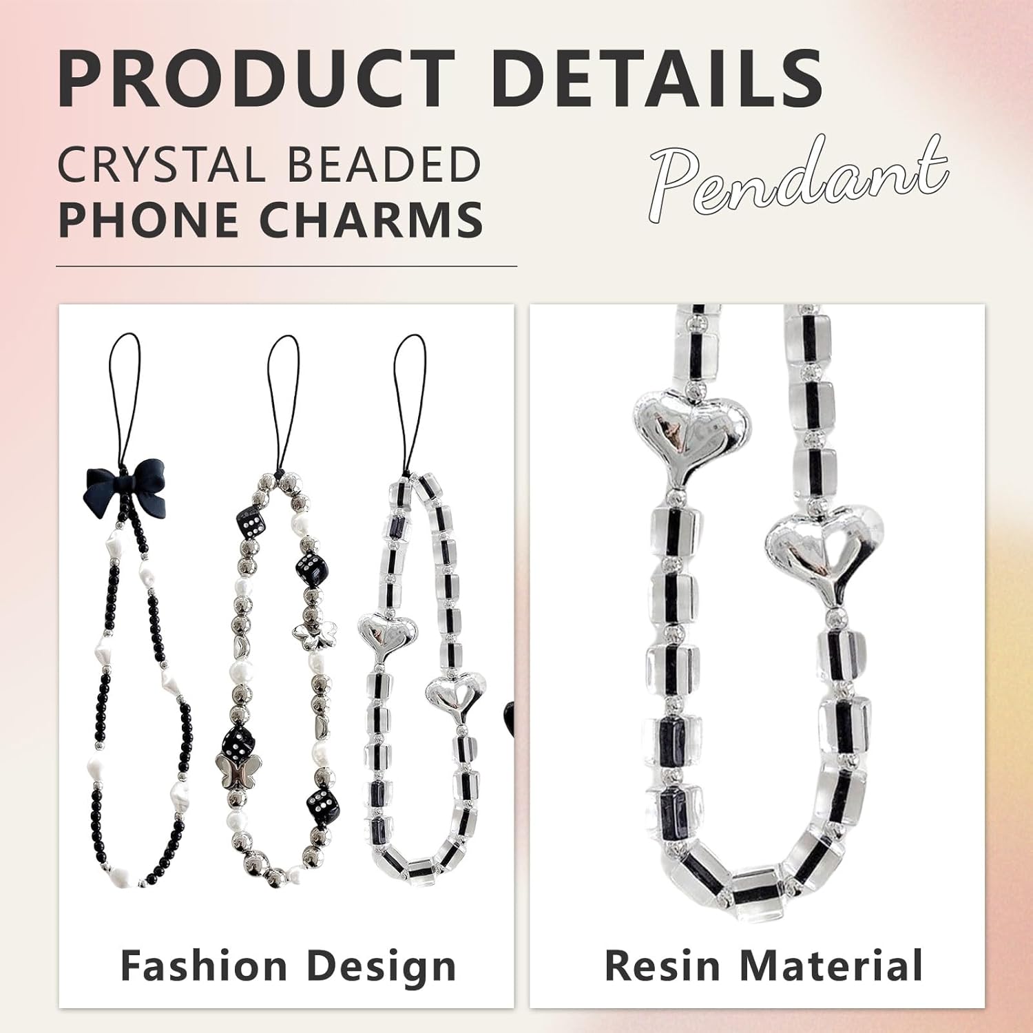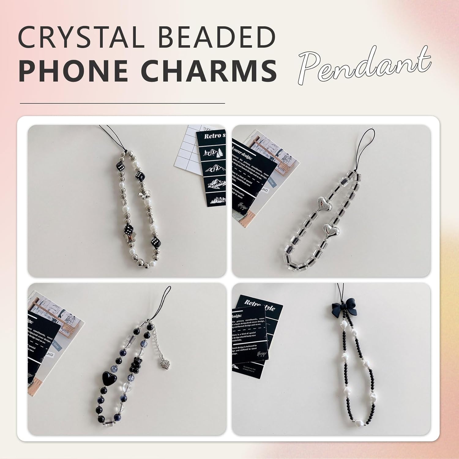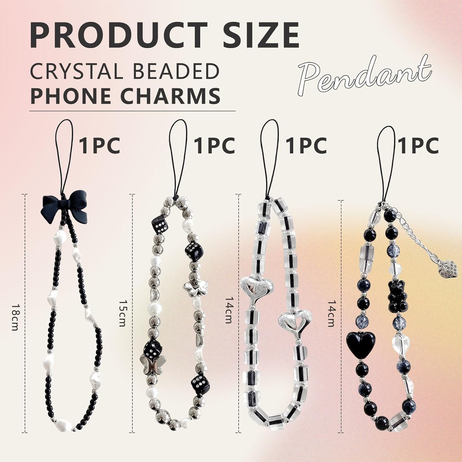 These beads on the phone charms are such good quality and also feel heavy in a good way. The string is durable and in a fixed shape. The main colour is black and comes with 4.