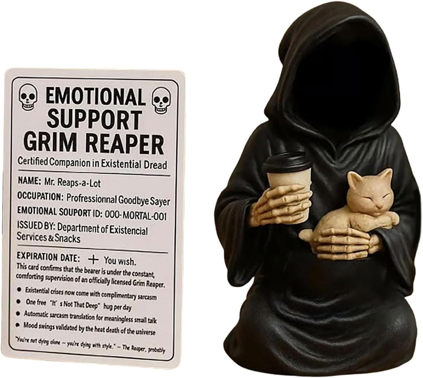 Disegni per gli amanti e i proprietari di gatti di Goth Subcultures che ironicamente apprezzano emotivamente l'arte fantasy oscura e la casa non convenzionale Con la qualità delle resine di qualità dettagliata, questa figura macabra ma mostra una statua della morte, una tazza di caffè e un pisolino in un unico pezzo, Goth Shelf Decors può mostrare pezzi Aumenta scrivanie da ufficio, mensole della camera da letto o display di Halloween, con questa conversazione che inizia la scultura delle resine Questa figura da collezione ha una miscela unica di fascino morboso e calda assurdità e fornisce rassicurazione sarcastica per le paure moderne, mentre si raddoppia come grandi decori gotici Offri un mix di umorismo oscuro e comfort emotivo con questa scultura dalle resine, offri una morte e un pisolino per gli appassionati di Goth Decors e i sonnellini