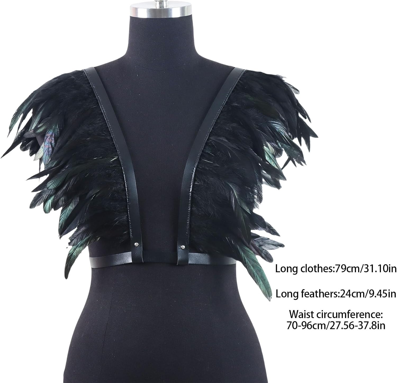 Gotik - Coprispalle con piume, scialle da strega, cosplay, costumi medievali per Halloween, carnevale, feste, spettacoli teatrali Caratteristiche: Quantità: 1 coprispalle in pizzo con mantello piumato da donna. Regolabile e facile da indossare, ti fa sembrare molto alla moda ed elegante, vestibilità molto comoda quando indossi intorno alle spalle Lussuoso strato piumato, molto più bello e grassoccio. Lo scialle del mantello piumato è per Halloween, costume cosplay, feste punk, feste da campeggio, costume da diavolo, costume da strega, mantello da regina malvagia, costume da club, Natale, Pasqua, Capodanno, spettacoli di danza, feste in maschera, riunioni vintage, cocktail serali, sfilate, carnevale, spettacoli gotik. Meraviglioso regalo, dolce amico familiare e te stesso. Specifiche tecniche: Materiali: PU + piuma. Dimensioni: lunghezza: 79 cm, lunghezza piuma: 24 cm, vita: 70-96 cm. La confezione include: 1 scialle medievale con piume. Nota: Considerare un margine di errore di 1-2 cm dovuto alla misurazione manuale. A causa delle differenze tra i diversi monitor, l'immagine potrebbe non rispecchiare il colore reale dell'articolo.