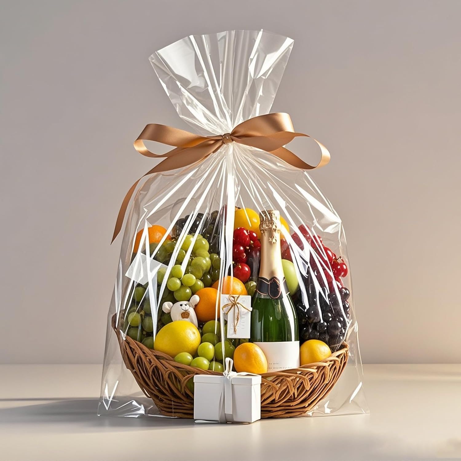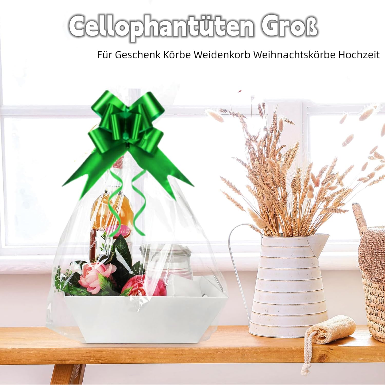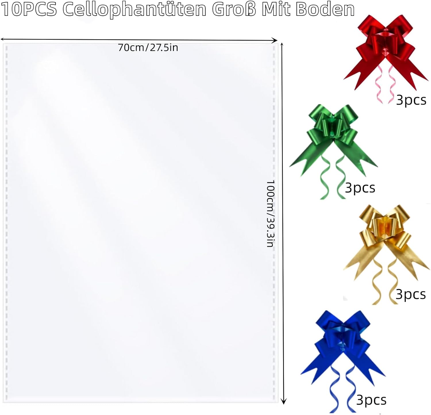 ❀ [La confezione include] Riceverai 10 grandi sacchetti di cellophane trasparente e 16 grandi fiocchi da tirare. Questi sacchetti regalo e fiocchi in cellophane si adattano alle tue esigenze e ai tuoi temi regalo personalizzati. ❀ [Grandi dimensioni] Ogni sacchetto di cellophane trasparente misura 70 * 100 cm / 27,5 * 39,3 pollici, con fiocchi in 5 colori, aggiungendo un tocco festoso e personalizzato ai tuoi regali. ❀ [Materiale Premium] I nostri sacchetti per cestini regalo sono realizzati in OPP di qualità, inodore e non tossico, durevole e resistente allo strappo. Sono un must per le famiglie e le riunioni nella vita quotidiana. ❀ [Facile da usare] I nostri grandi sacchetti di cellophane rendono bellissimi i tuoi normali cesti regalo o regali. Metti semplicemente l'oggetto in un grande sacchetto di carta di vetro e legalo con un nastro. ❀ [Ampia applicazione] Questi sacchetti di cellophane trasparente possono non solo avvolgere cesti regalo, ma anche altri regali come bambole, fiori, giocattoli di peluche, ecc. Adatti a tutte le occasioni come Natale, compleanno, baby shower e altro ancora.