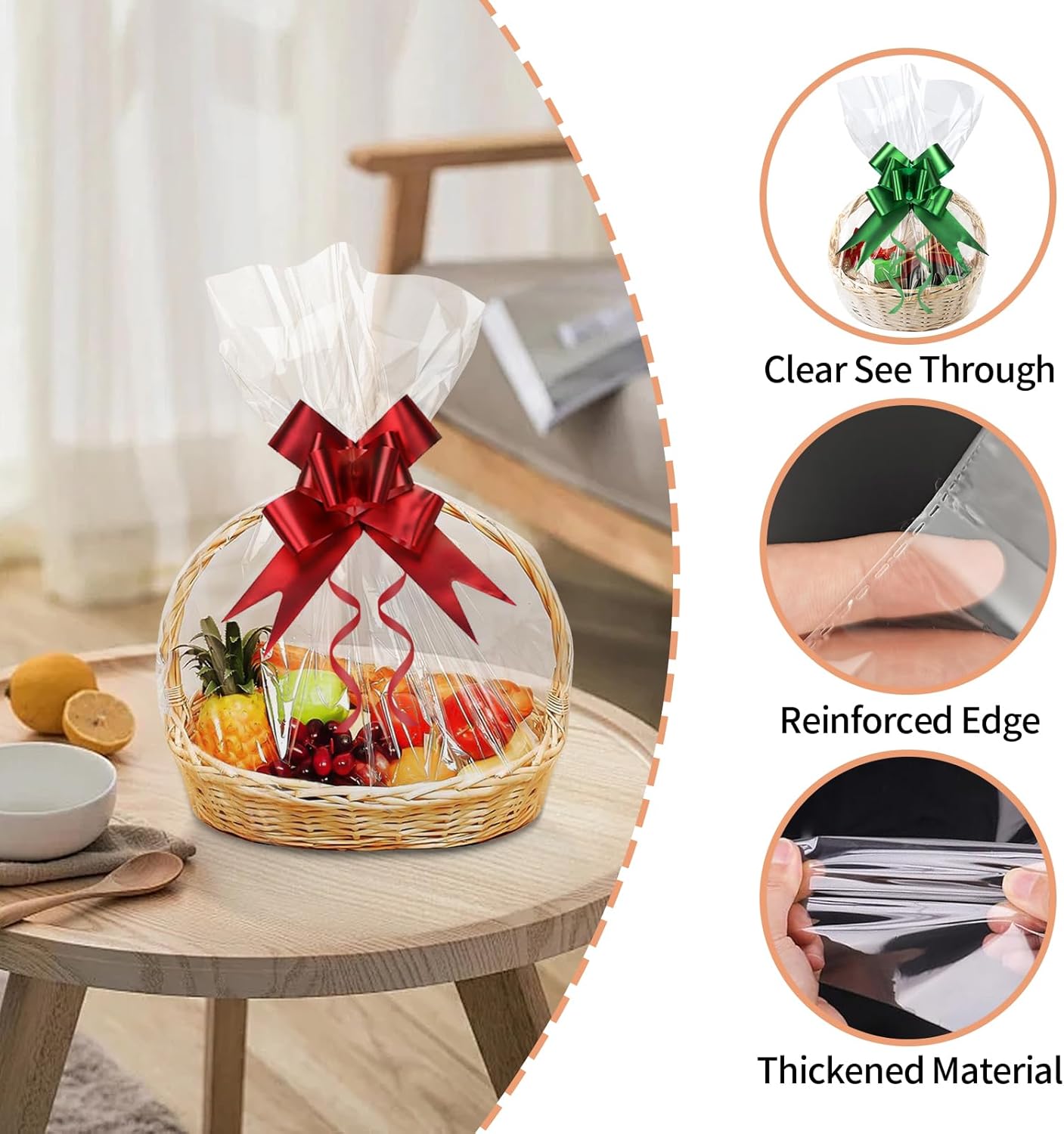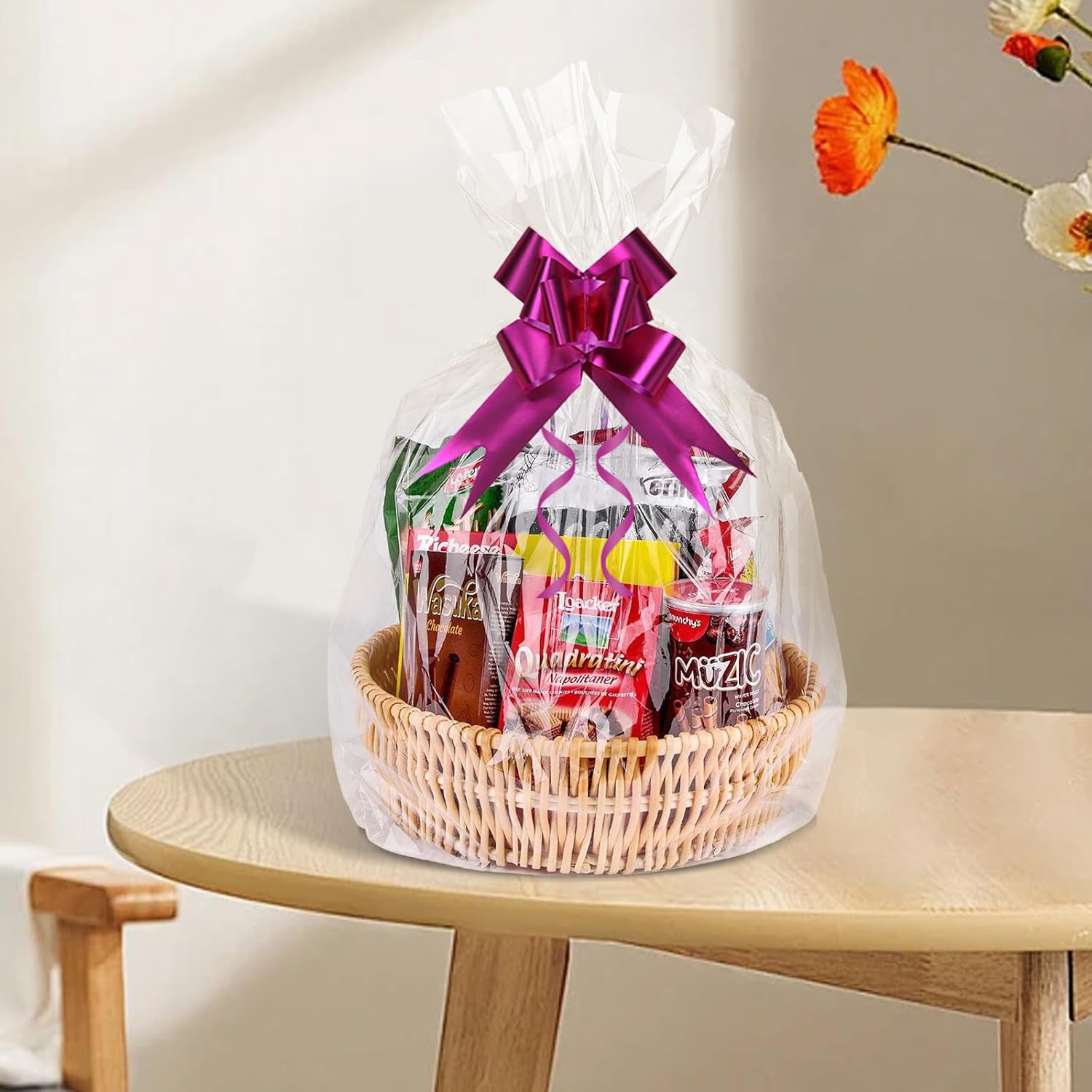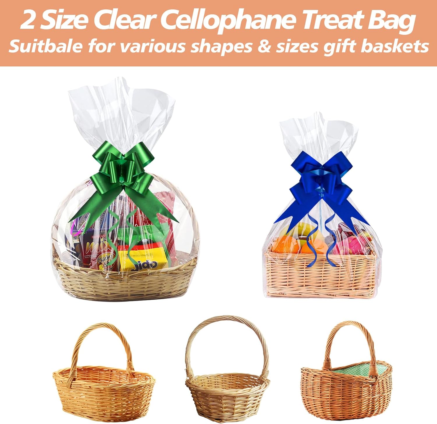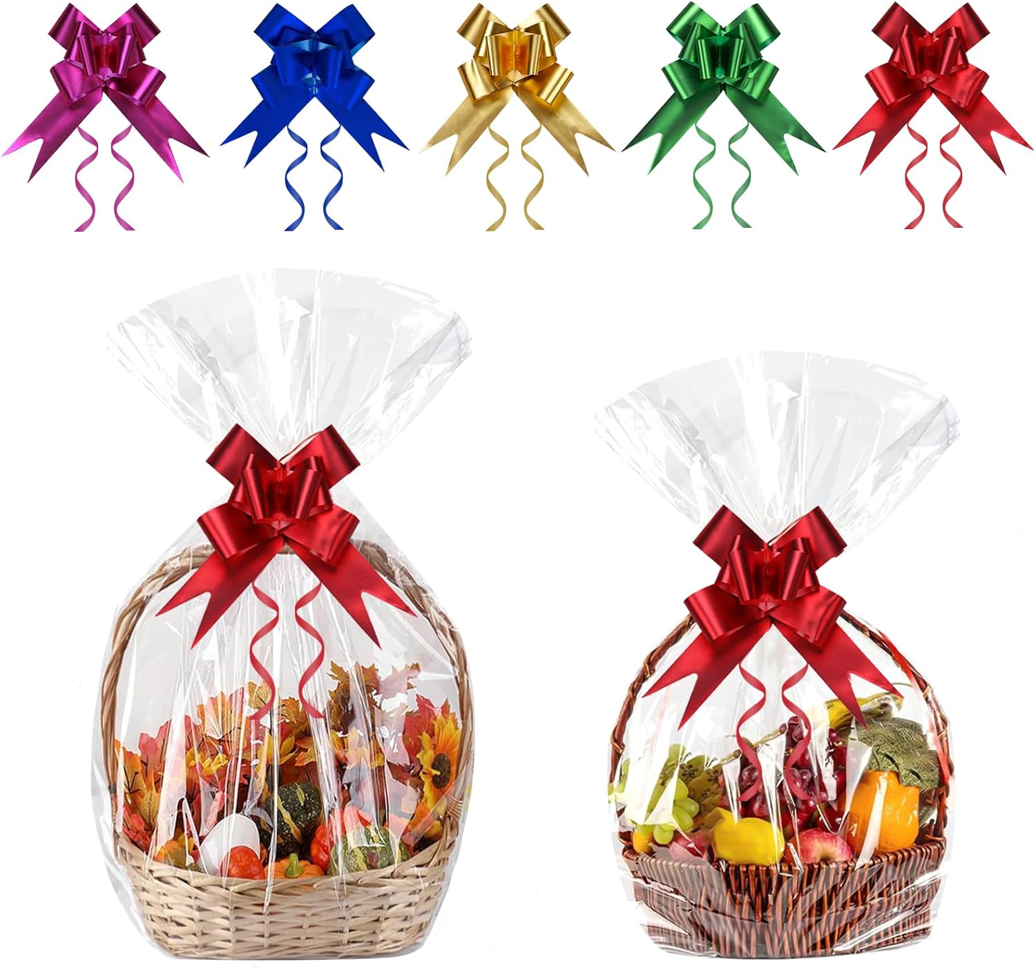 ❀ [La confezione include] Riceverai 16 sacchetti per cestini in cellophane trasparente in due diverse dimensioni: 70x100 cm, 50x70 cm, 8 di ciascuna dimensione e 16 fogli grandi in cinque colori diversi. ❀ [Assortimento pratico] Due diverse dimensioni di sacchetti di cellophane trasparente ti consentono di scegliere in modo flessibile la dimensione perfetta per qualsiasi regalo o oggetto che desideri incartare. ❀[Materiale Premium] I nostri grandi sacchetti di cellophane sono realizzati in OPP di alta qualità, inodore e non tossico, durevole e resistente agli strappi. Sono un must per le famiglie e le riunioni nella vita quotidiana. ❀ [Ampia applicazione] Questi grandi sacchetti di cellophane possono non solo confezionare cesti regalo, ma anche altri regali come bambole, fiori, giocattoli di peluche, ecc. Adatti a tutte le occasioni come Natale, compleanno, baby shower e altro ancora. ❀ [Facile da usare] I nostri sacchetti regalo in alluminio rendono bellissimi i tuoi normali cesti regalo o regali. Metti semplicemente l'oggetto in un grande sacchetto di carta di vetro e legalo con un nastro.