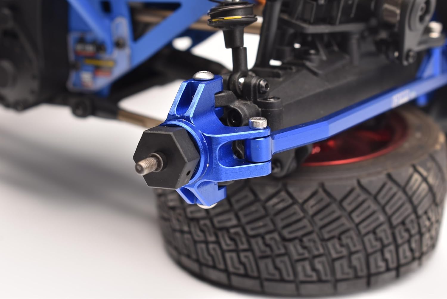 Upgraded to Aluminium 7075 material, easy to install and disassemble. Accurate bearing position, enlarged bearing, increased from original bearing 4x8x3mm to 4x11x4mm. Stable and smooth CVD rotation. Package includes : Front Steering Block-2pcs ; Bearing 4x11x4-4pcs ; Grade 12.9 black Round Head Screws 2.5x3-4pcs ; Grade 12.9 black Cap Head Screws 2x10-2pcs ; steel pin 2x8-4pcs. Original stock part number : LOS214041. Suitable models : Losi 1/18 Mini LMT 4X4 Brushed Monster Truck RTR-LOS01026, Grave Digger-LOS01026T1, Son-Uva Digger-LOS01026T2.