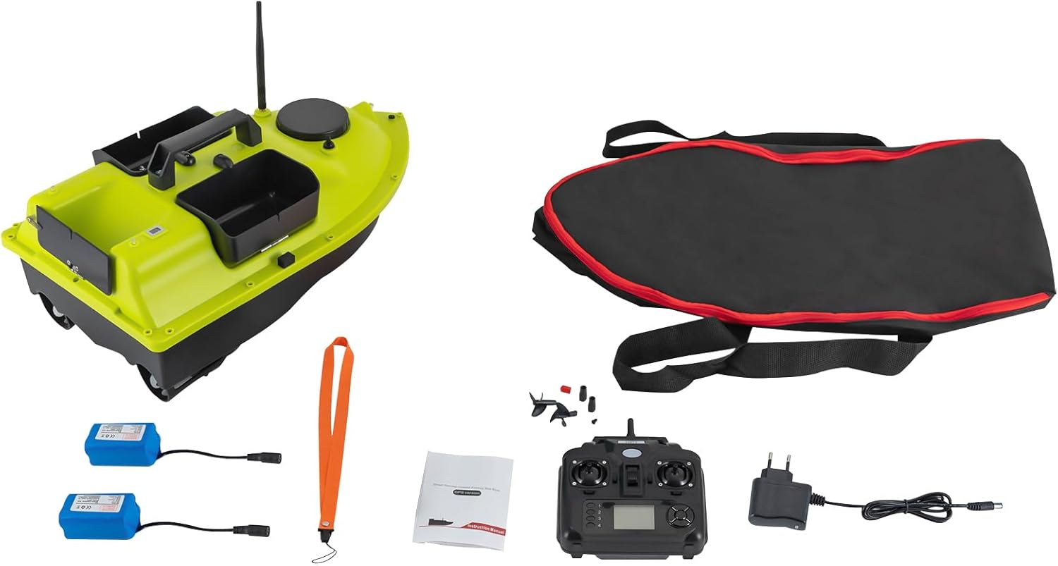 Costruzione durevole: esca da pesca barca realizzata in ABS sabbiato resistente ai graffi, impermeabile, resistente all'usura e alla corrosione per una lunga durata negli impieghi più duri Potenti prestazioni: barca da pesca RC con due motori 390 e 52 W spinge fino a 5,91 ft/s. Il GPS supporta 99 punti di traina e consente un posizionamento preciso ed efficiente dell'esca Grande capacità: l'esca per la pesca con 3 contenitori per esche può contenere fino a 2 kg di mais boilies o esche artificiali e trasforma qualsiasi acqua da pesca in un centro di alimentazione strategico Portata estrema: il telecomando funziona fino a 600 m e combina la correzione dell'avidità e il ritorno in caso di perdita di connessione e batteria scarica per viaggi senza preoccupazioni Mobilità completa: la confezione include due batterie da 5200 mAh per una durata fino a 90 minuti per carica e robusta borsa per il trasporto, ideale per tutta la giornata di pesca al fiume lago o al mare