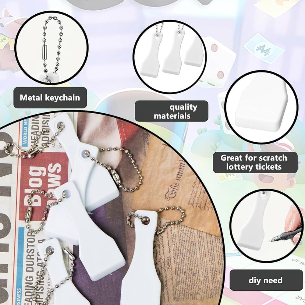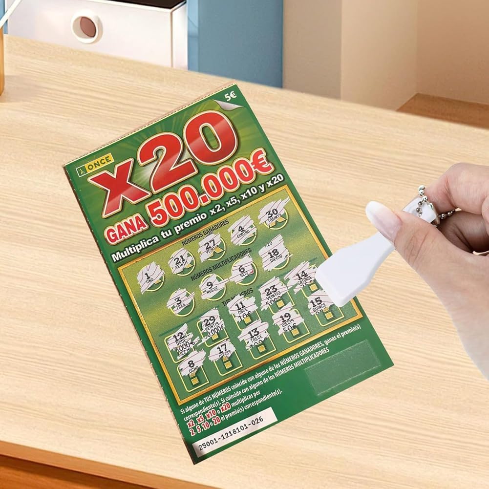 Riceverai 30 kit gratta e della lotteria. La quantità abbondante è sufficiente a soddisfare le tue esigenze e puoi condividerla con familiari e amici. Il biglietto gratta e è lungo 5,7 cm (2,24 pollici), compresa la lunghezza del che è di 9 cm (3,55 pollici), la larghezza è di 2,2 cm (0,87 pollici), è piccolo e adatto al trasporto, può essere messo in tasca, in borsa o appeso ovunque per l'uso quotidiano. I nostri raschietti sono realizzati in materiale plastico. La loro superficie è liscia e sbavature, ha una durezza, non si rompe facilmente e può essere utilizzata a lungo. Questi raschietti in plastica non sono utili solo per i biglietti della lotteria, ma anche per raschiare via inutili o staccare etichette dalle bottiglie e altre cose che devono essere raschiate via. Sono anche un regalo pratico e premuroso per gli amanti della lotteria, i destinatari saranno felici e potranno regalarli a familiari e amici. Puoi stampare il tuo motivo preferito superficie di questi con raschietto, oppure puoi usare altri metodi DIY. La superficie del prodotto è facile da colorare e puoi disegnare il tuo portafortuna con un pennarello.