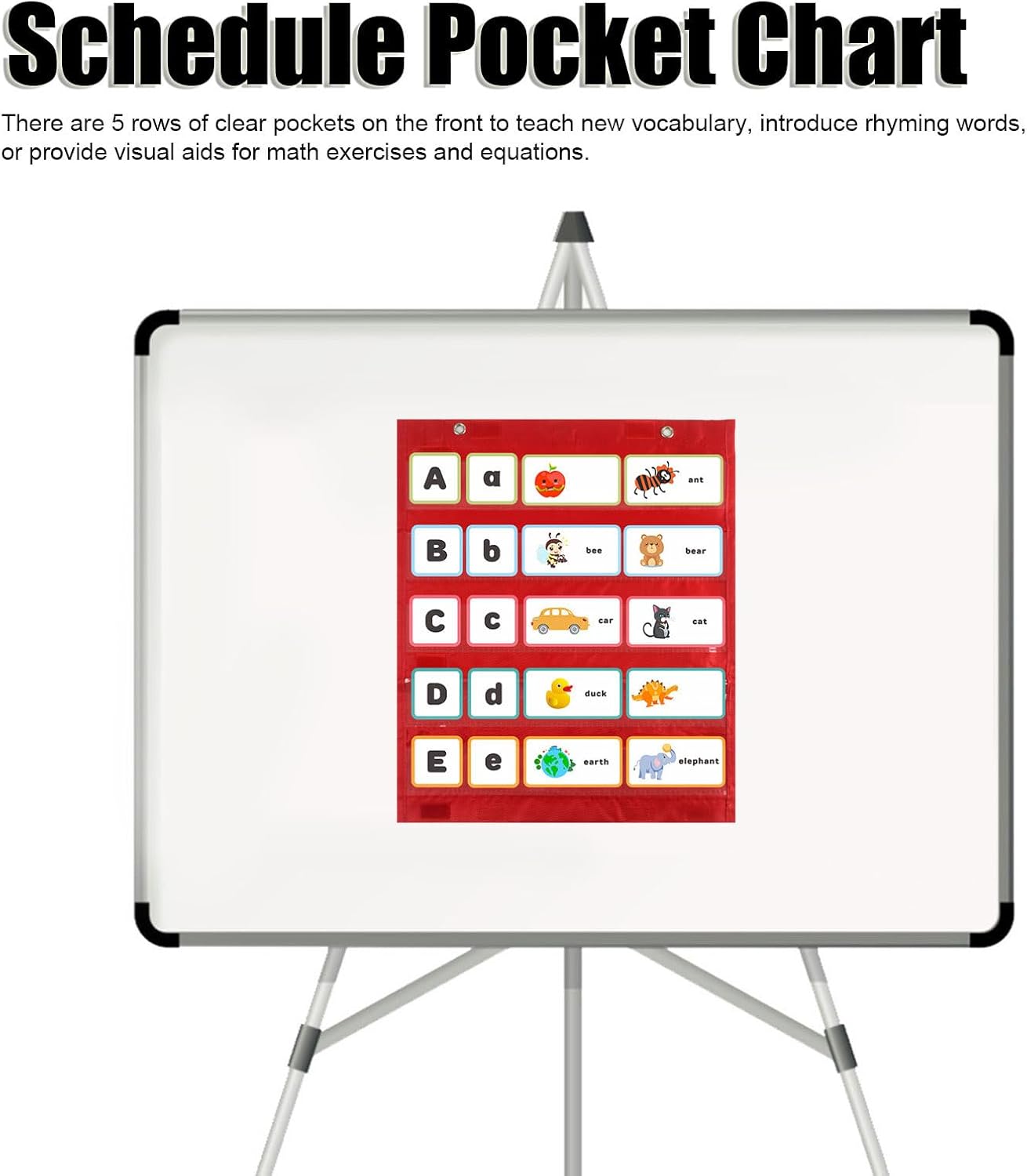 5 file di tasche trasparenti: ci sono 5 file di tasche trasparenti sul davanti per insegnare nuovo vocabolario, introdurre parole in rima o fornire aiuti visivi per esercizi di matematica ed equazioni. Magneti incorporati: questa è una tasca didattica multiuso che può essere appesa al supporto per orologio da tasca, con magneti incorporati, oppure puoi attaccarli alla lavagna, singolarmente o in combinazione. Colori vivaci: i grafici sono disponibili in colori vivaci per creare una presentazione gradevole per gli studenti, con una presentazione più accattivante. Ambito di applicazione: i grafici tascabili sono adatti per piccoli gruppi, centri, presentazioni di gruppo e altro ancora, facilitando l'organizzazione di eventi per piccoli gruppi o Circle Time e il loro assemblaggio per una presentazione dell'intera classe. Scenari applicabili: sono disponibili dispositivi di fissaggio a strappo per la connessione verticale o orizzontale, per l'apprendimento in classe o a casa, mantenendo i libri, le cartelle di lavoro, le attività, i compiti, le carte e altro ancora organizzati di tuo figlio quando non in uso.