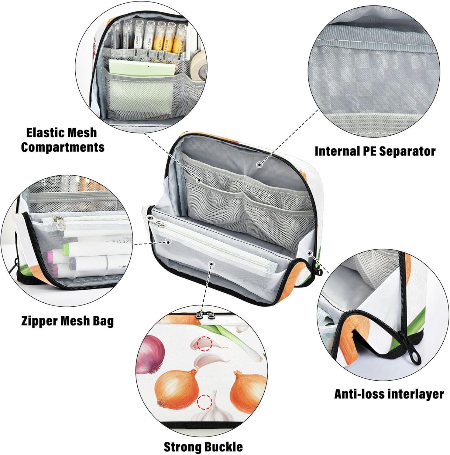 Funzione di supporto convertibile: con un intelligente sistema pieghevole e a scatto, l'astuccio preppy si trova in posizione verticale sulla scrivania, consentendo di organizzare e accedere ai tuoi oggetti senza problemi Materiale di alta qualità: realizzato in resistente tessuto di nylon, l'astuccio da donna è resistente ai graffi, facile da pulire e costruito per resistere all'usura quotidiana Interno pulito e spazioso: progettato per comodità, la custodia impermeabile per matite separa i tuoi oggetti utilizzando una sezione principale, una tasca a rete con cerniera e una tasca aperta per un rapido recupero degli oggetti Ideale per varie impostazioni: utilizza le borse per insegnanti per riporre oggetti artistici, oggetti personali o strumenti da ufficio, ideali per studenti, pendolari, artisti o chiunque sia in viaggio Fallo tuo: l'astuccio da donna supporta tocchi personalizzati come nomi, messaggi o immagini, offrendo una scelta regalo creativa per compleanni, rientro a scuola o vacanze