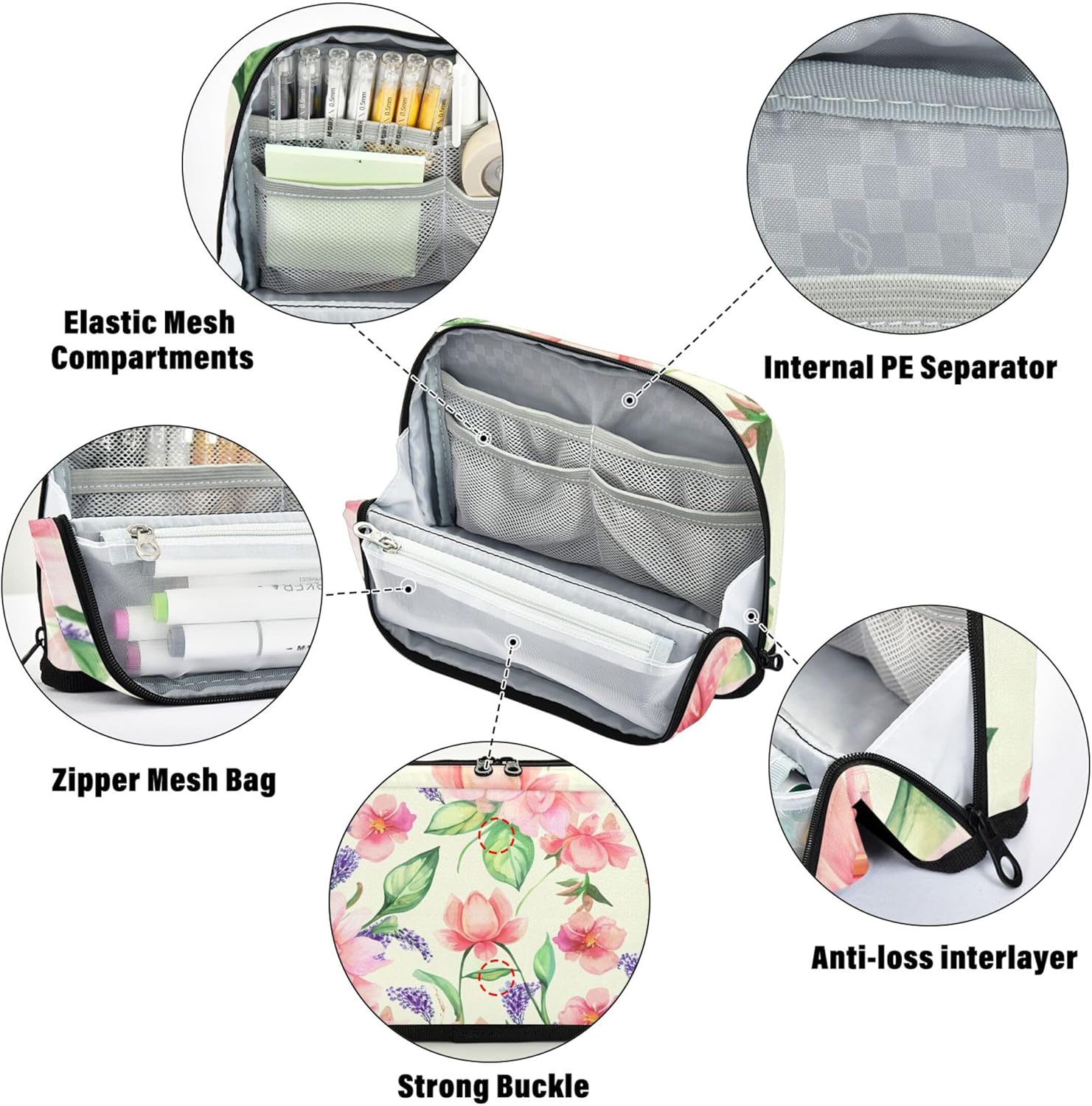 Funzione di supporto convertibile: con un intelligente sistema pieghevole e a scatto, il materiale scolastico per ragazze sta in piedi sulla scrivania, consentendo di organizzare e accedere ai tuoi oggetti senza problemi Qualità che puoi sentire: il nylon resistente conferisce alla custodia con cerniera una struttura leggera ma resistente, mantenendo il contenuto al sicuro rendendo la pulizia semplice e senza problemi Contiene più di quanto ti aspetti: nonostante la sua forma compatta, l'astuccio per penne si adatta a cancelleria come penne, matite, gomme e piccoli utensili, grazie al suo design intelligente e multi-tasca Progettato per un uso multiuso: che tu stia andando a lezione o per un viaggio, l'astuccio kawaii per la borsa si adatta facilmente come astuccio per il trucco, astuccio per penne o organizer per la giornata lavorativa Unico tuo: i disegni vivaci e gli elementi personalizzati trasformano i sacchetti riutilizzabili per matite in un regalo elegante e significativo, ideale per bambini, scrittori o chiunque ami un tocco personale