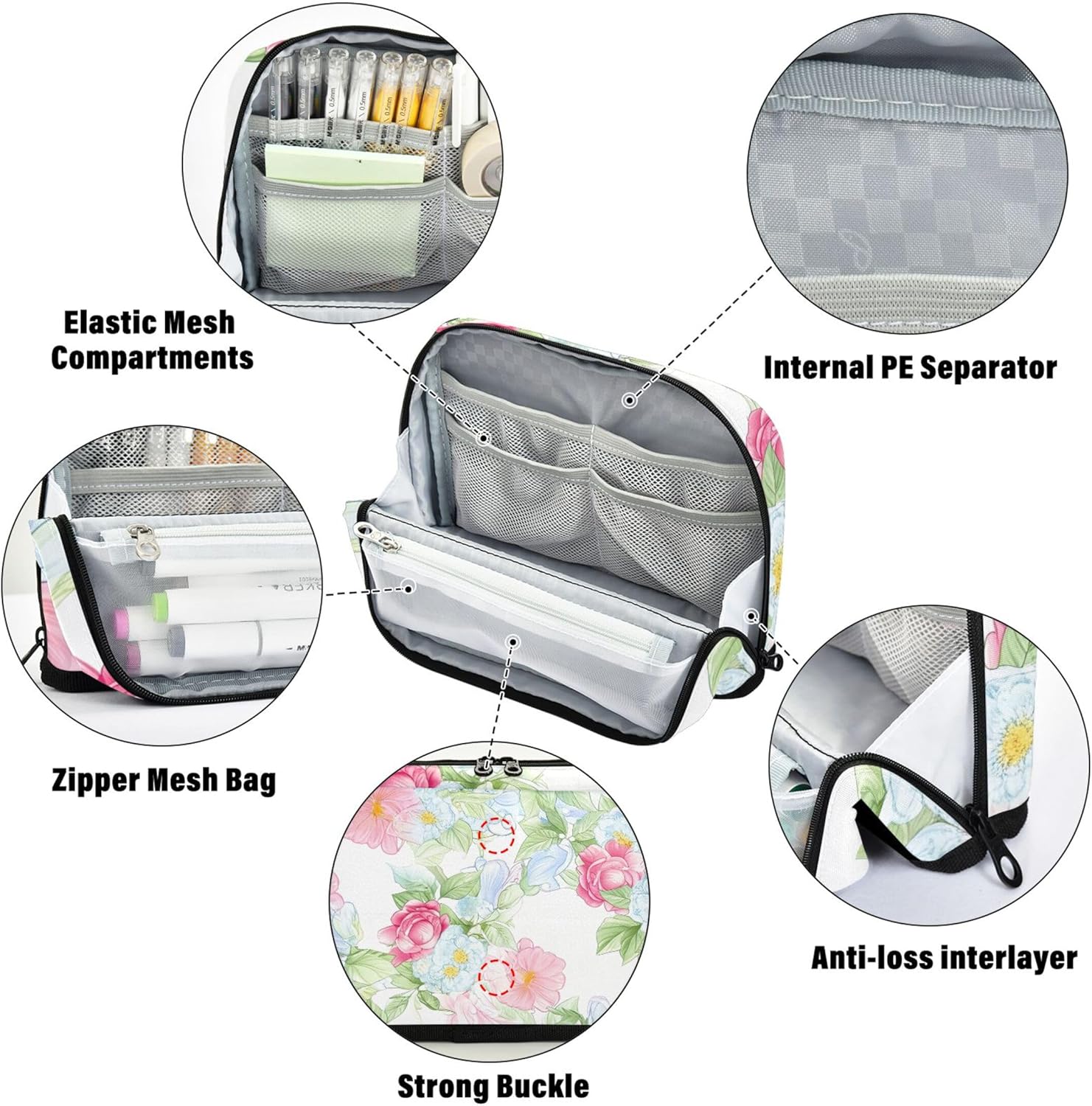 Pratico design autoportante: l'astuccio per matite si trasforma facilmente da una custodia con cerniera a un contenitore verticale da scrivania, aiutandoti a individuare rapidamente penne, strumenti o accessori a colpo d'occhio Materiale di alta qualità: realizzato in resistente tessuto di nylon, astuccio con cerniera resistente ai graffi, facile da pulire e costruito per resistere all'usura quotidiana Spaziosi ma compatti: gli astucci con cerniera offrono ampio spazio all'interno con scomparti che aiutano a classificare gli oggetti essenziali quotidiani mantenendo una forma elegante e portatile Multiuso: simpatico astuccio per ragazze funziona come astuccio per penne, astuccio per il trucco, kit da viaggio o organizer per ufficio, ideale per scuola, lavoro, gite e uso quotidiano Ottimo come regalo: sia per un giovane studente, un artista o un amico in viaggio, l'astuccio per ragazze può essere personalizzato con testo o immagini per creare un ricordo memorabile