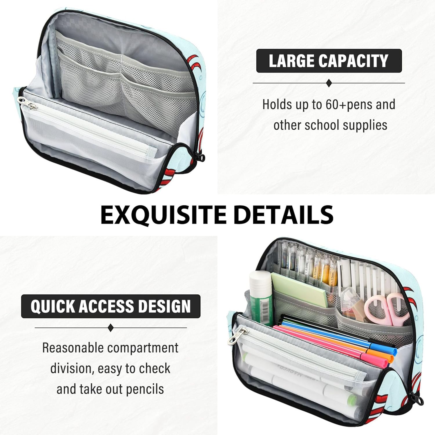 Struttura pieghevole e salvaspazio: i sacchetti per giocattoli a matita utilizzano chiusure magnetiche per trasformarsi in un supporto verticale, consentendo una rapida panoramica e una disposizione ordinata di strumenti o cancelleria Materiale di alta qualità: realizzato in resistente tessuto di nylon, l'astuccio per penne da ufficio è resistente ai graffi, facile da pulire e costruito per resistere all'usura quotidiana Soluzione di archiviazione efficiente: il simpatico astuccio per bambini viene fornito con una grande sezione centrale e tasche extra, che lo rendono facile da riporre e individuare piccoli articoli per la scuola o l'ufficio Progettato per un uso multiuso: che tu stia andando a lezione o per un viaggio, gli astucci kawaii per ragazze si adattano facilmente come astuccio per il trucco, astuccio per penne o organizer per la giornata lavorativa Disegnalo a modo tuo: l'astuccio per penne supporta modifiche personalizzate come testo personalizzato o opere d'arte caricate, rendendolo un'idea regalo eccezionale per bambini e adulti creativi