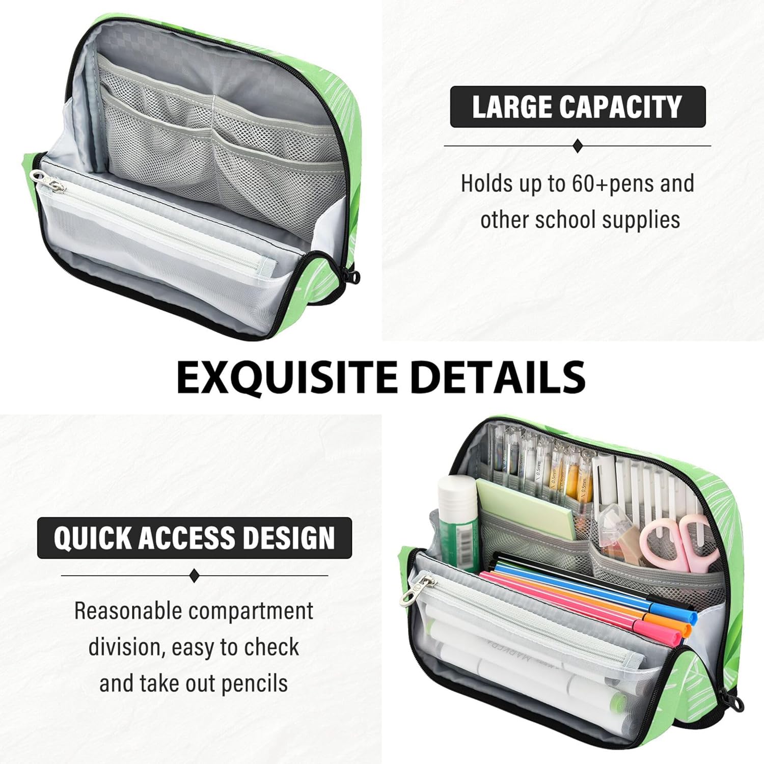 Funzionale design magnetico a scatto: ripiegare la borsa e lasciare che il magnete integrato lo mantenga stabile: lo spazio per matite si trasforma in un elegante ed efficiente organizer da scrivania in pochi secondi Struttura in tessuto resistente: realizzato in nylon resistente, le borse riutilizzabili per matite resistono ai graffi, respingono lo sporco e mantengono il suo aspetto elegante attraverso l'uso quotidiano e la manipolazione frequente Grande capienza: dispone di uno scomparto principale, una tasca in rete con cerniera e una tasca aperta per organizzare penne, matite, gomme, temperamatite e foglietti adesivi Il tuo compagno multifunzionale: che si tratti di uno zaino, valigia o cassetto della scrivania, l'astuccio organizer fornisce spazio intelligente per attrezzi, spazzole, caricabatterie e molto altro ancora Personalizzabile: con motivi vivaci e opzioni di foto o testo personalizzate, le borse con cerniera per matite scolastiche diventano un regalo premuroso per studenti, creativi e viaggiatori frequenti
