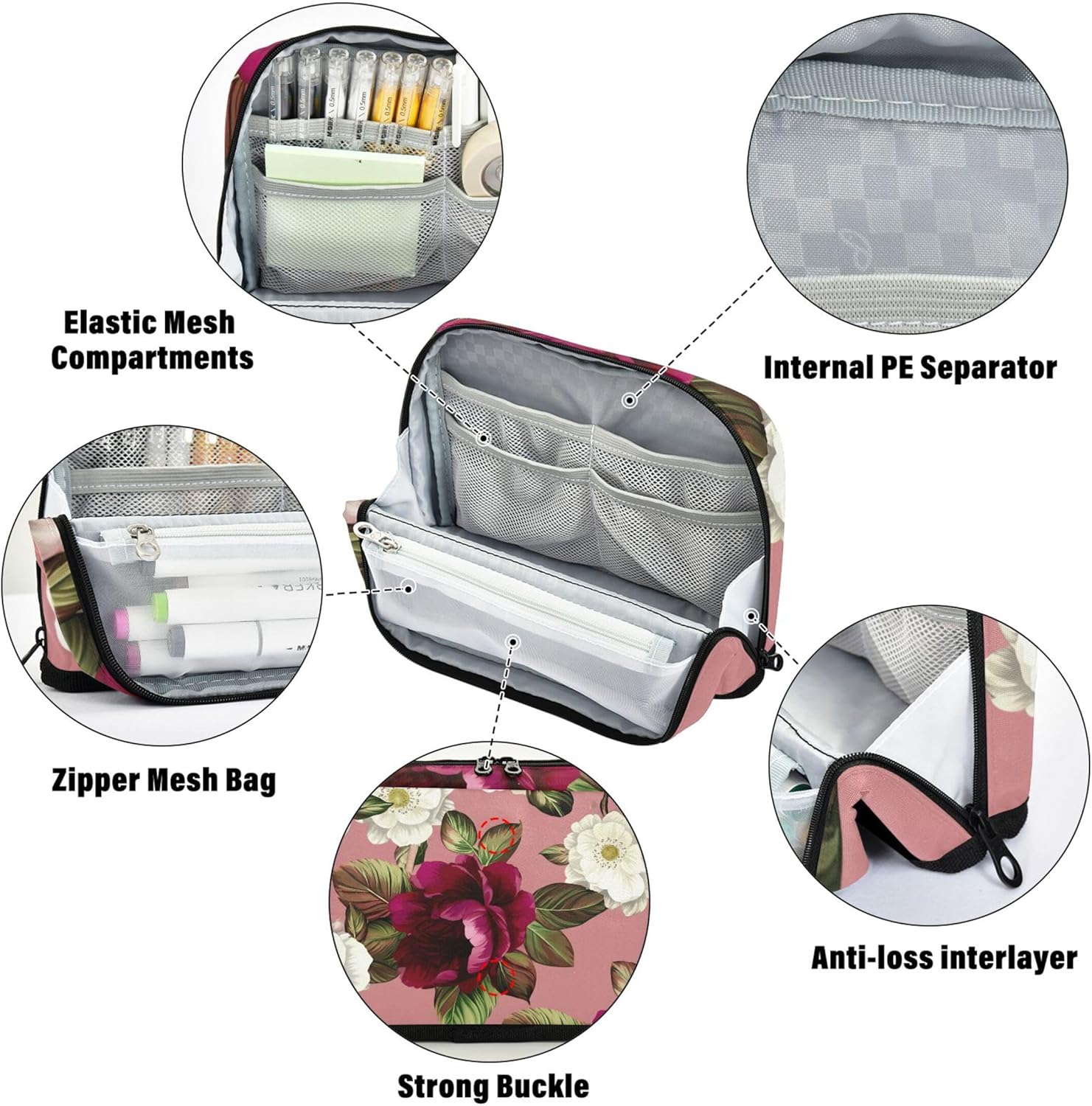 Design intelligente della struttura: la custodia con cerniera per trucco si trasforma in un supporto con chiusura magnetica quando piegata, offrendo una visione chiara e un facile accesso alle tue forniture Finitura in nylon di alta qualità: il simpatico astuccio combina una consistenza morbida con un'elevata durata, resistendo all'usura preservando un aspetto lucido nel tempo Spazio interno organizzato: i sacchetti riutilizzabili per matite offrono spazio generoso con più sezioni per contenere penne, gomme, foglietti adesivi, temperamatite e altri oggetti essenziali da scrivania in un unico posto Flessibili per diverse esigenze: i sacchetti con cerniera per la scuola fungono da molto più di un semplice astuccio, riutilizzandoli come kit per il trucco quotidiano, borsa da viaggio o pratico contenitore da scrivania Personalizzabile: con motivi vivaci e opzioni personalizzate per foto o testo, lo speciale astuccio diventa un regalo premuroso per studenti, creativi e viaggiatori frequenti